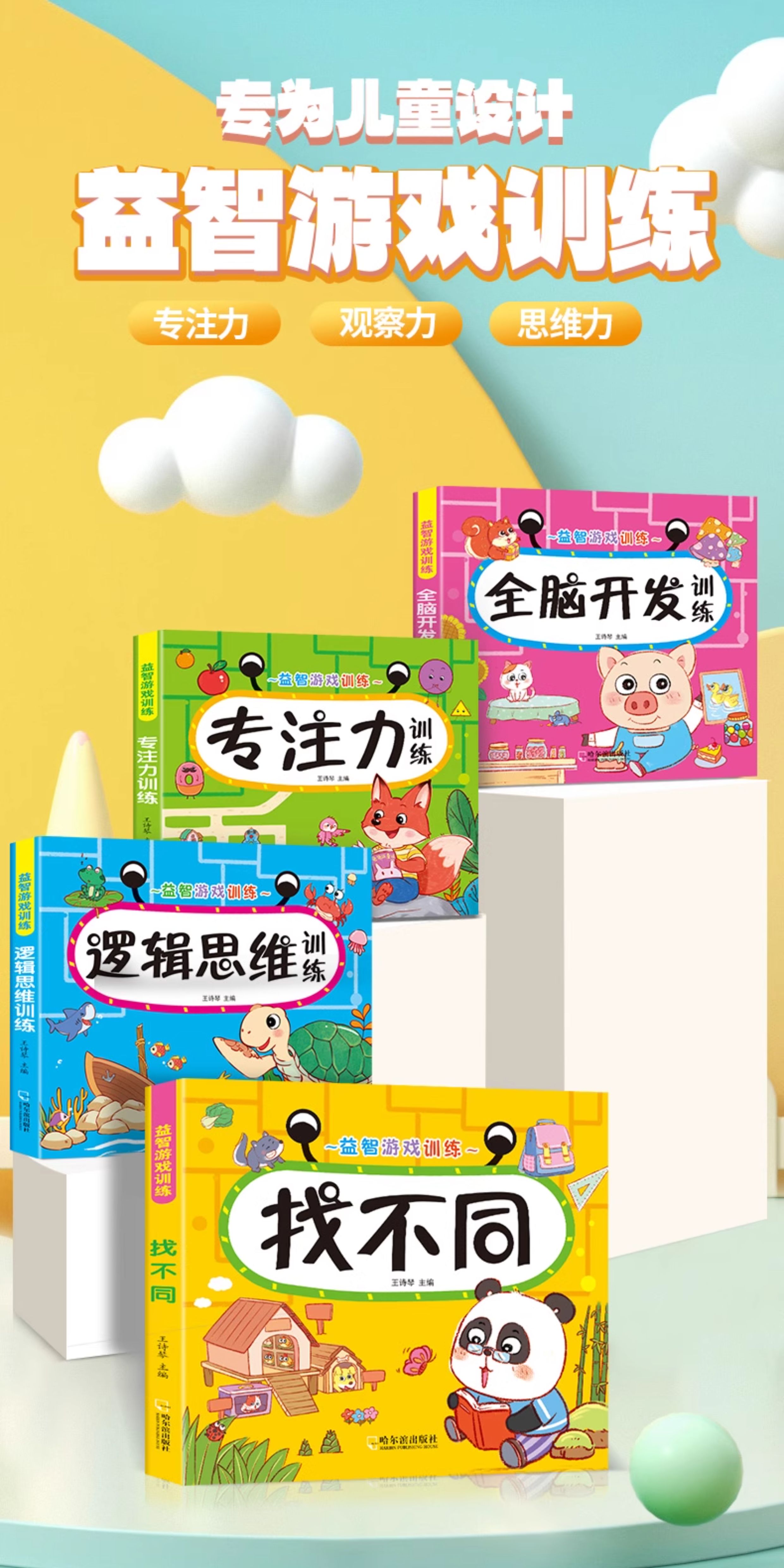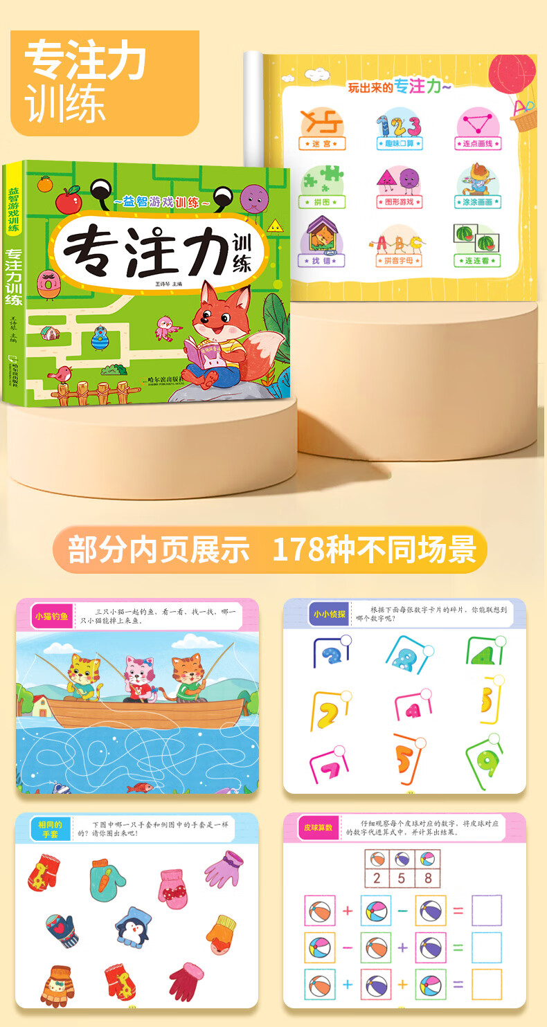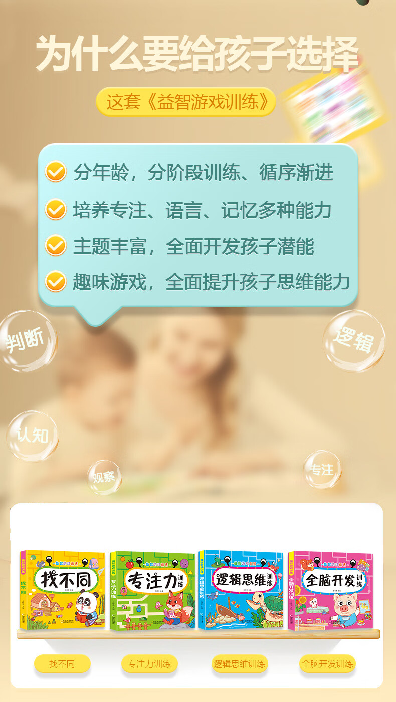 Early Childhood Enlightenment Book Find Differences Concentration Training 3-4-5-6-10 Years Old Mathematics Logical Thinking Training Book Whole Brain Development Thinking Training Children's Kindergarten Enlightenment Textbook Complete Set of 4 Game Books 3 Logical Thinking + Whole Brain Development + Concentration