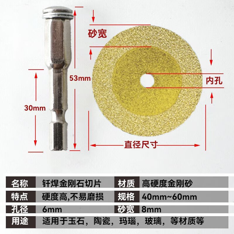 An Junsheng diamond emery brazing saw blade slicing and polishing marble glass jade cutting piece beautiful seam clearing engraving hexagonal handle emery slicing direct sale 60MM 1 piece + hexagonal rod