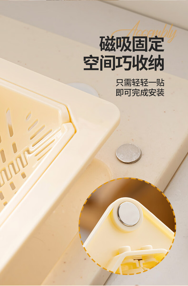 Juyi Sink Magnetic Drainage Basket Kitchen Filter Storage Rack Drainage Basket Washing Vegetables Filter Basket Leftover Residue Drainage Basket Green Magnetic Suction Installation | One-button Press to Dump Residues
