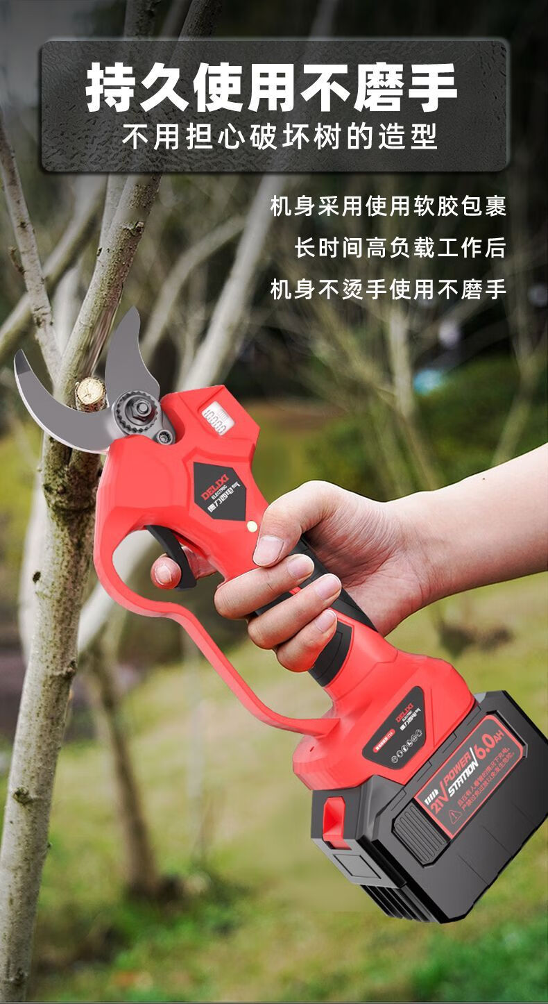 Delixi Electric Electric Scissors Rechargeable Electric Scissors Fruit Tree Pruning Branch Pruning Shears Electric Pruning Machine Artifact V90 21V Intelligent Digital Display Model 7.5Ah Two Power Delixi Electric V Series Brushless Motor