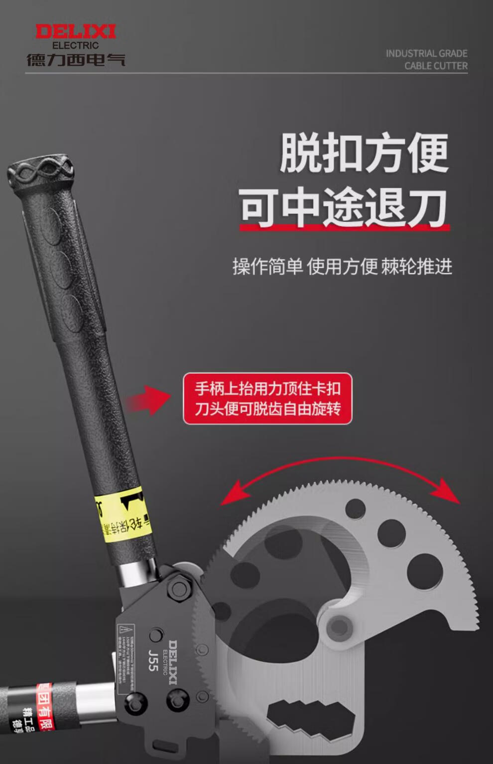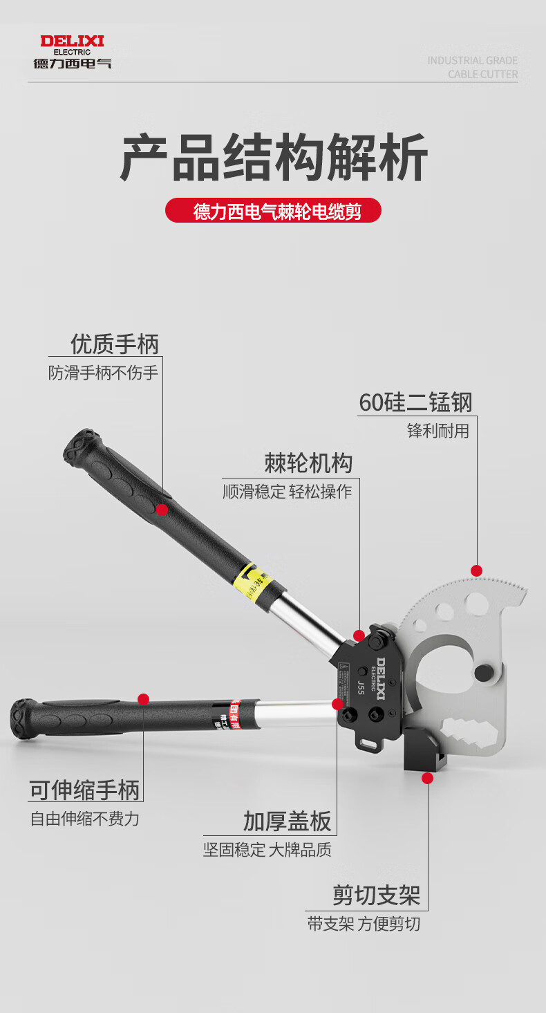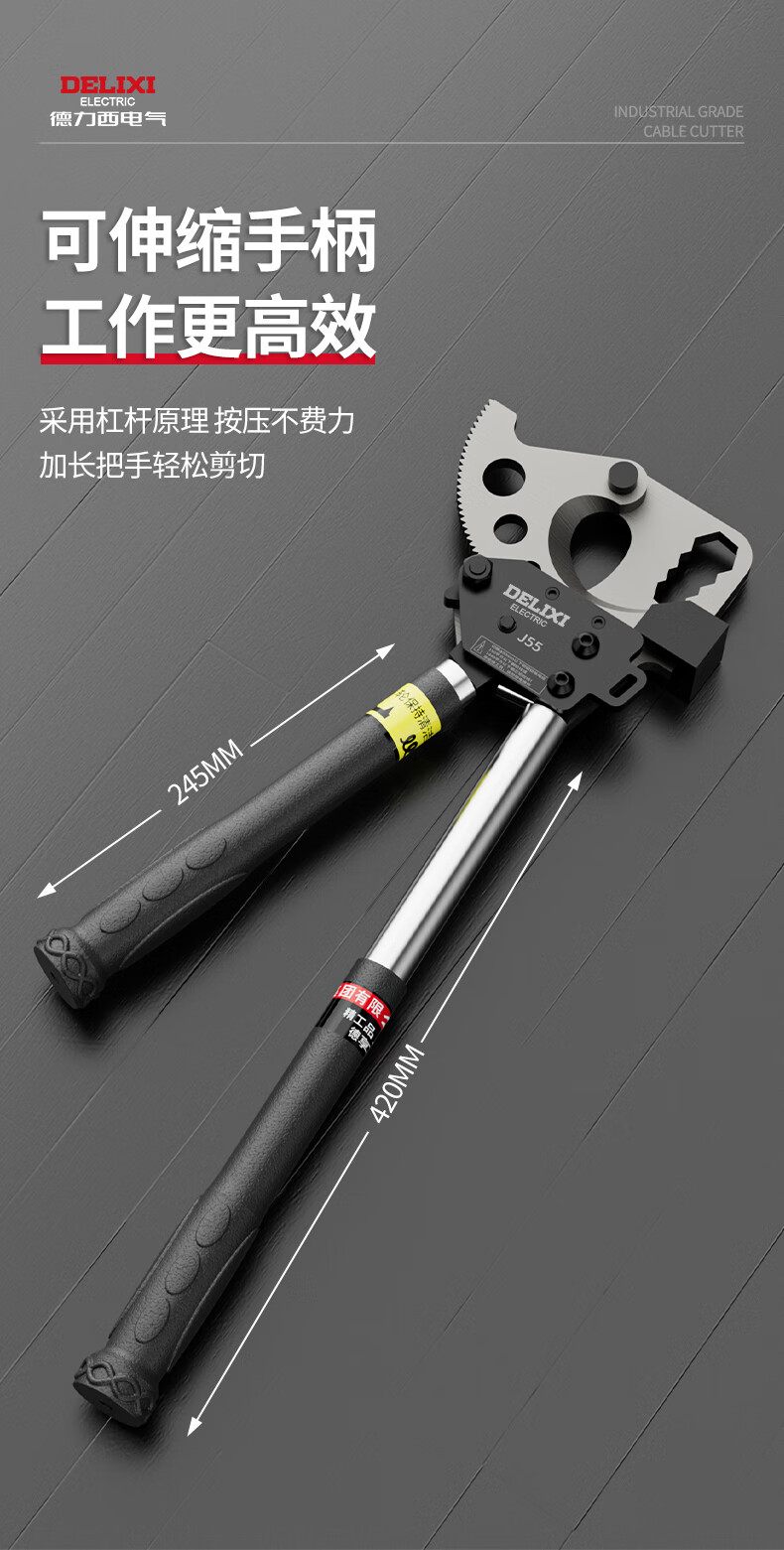 Delixi Cable Cutter Ratchet Gear Type Steel Strand Cutter Hydraulic Cable Cutter Special Cable Scissors Delixi J52 Industrial Grade Ratchet Cable Cutter++ Tool Kit (5-year warranty)