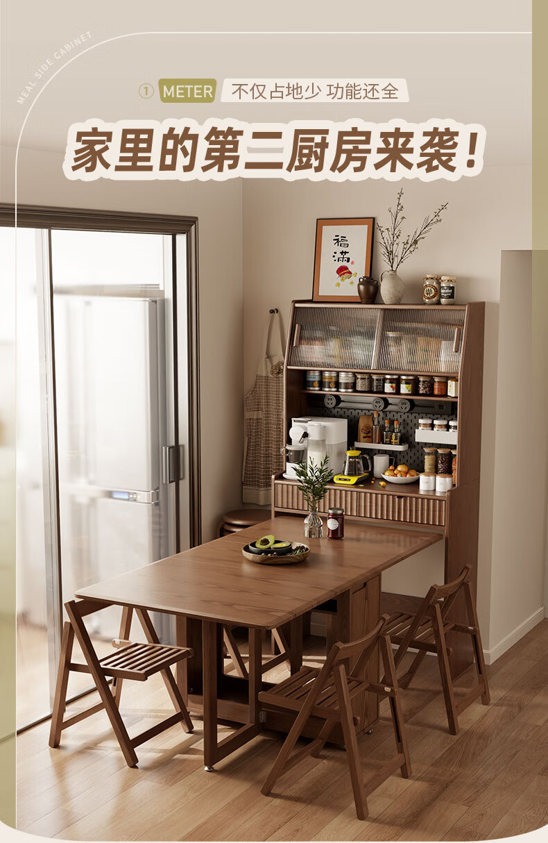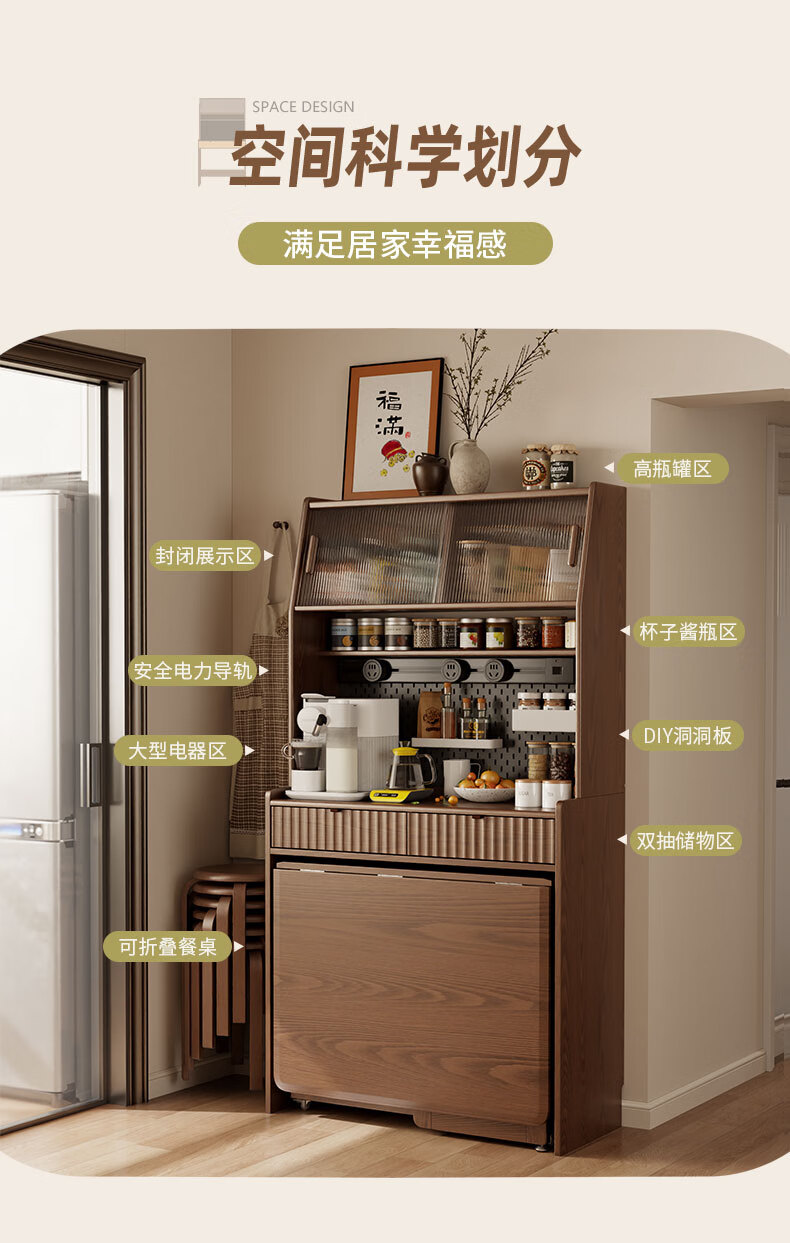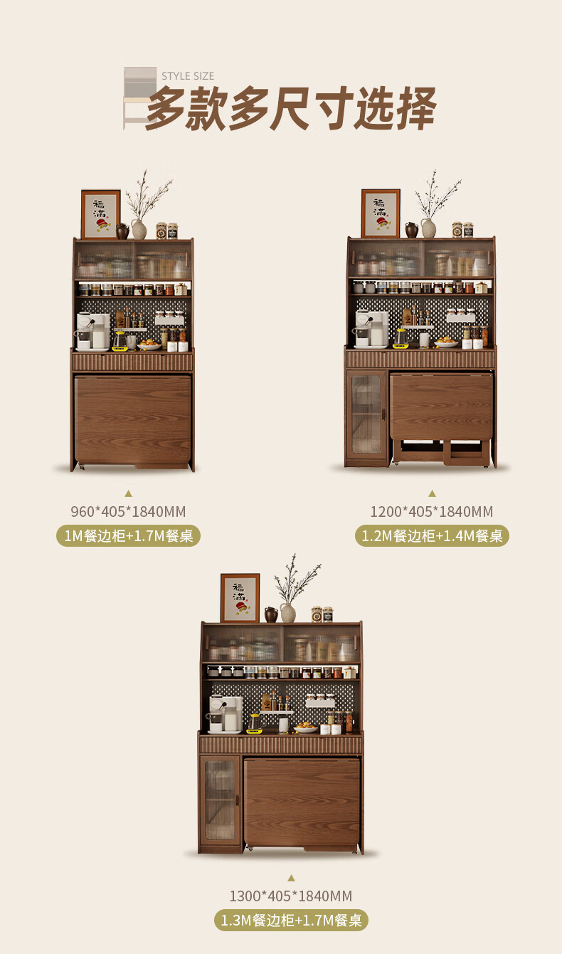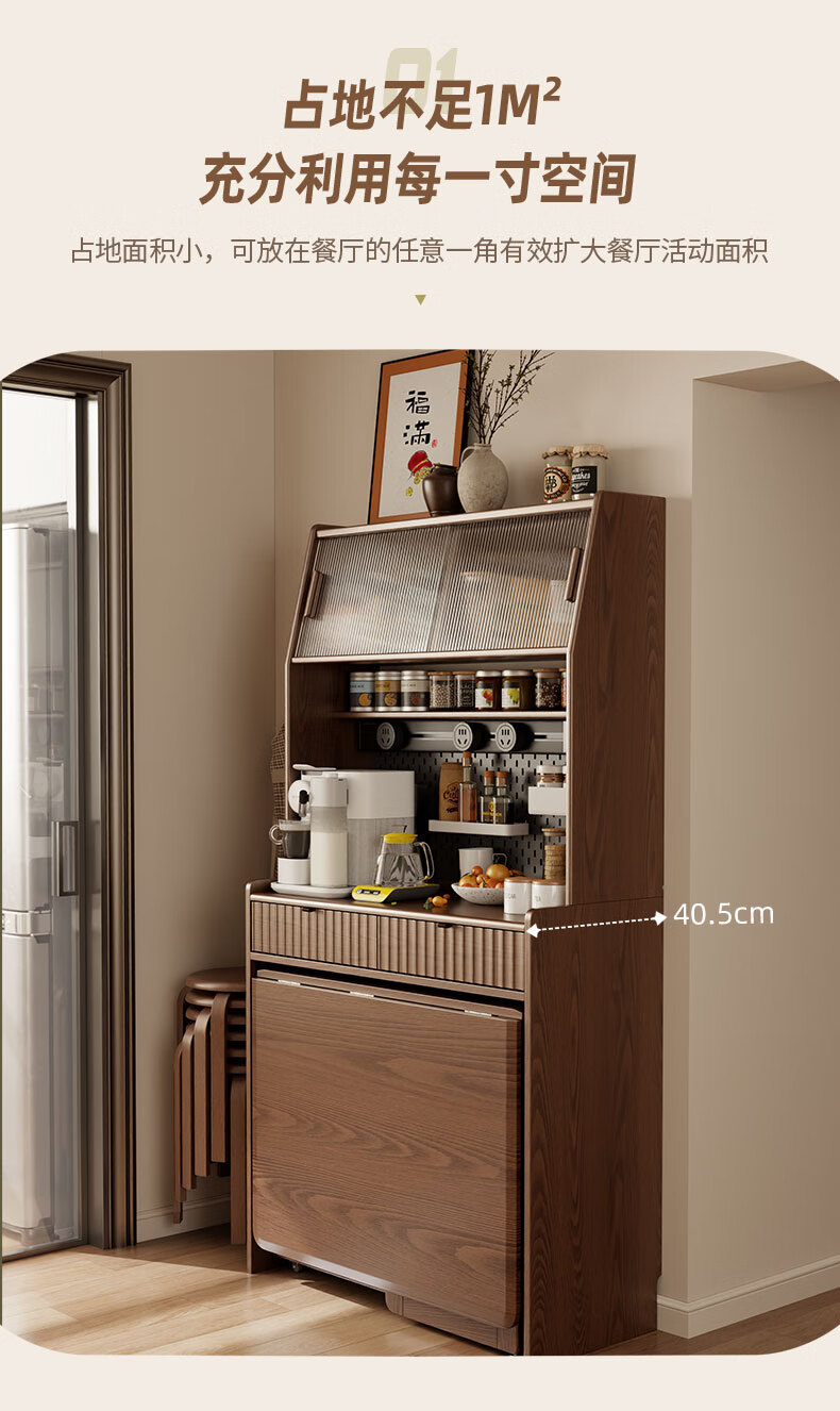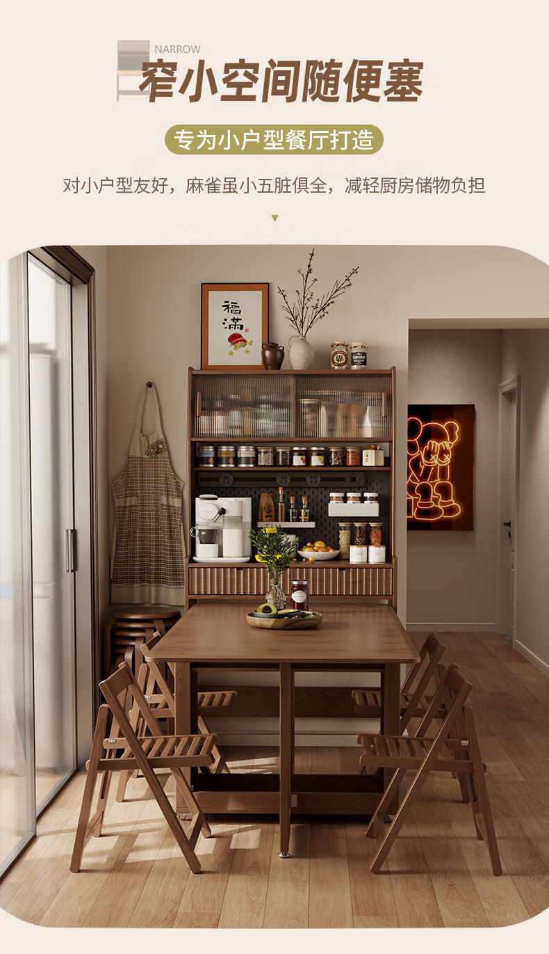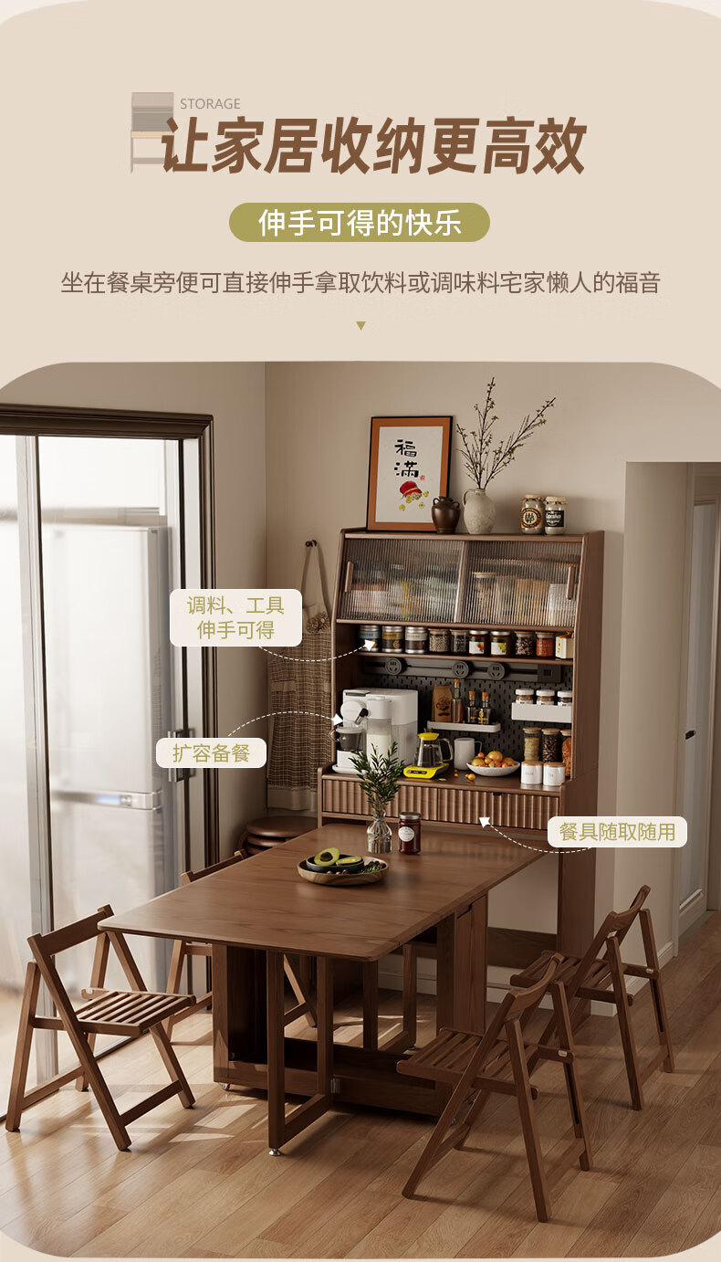 Pupan solid wood sideboard dining table integrated home small apartment wall cabinet high cabinet living room storage cabinet with foldable dining table 96CM sideboard walnut color