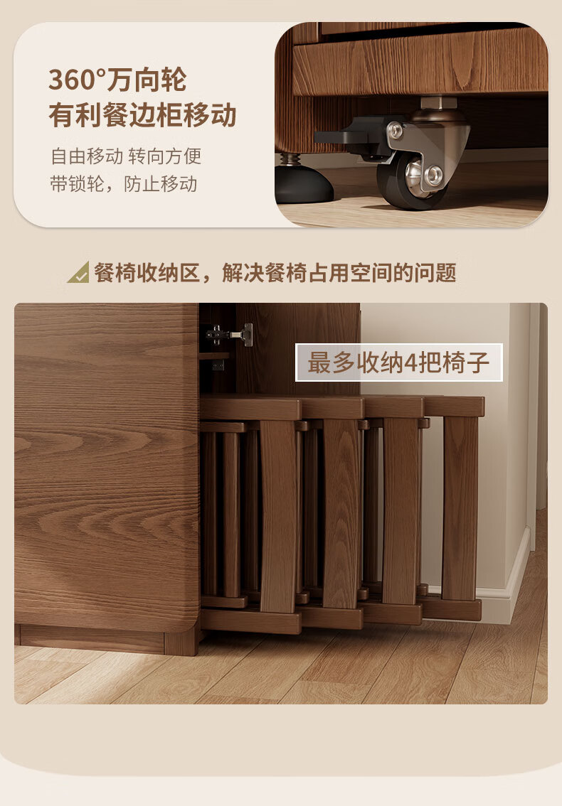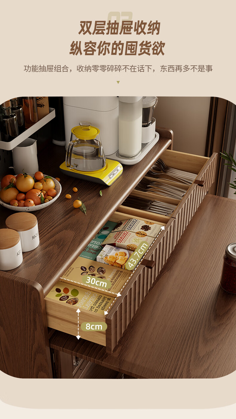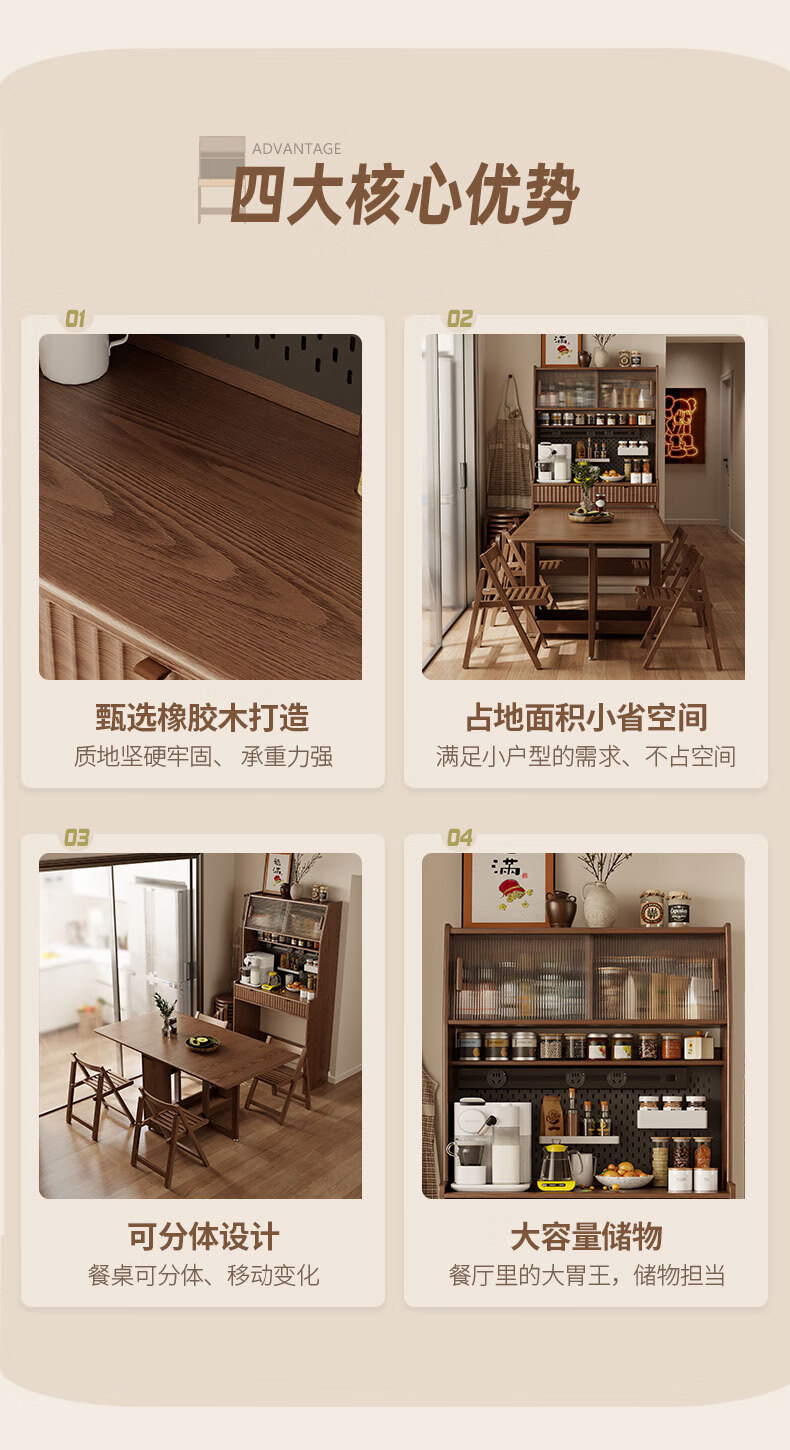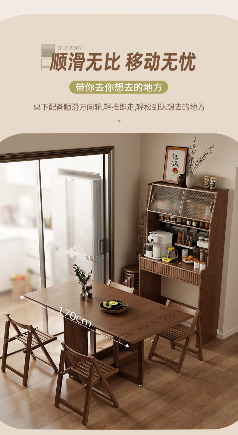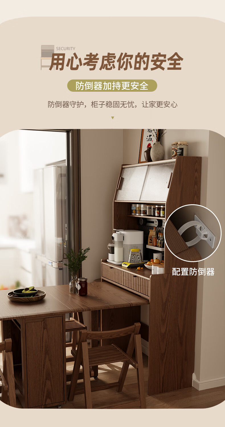Pupan solid wood sideboard dining table integrated home small apartment wall cabinet high cabinet living room storage cabinet with foldable dining table 96CM sideboard walnut color