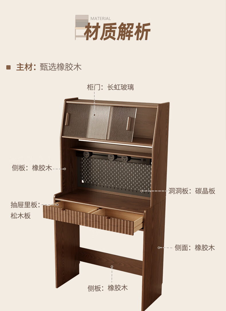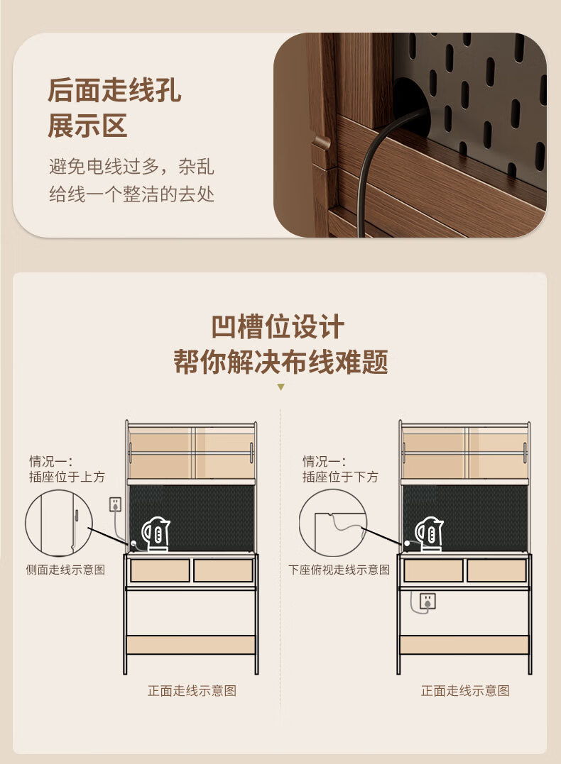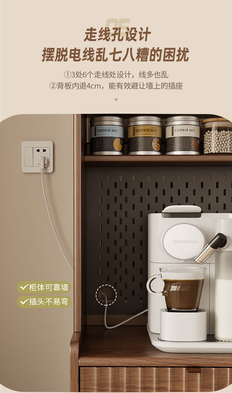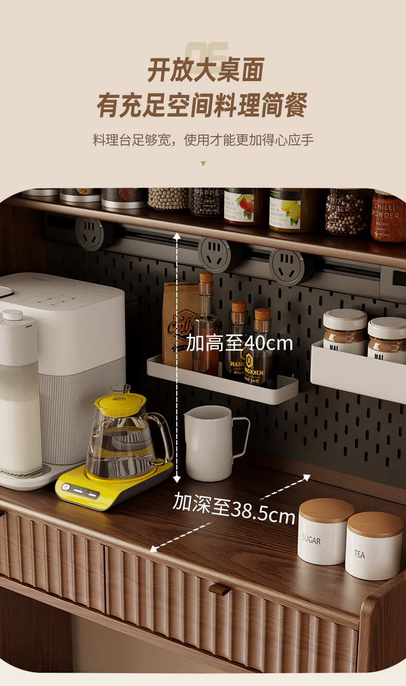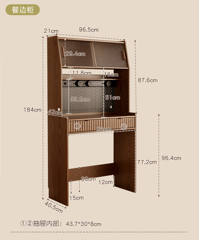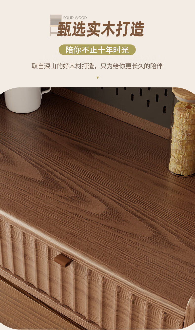 Pupan solid wood sideboard dining table integrated home small apartment wall cabinet high cabinet living room storage cabinet with foldable dining table 96CM sideboard walnut color
