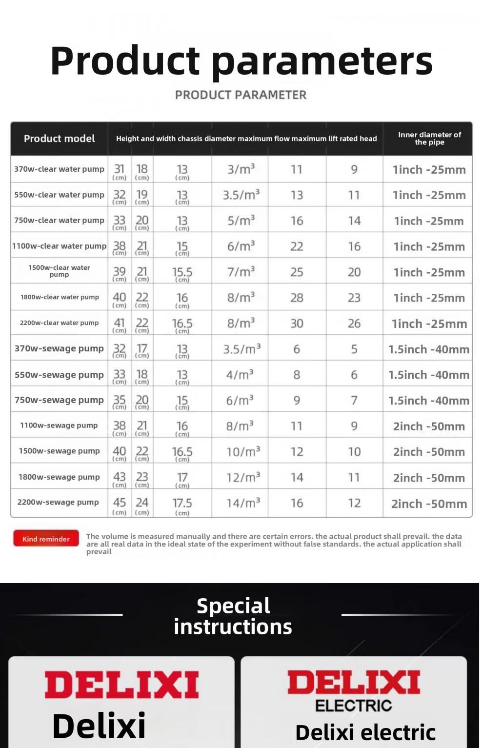 Delixi submersible pump 220V household small sewage pump high lift water pump large flow agricultural irrigation pump AC submersible pump 250 watts (1.5 tons 12 meters 1 inch) 220v