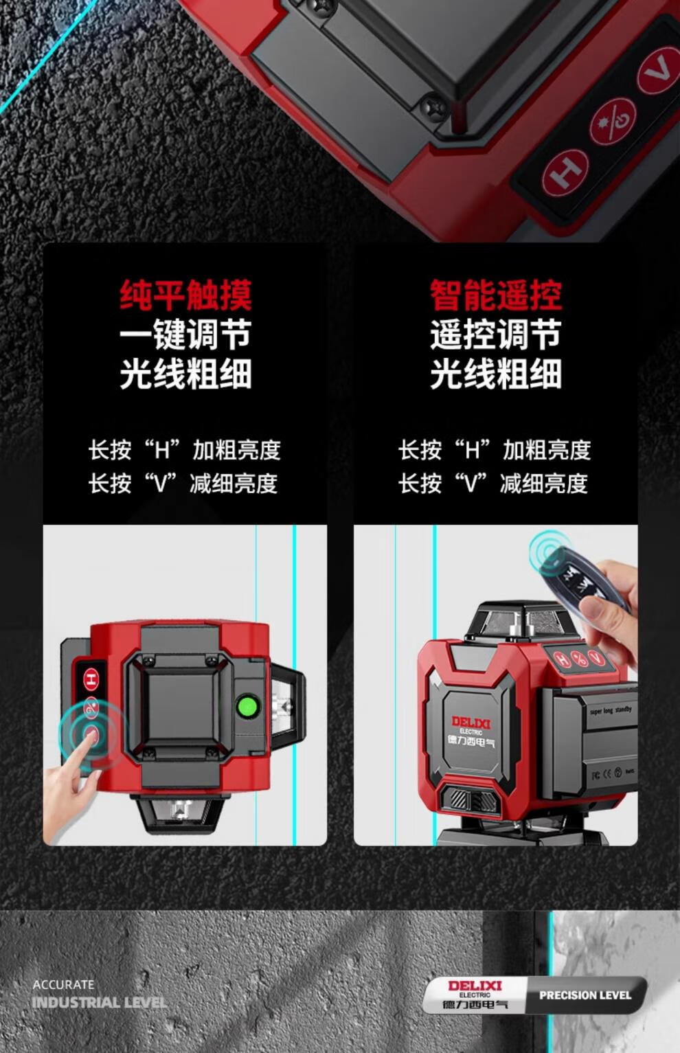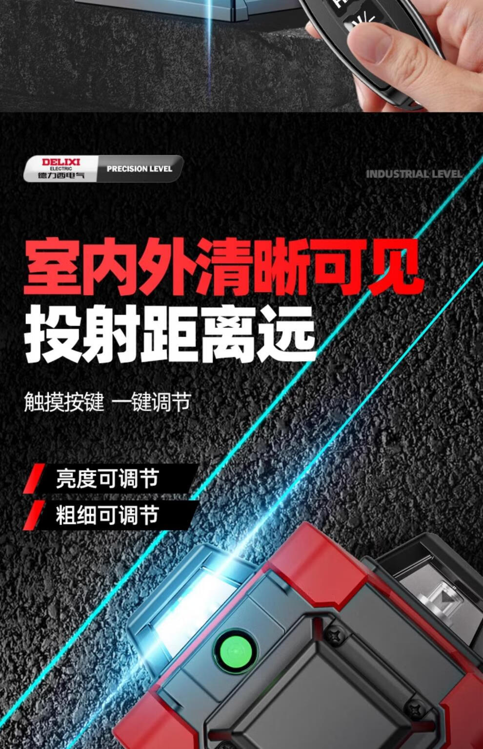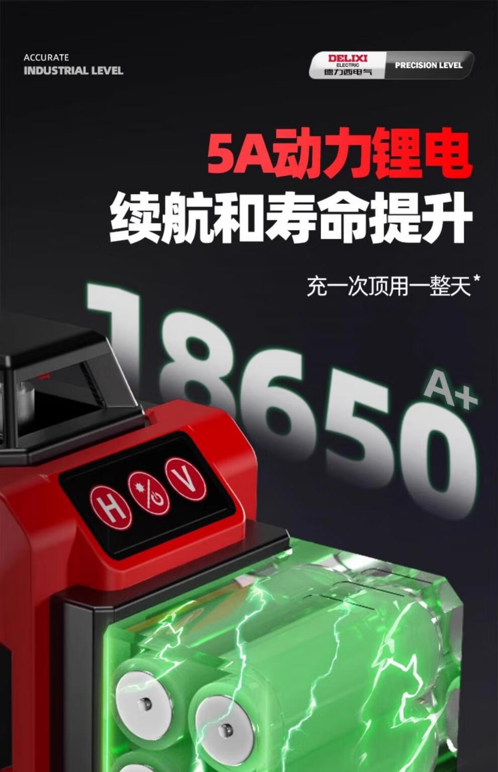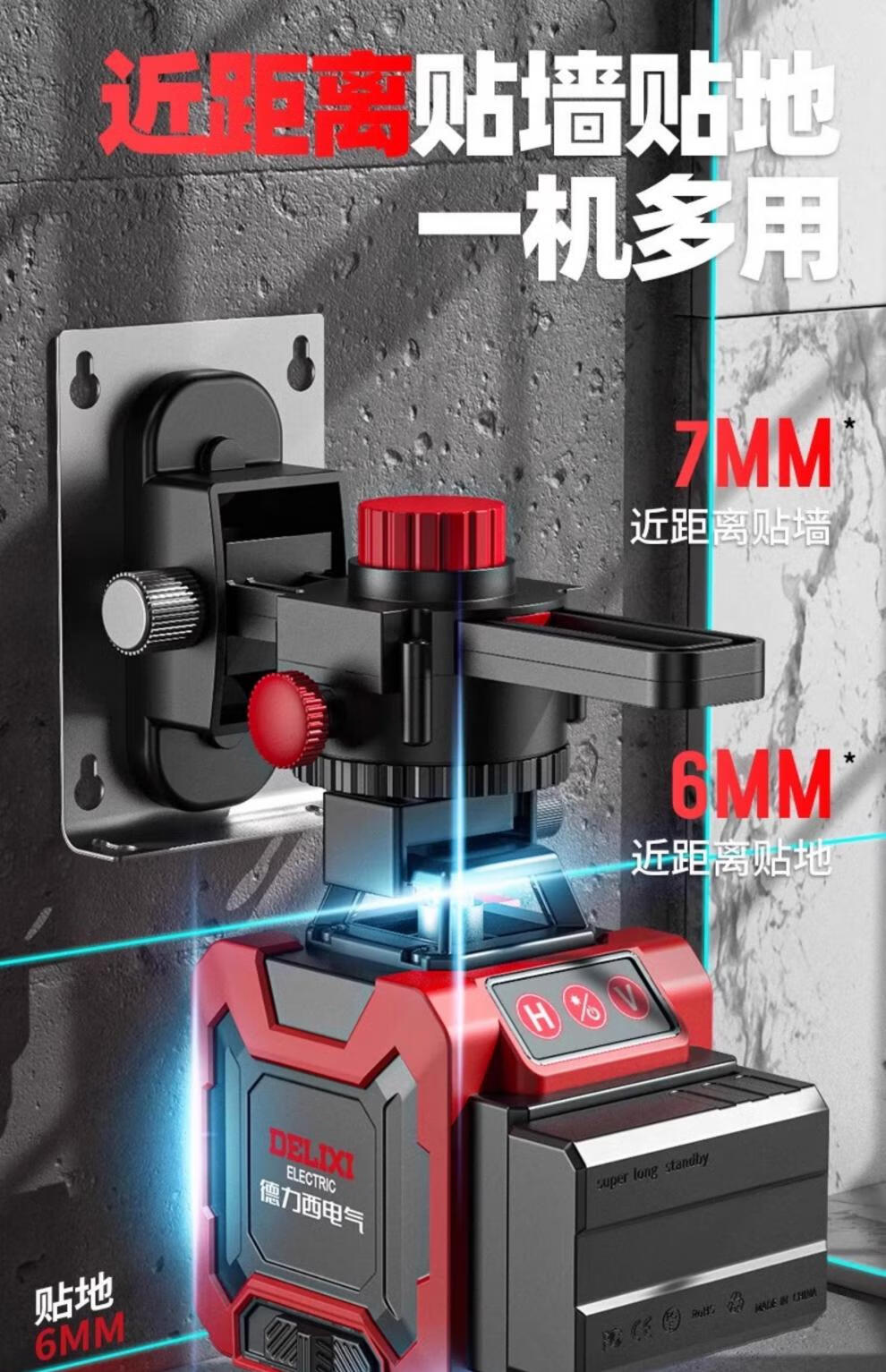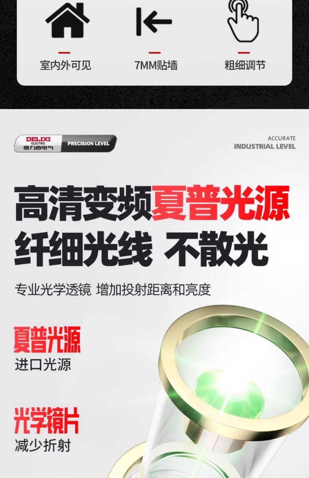 Delixi level meter green light high-precision strong light thin line laser wall-mounted meter floor-leveling meter ultra-bright green light 8-wire single electric