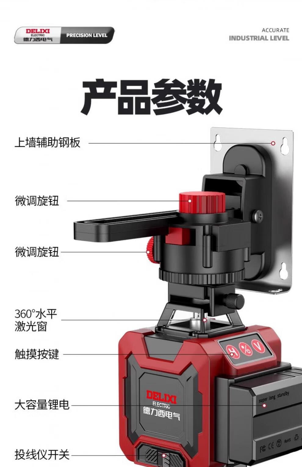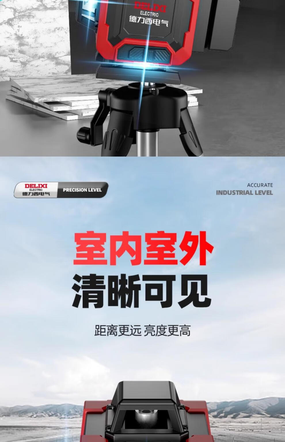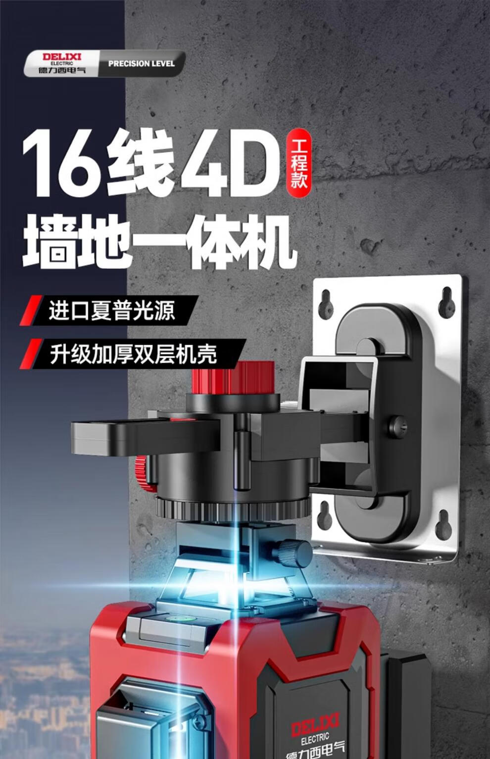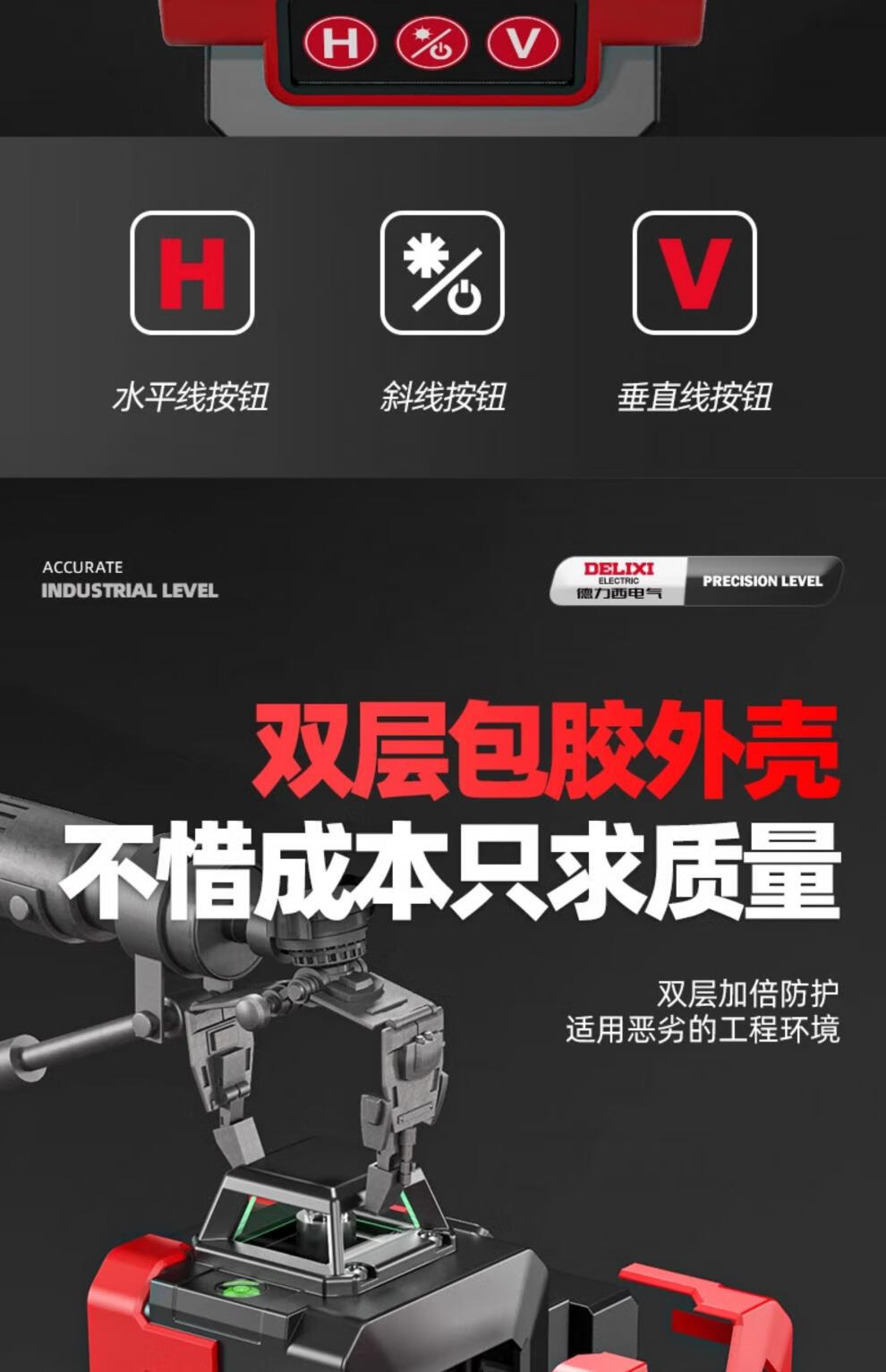 Delixi level meter green light high-precision strong light thin line laser wall-mounted meter floor-leveling meter ultra-bright green light 8-wire single electric