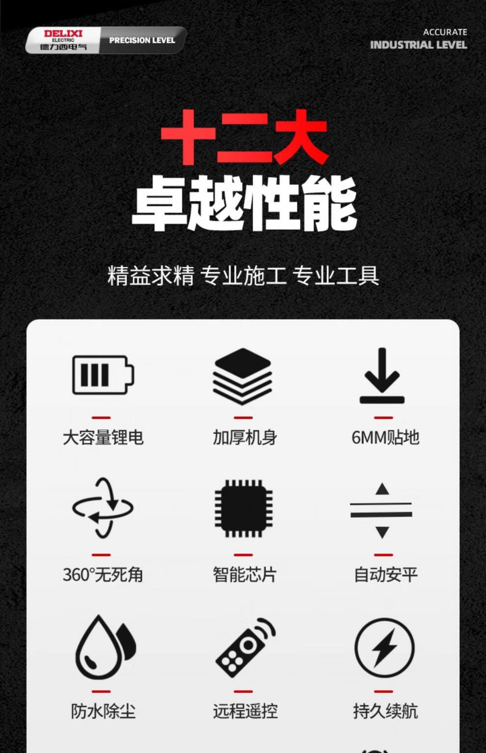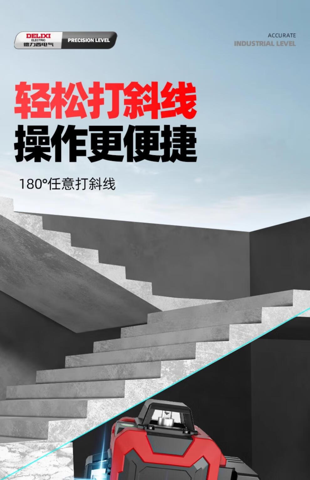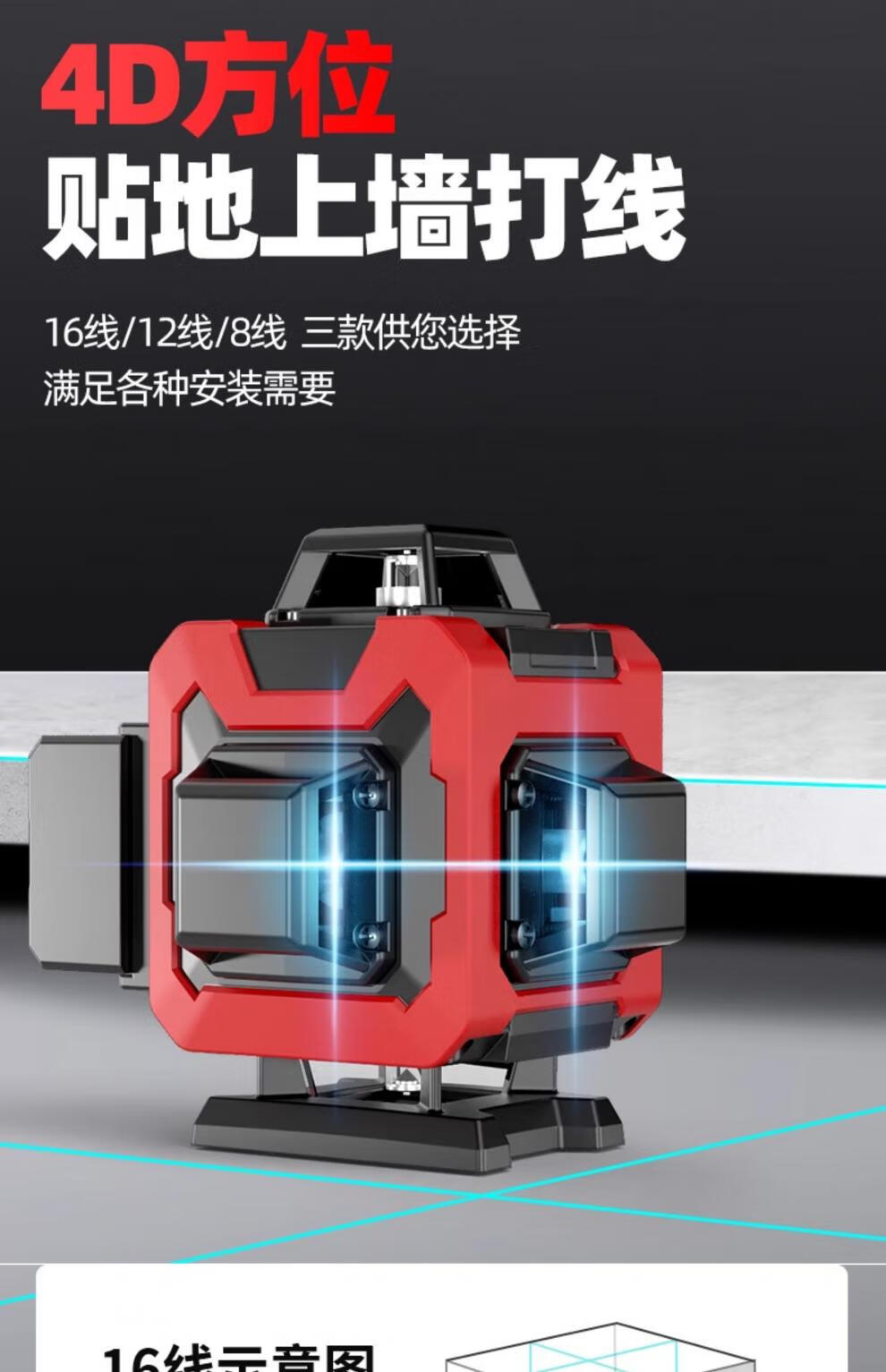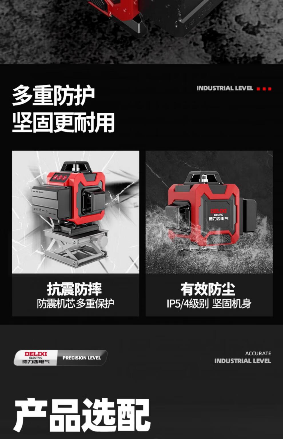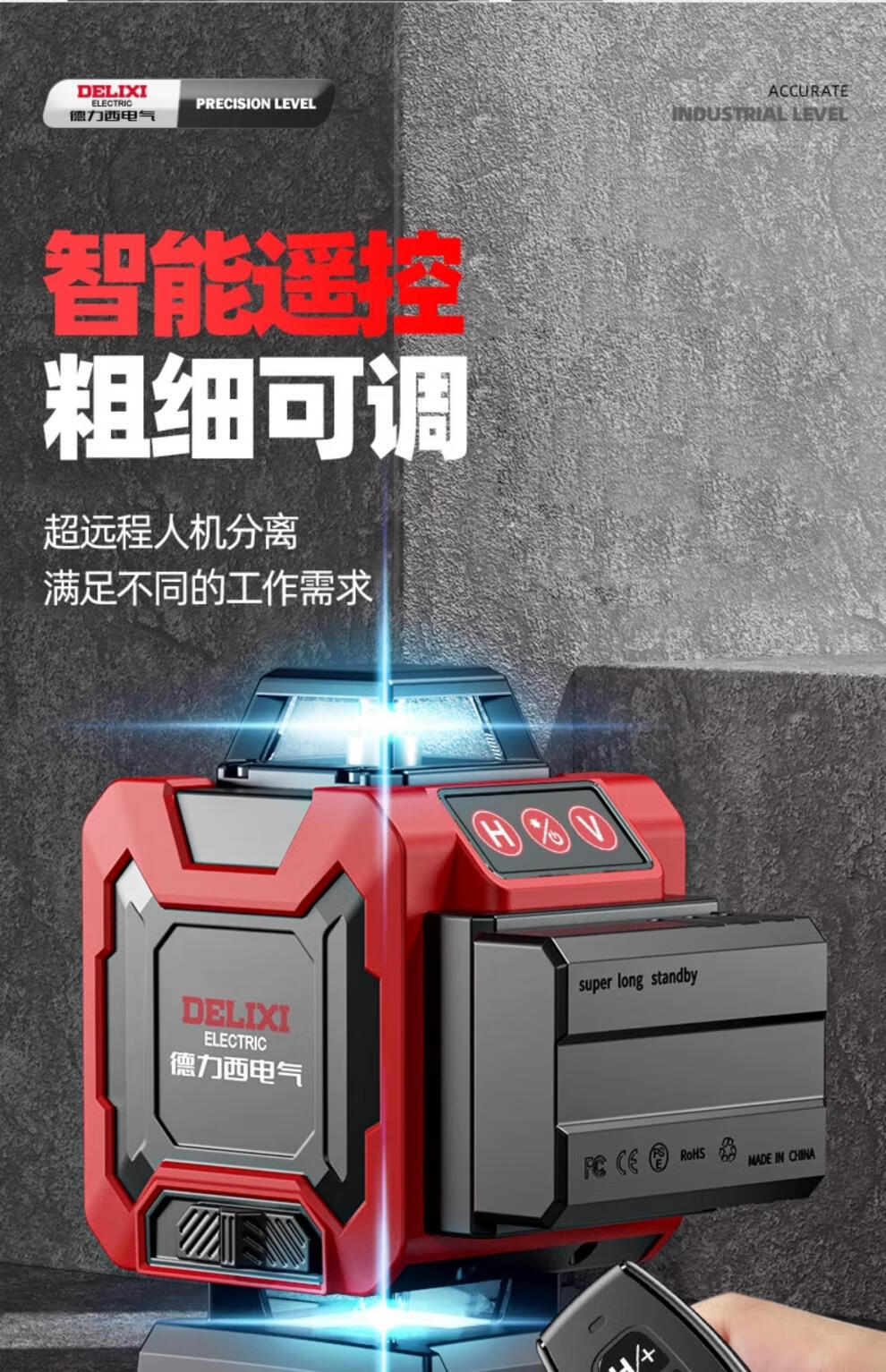 Delixi level meter green light high-precision strong light thin line laser wall-mounted meter floor-leveling meter ultra-bright green light 8-wire single electric