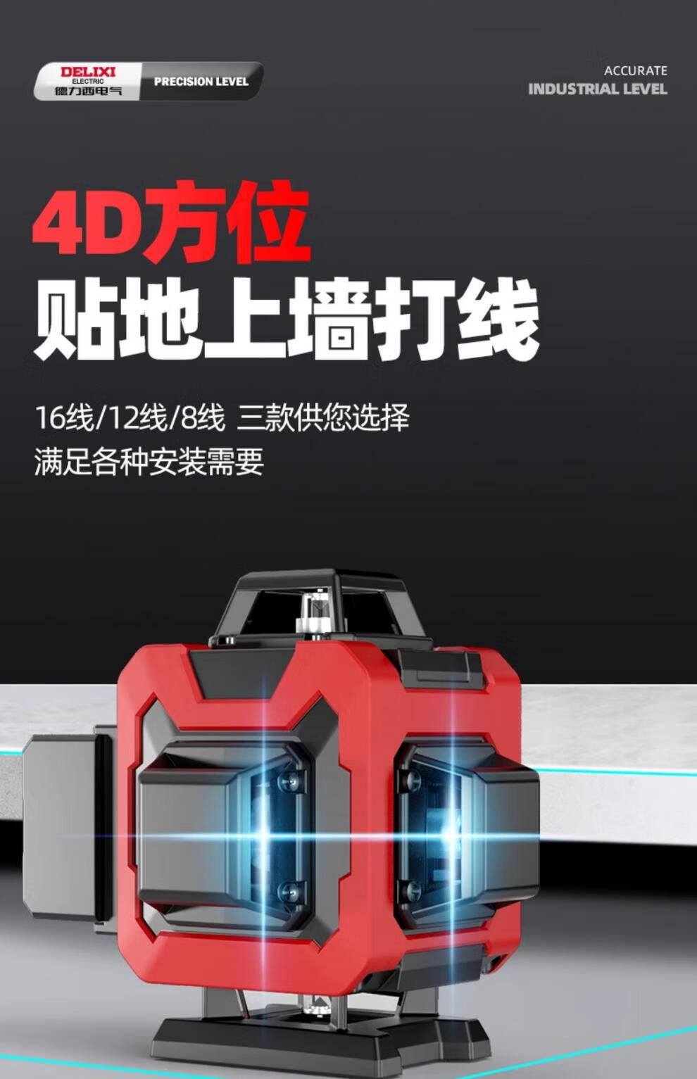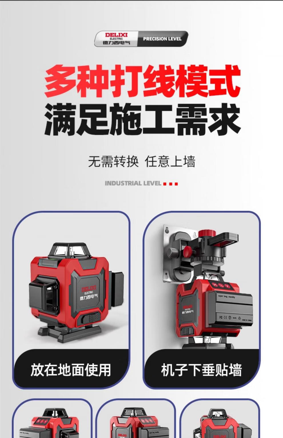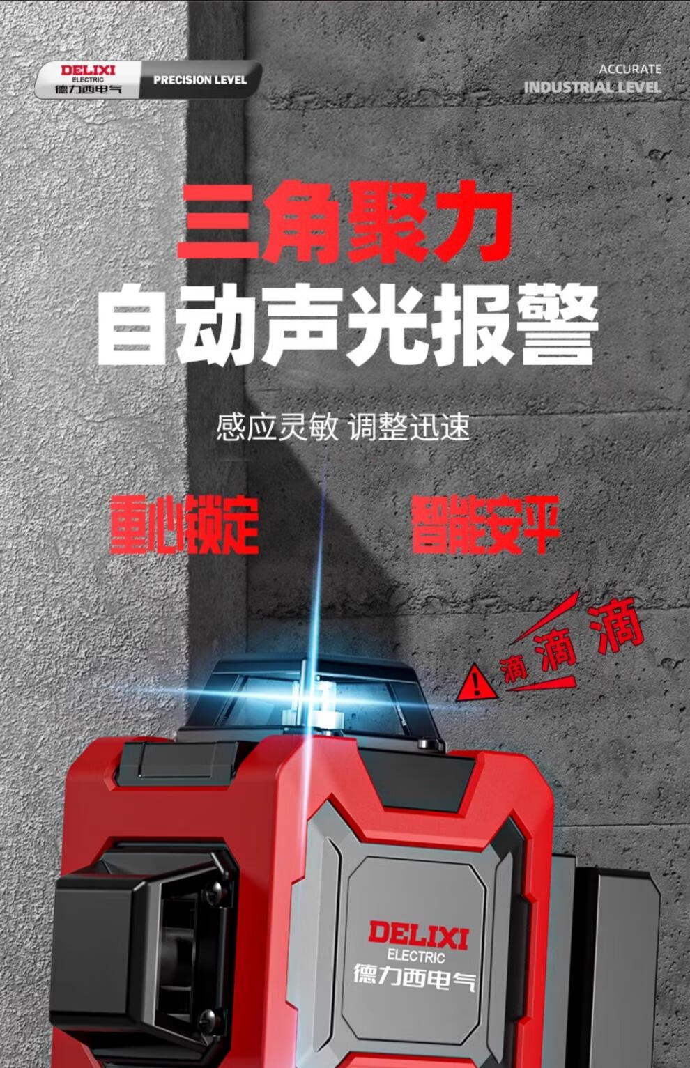 Delixi level high-precision bright light thin line 12 wall-mounted green laser automatic line leveling ultra-bright green light 8 lines dual electric