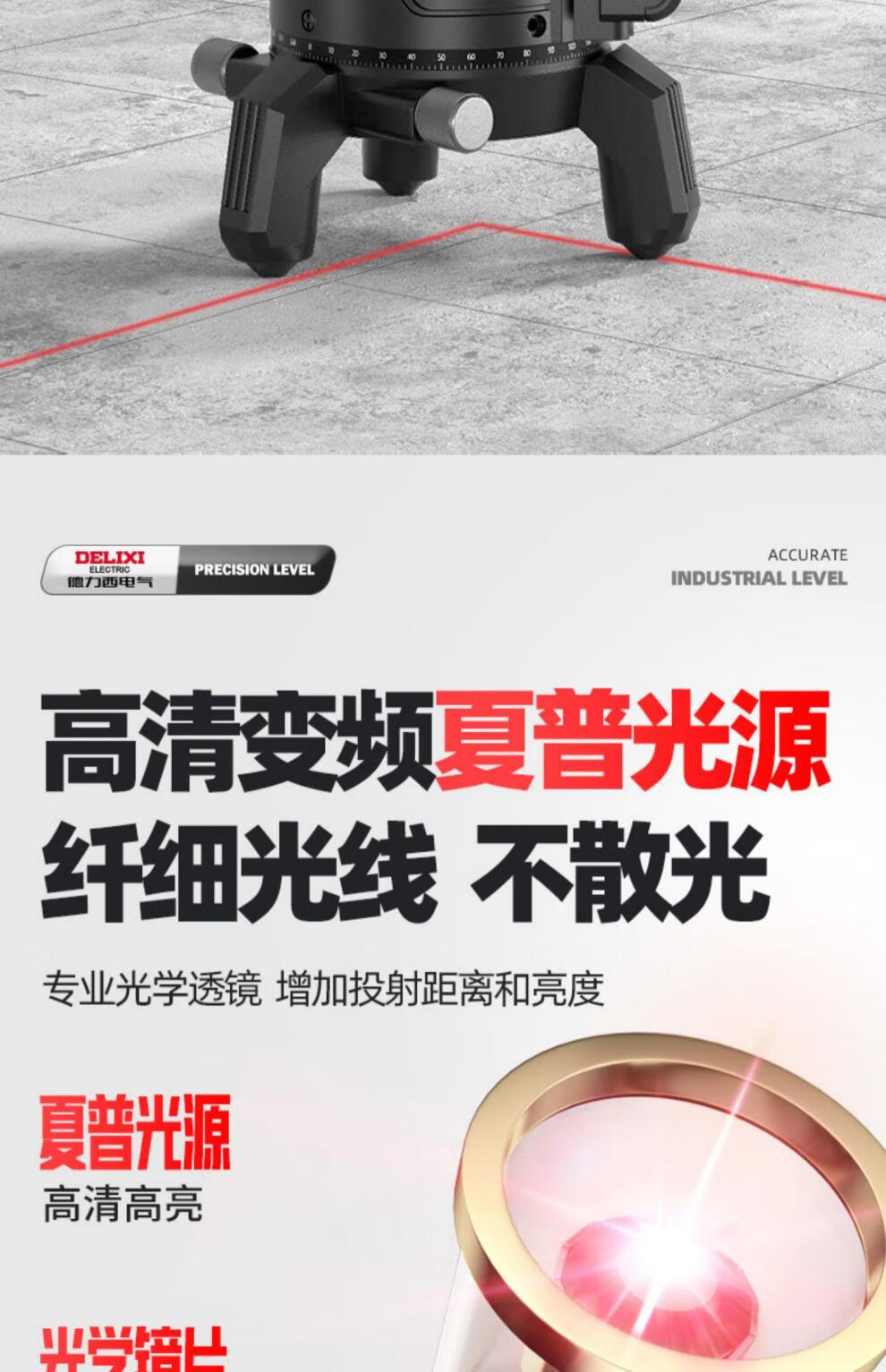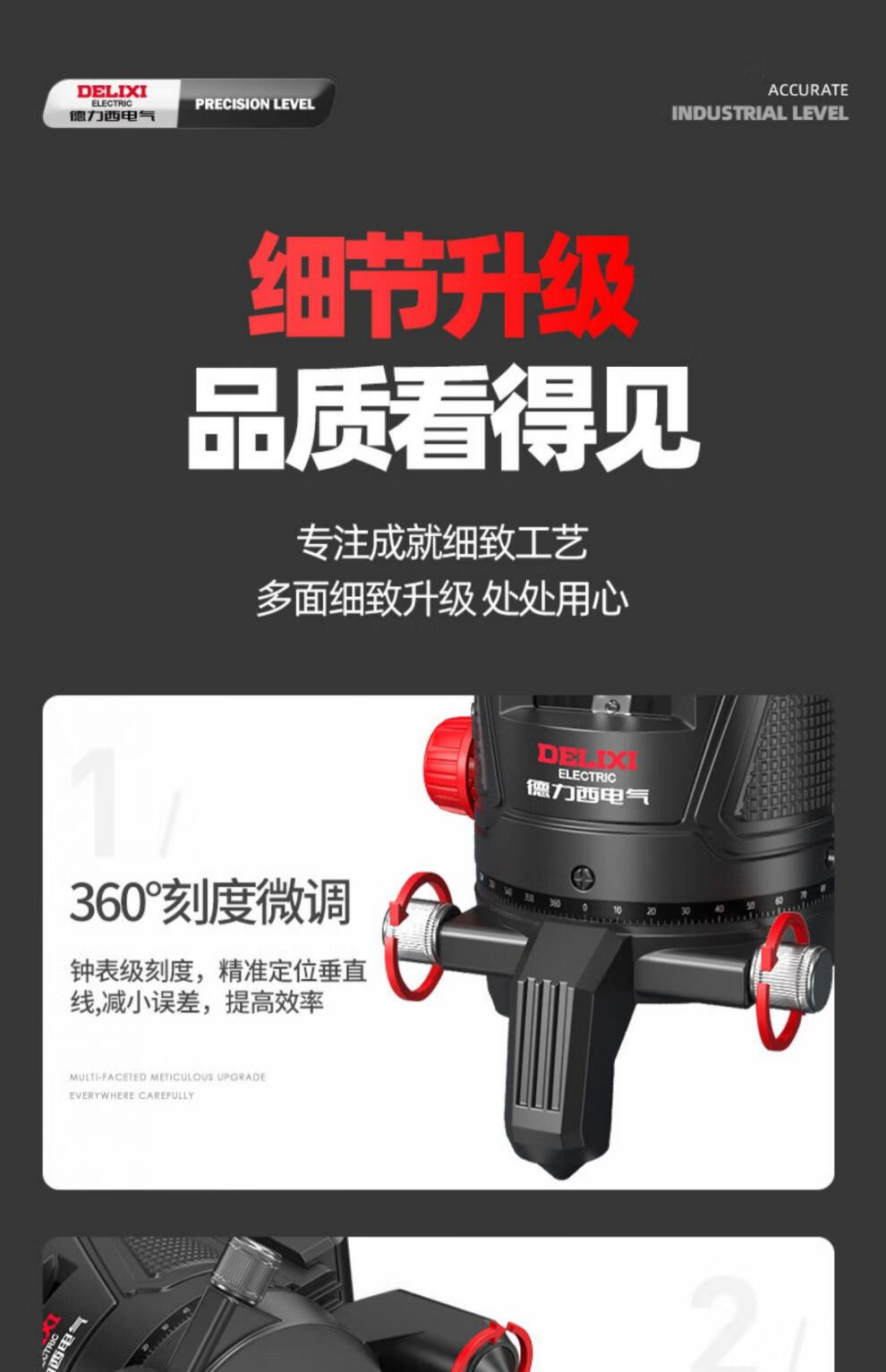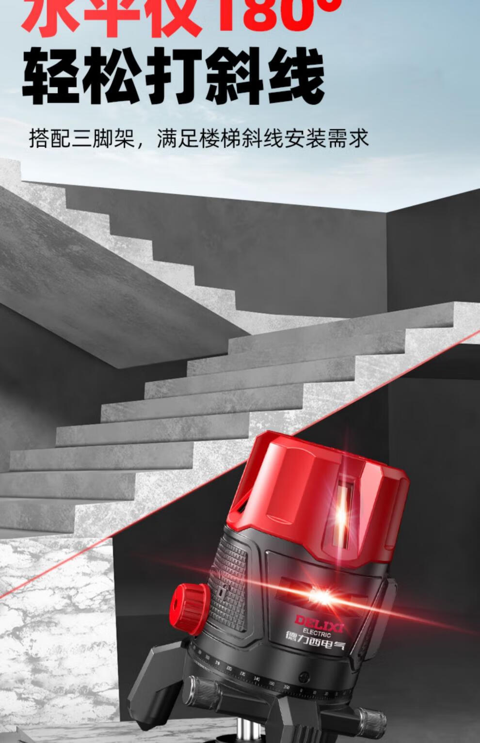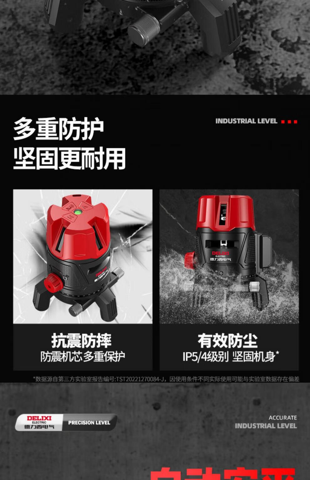 Delixi green light level meter laser 235 line high-precision strong light thin line line automatic leveling water meter 120w red light 2 lines_line + dual lithium battery