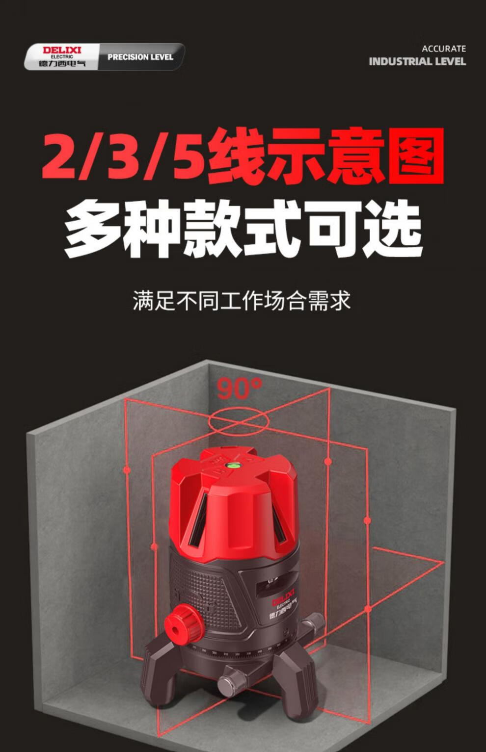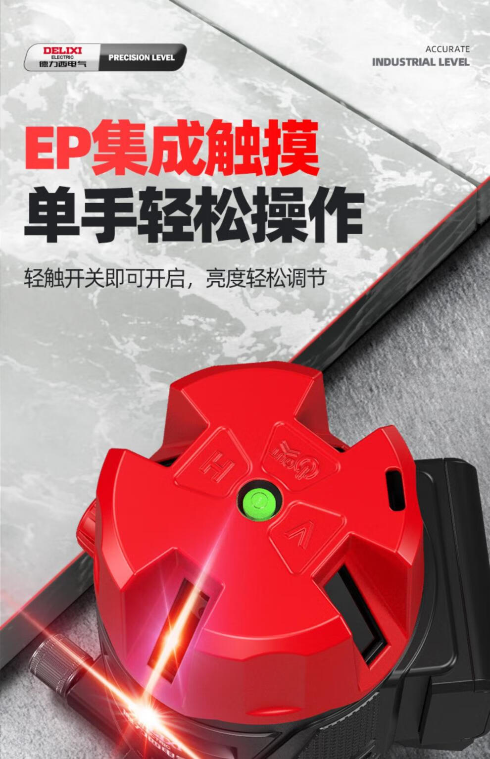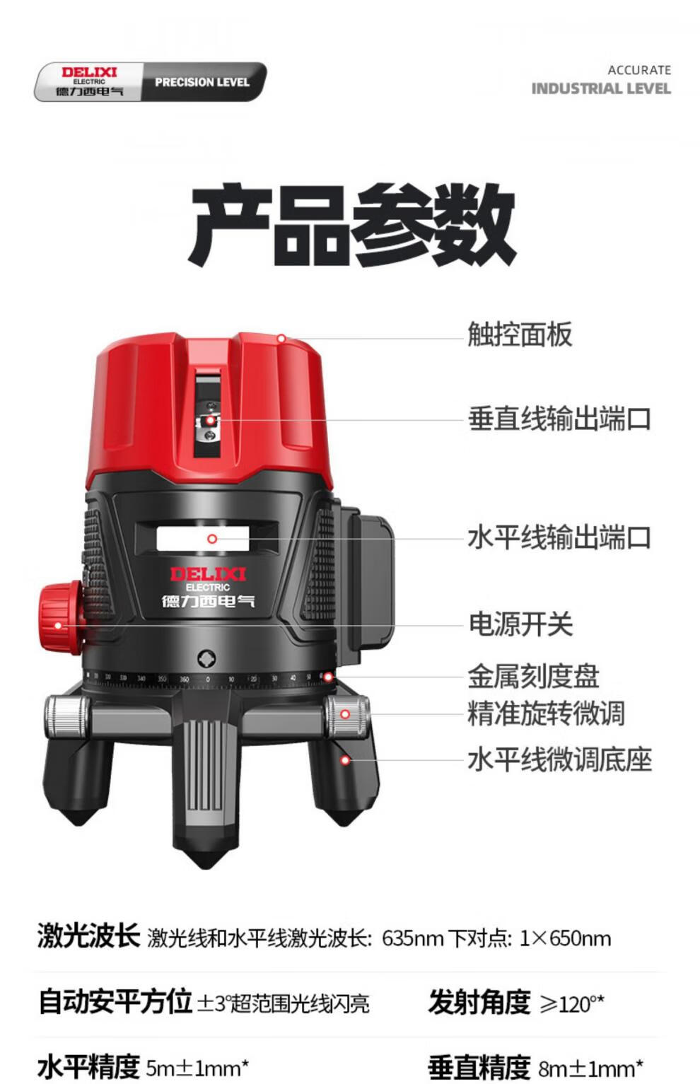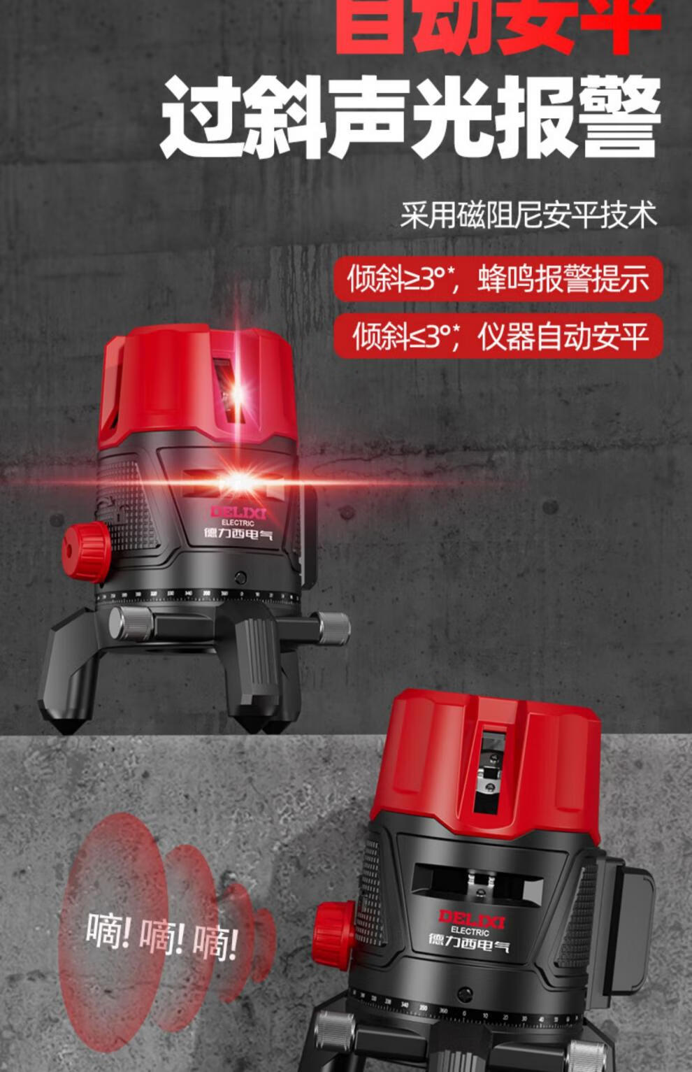 Delixi green light level meter laser 235 line high-precision strong light thin line line automatic leveling water meter 120w red light 2 lines_line + dual lithium battery