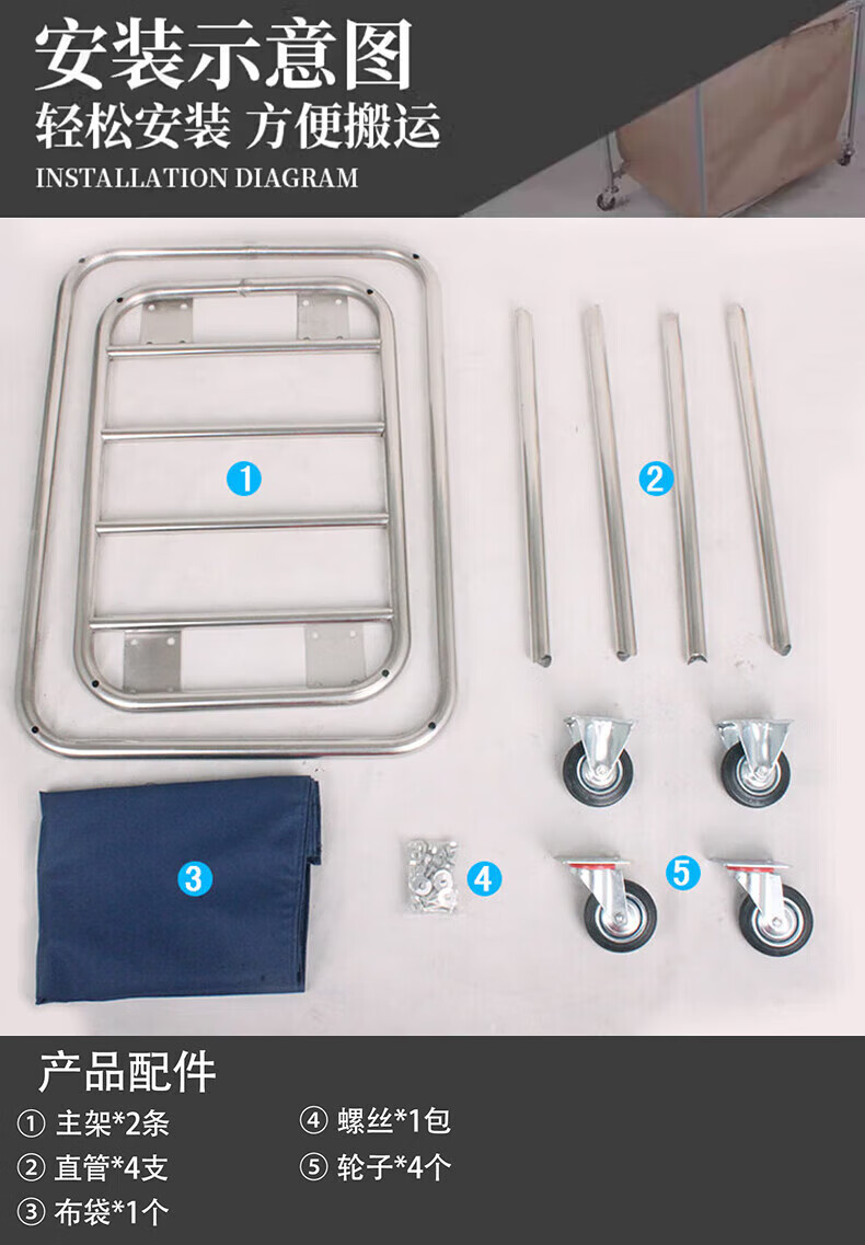 Hanchang hotel linen truck room service truck laundry room dirty linen recycling truck hotel stainless steel storage disassembly and assembly disassembly and assembly enhanced tapered blue (ten tubes)