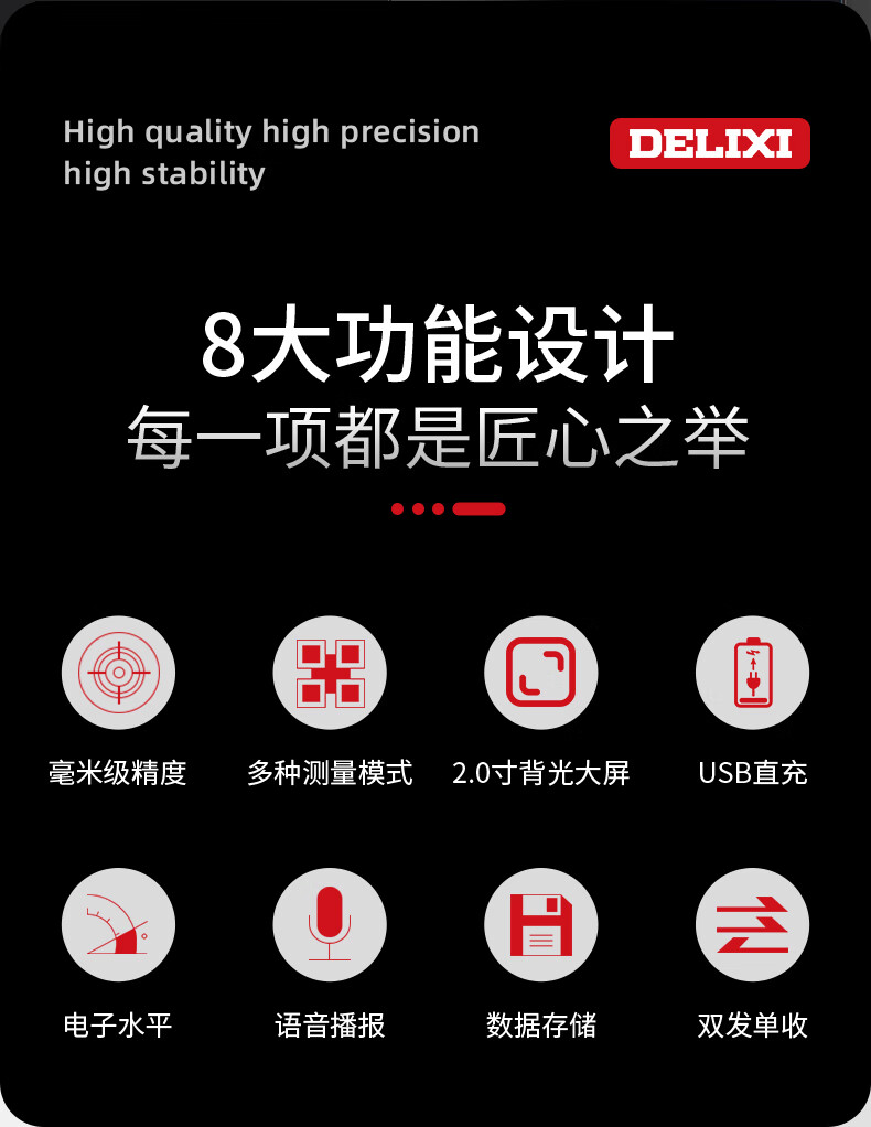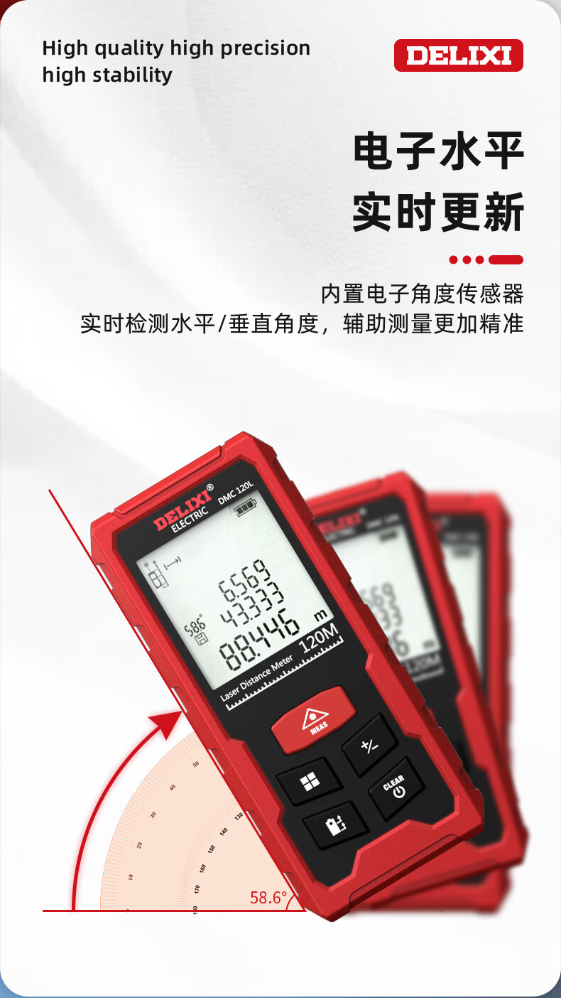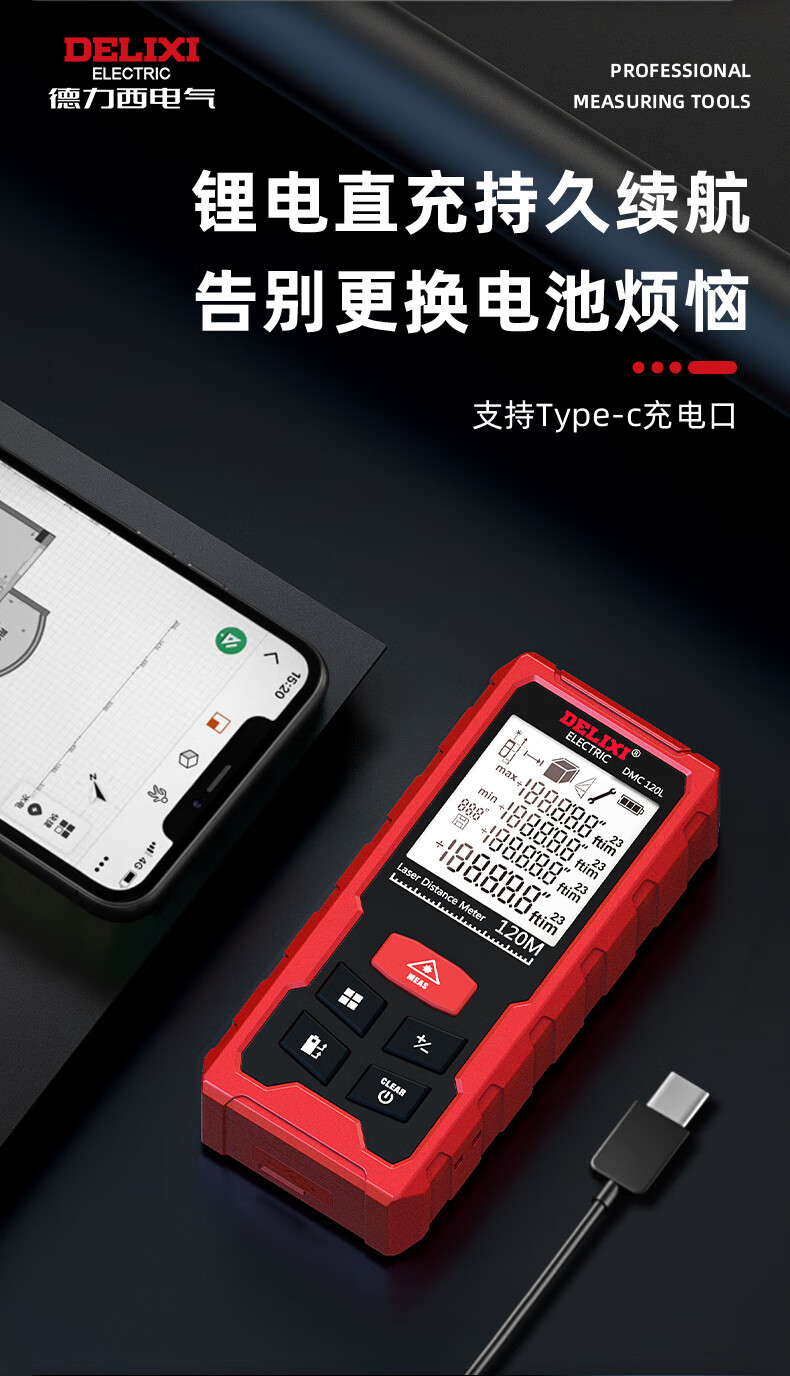 Delixi Electric Laser Distance Meter High-Precision Measuring Ruler Electronic Ruler Room Instrument Distance Measuring Instrument K50 Meter Mini Basic Model
