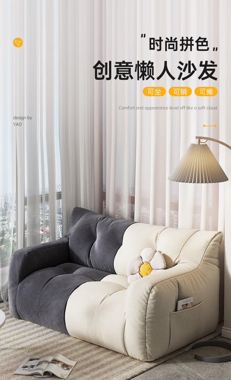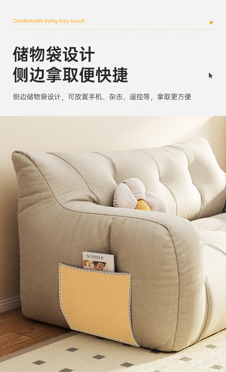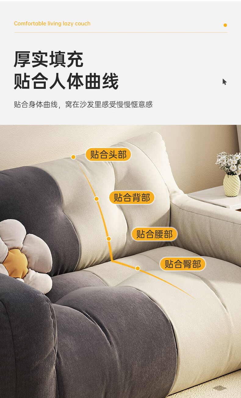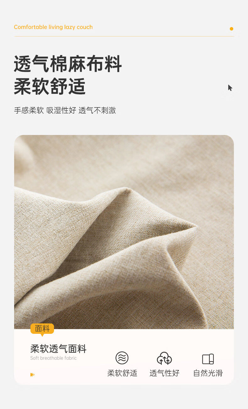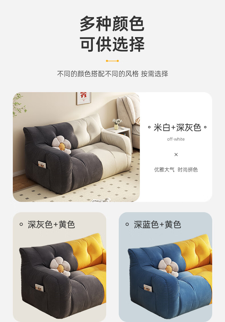 Lazy sofa, small apartment fabric sofa, double tatami for rentals, seating area, tatami for rentals, small double 115cm, off-white, thick and full filling