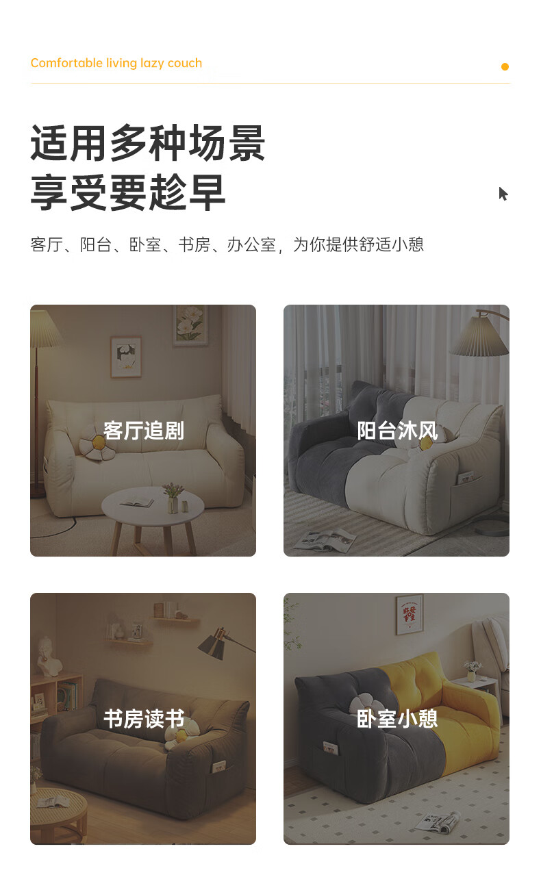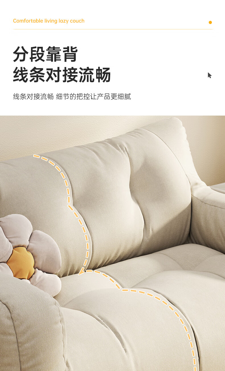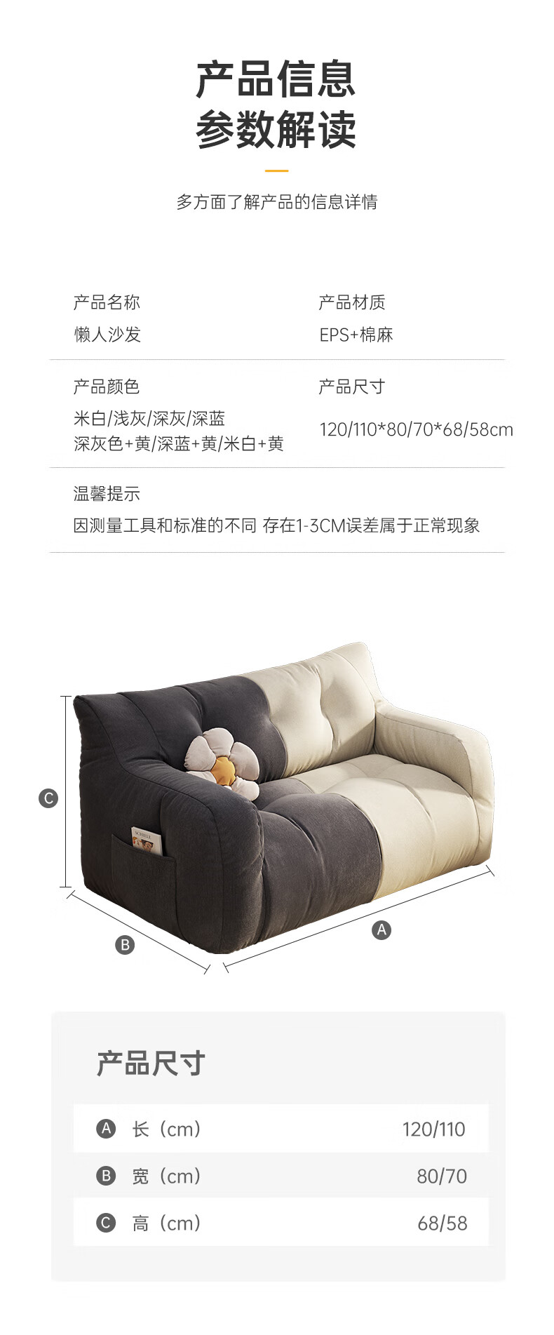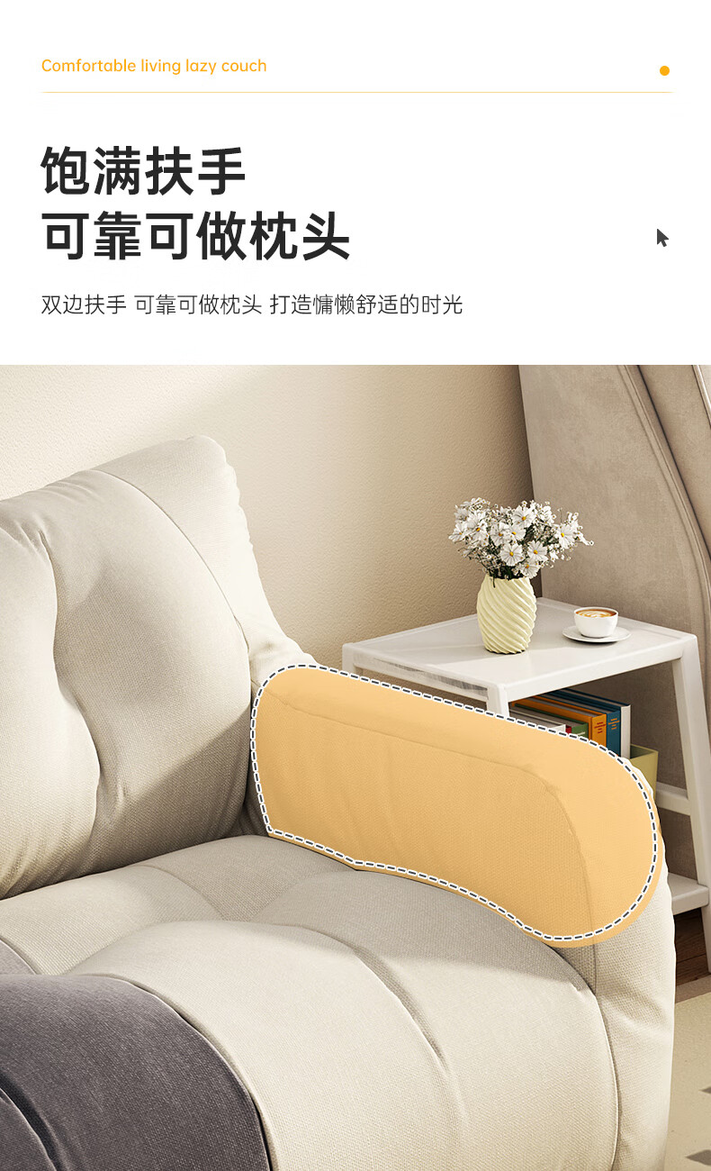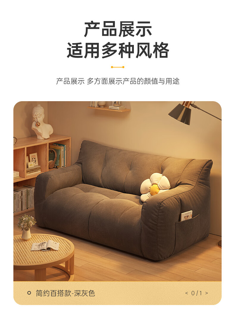 Lazy sofa, small apartment fabric sofa, double tatami for rentals, seating area, tatami for rentals, small double 115cm, off-white, thick and full filling