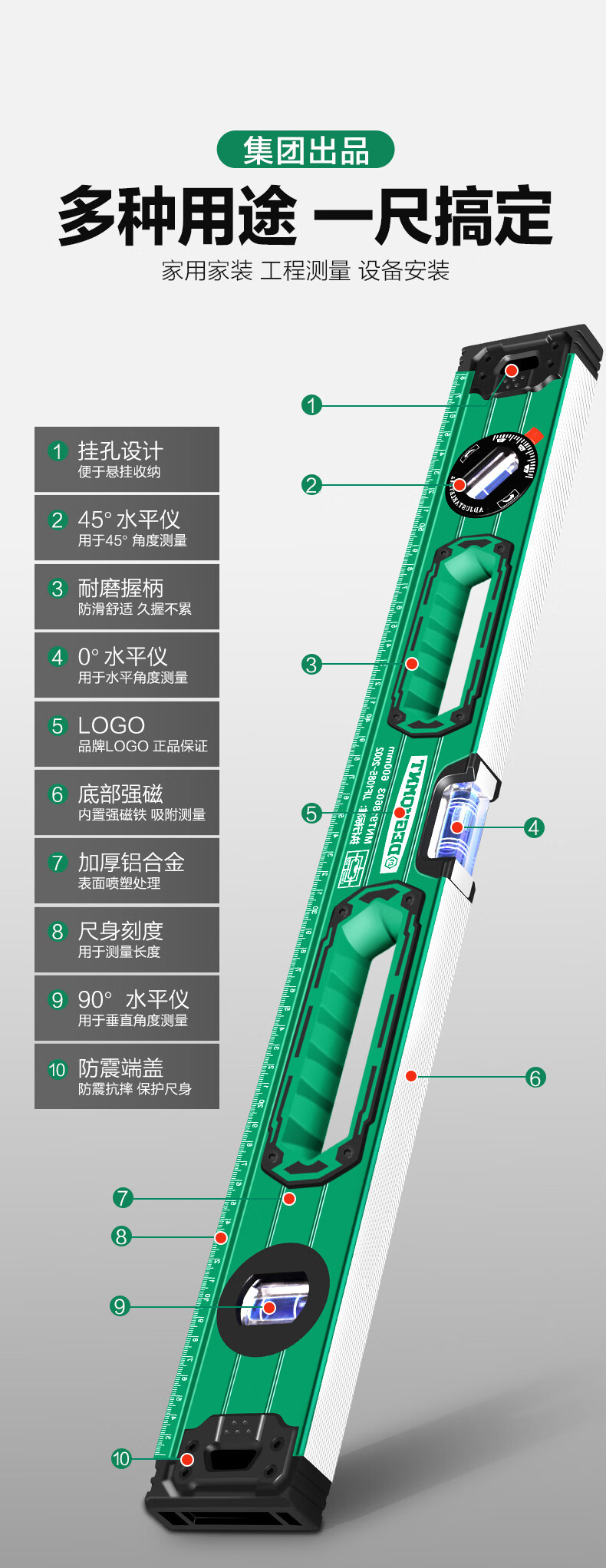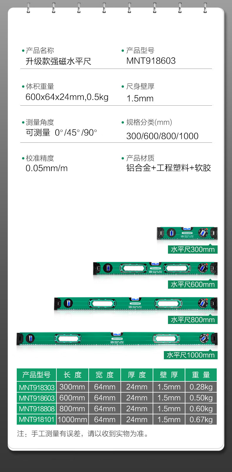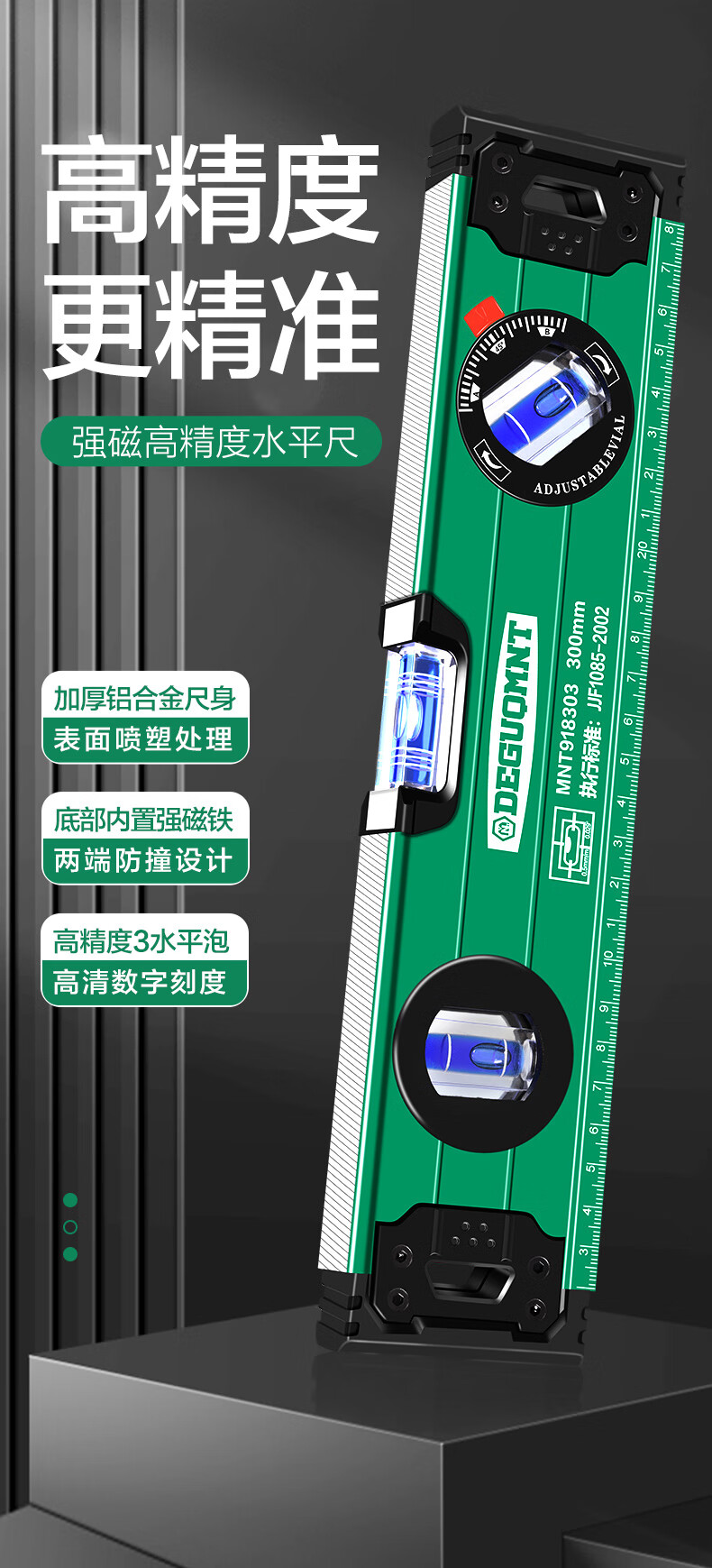 Minate spirit level high-precision strong magnetic level water ruler fan small balancer industrial grade aluminum alloy slope ruler 300mm strong magnetic upgraded version level ruler