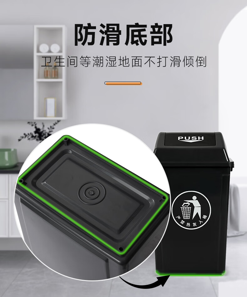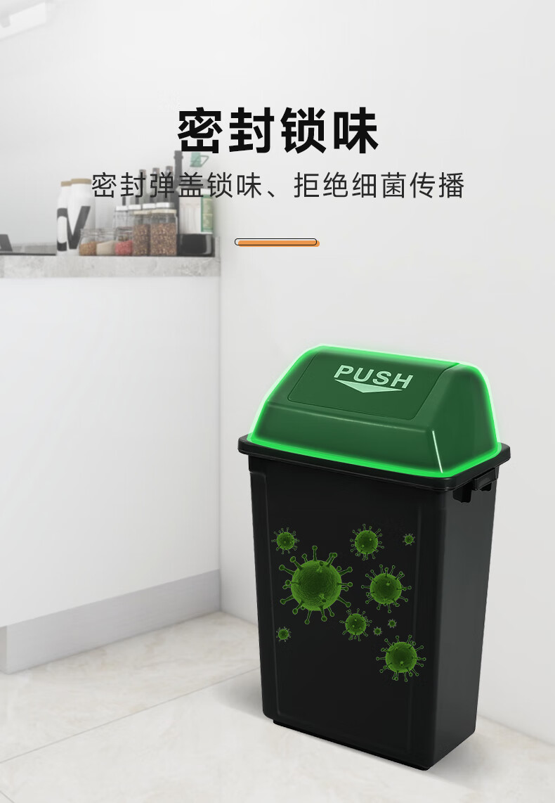 Keshuang indoor trash can with swing lid, office bathroom, living room, kitchen, dormitory, large removable wheeled flip-top trash can 60L + thickened + free universal wheels, green delivery bid