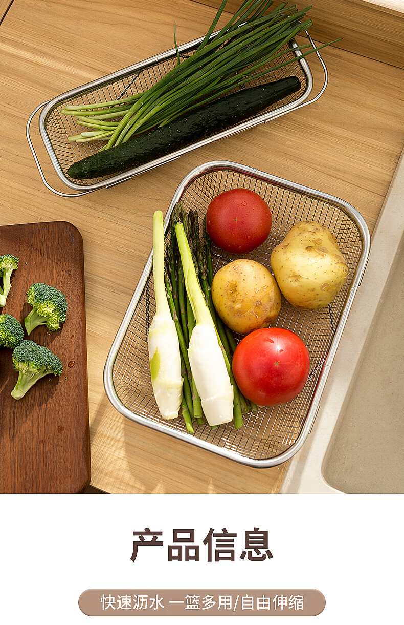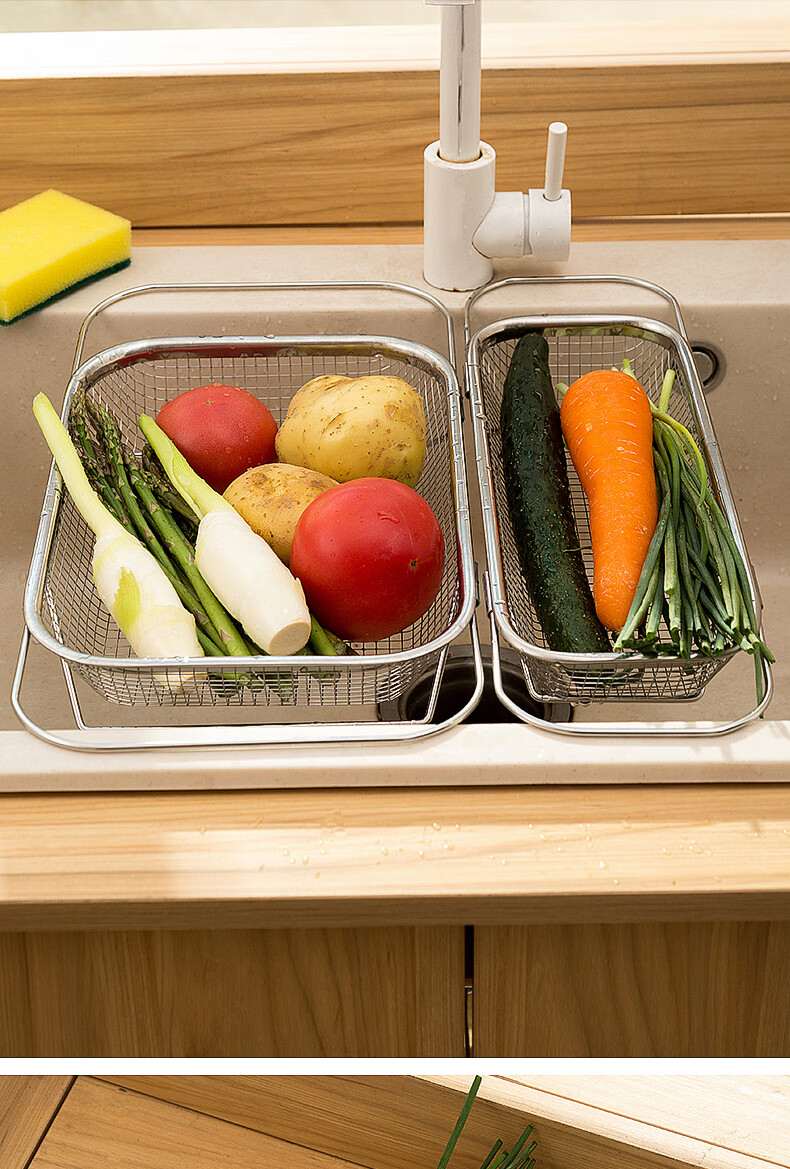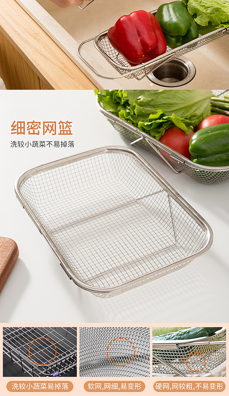 Kaooseen sink drain basket, stainless steel sink drain rack, kitchen sink, retractable sink, multi-functional storage rack, medium + large + extra large, three-piece set with anti-slip mat, stainless steel model
