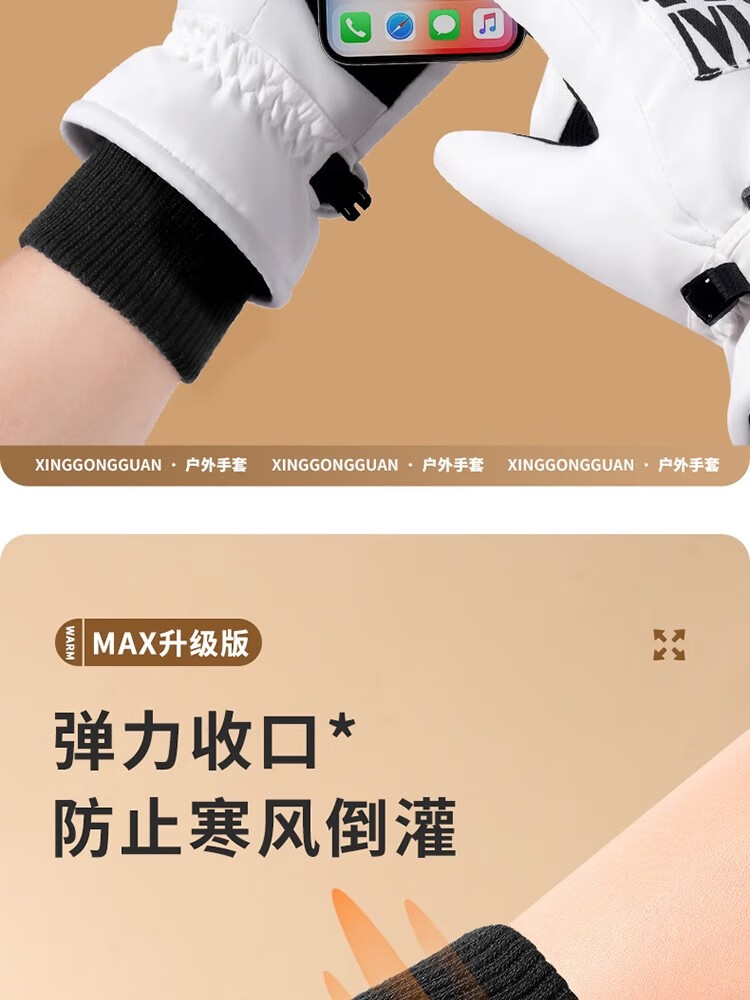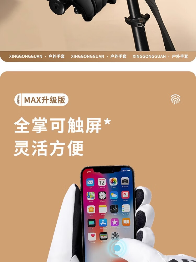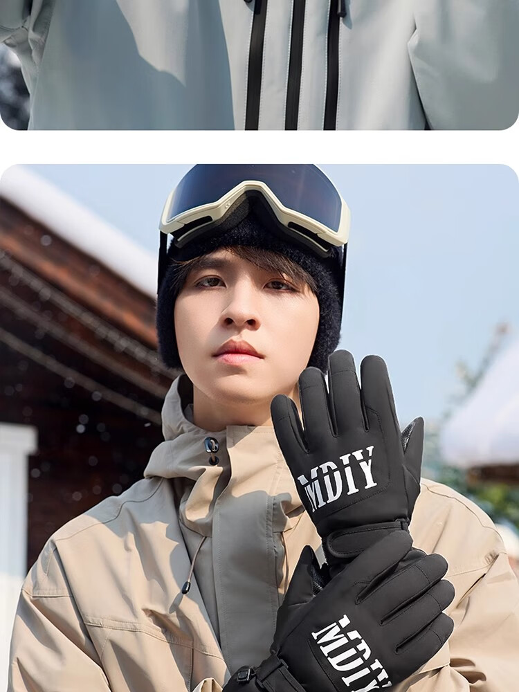 GERTHRON German motorcycle gloves winter waterproof, windproof and coldproof for men and women to ride with touch screen to keep warm and velvet thickened for cycling Men's style - black, windproof for riding I, waterproof touch screen