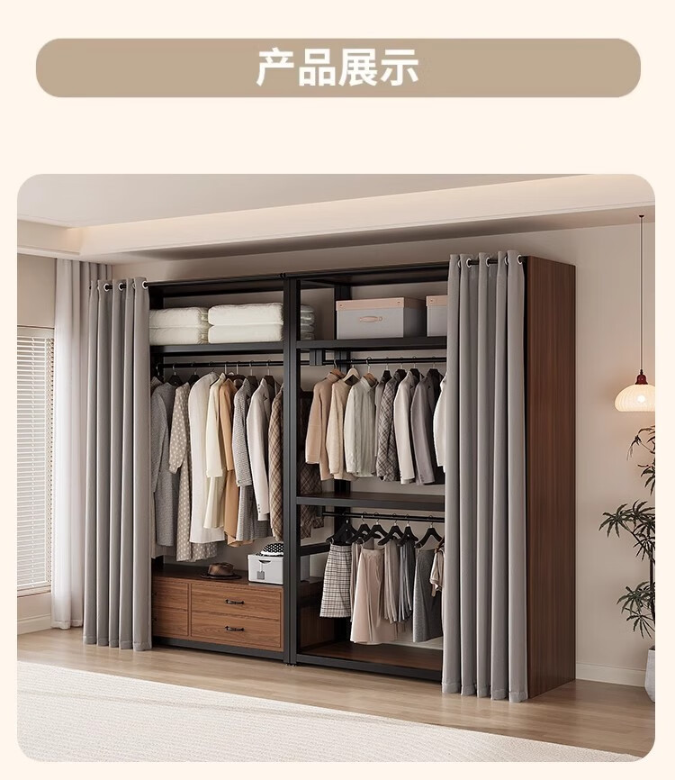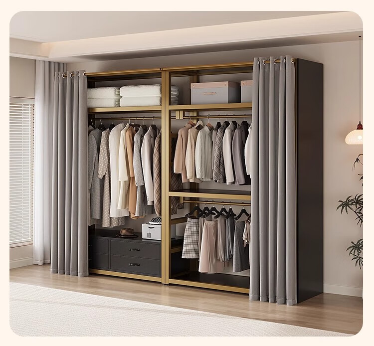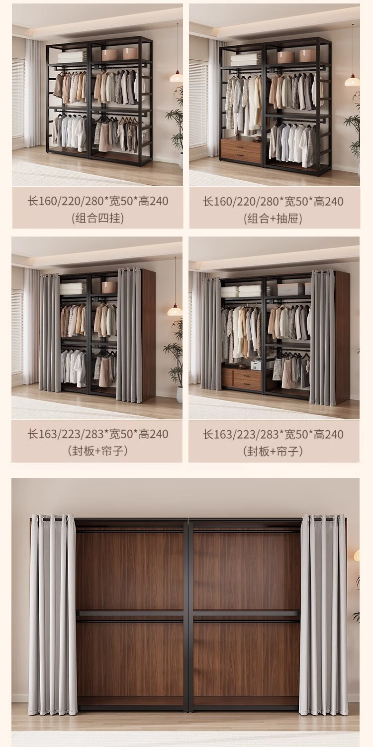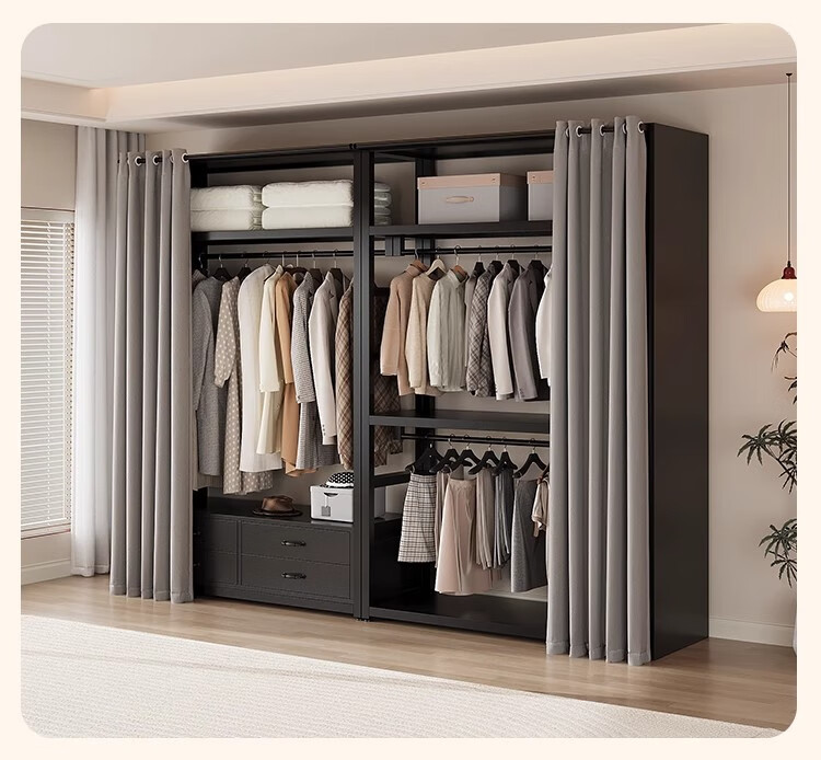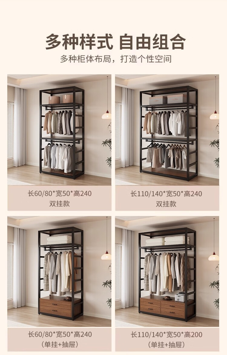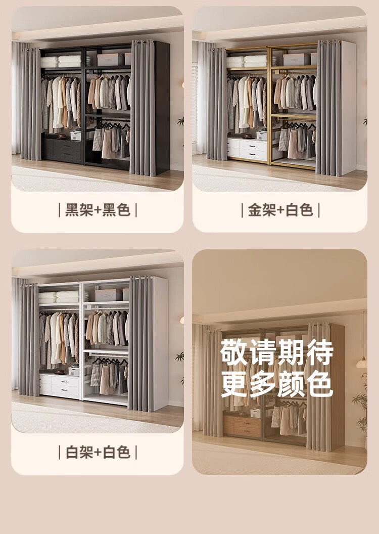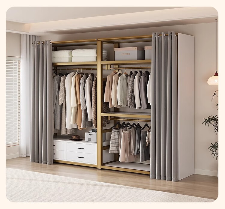 Dr. Fan walks into the cloakroom and makes his own combination coat rack, floor-standing bedroom clothes rack, metal frame open wardrobe with curtain, four-drawer combination 223*60*240 with side panels