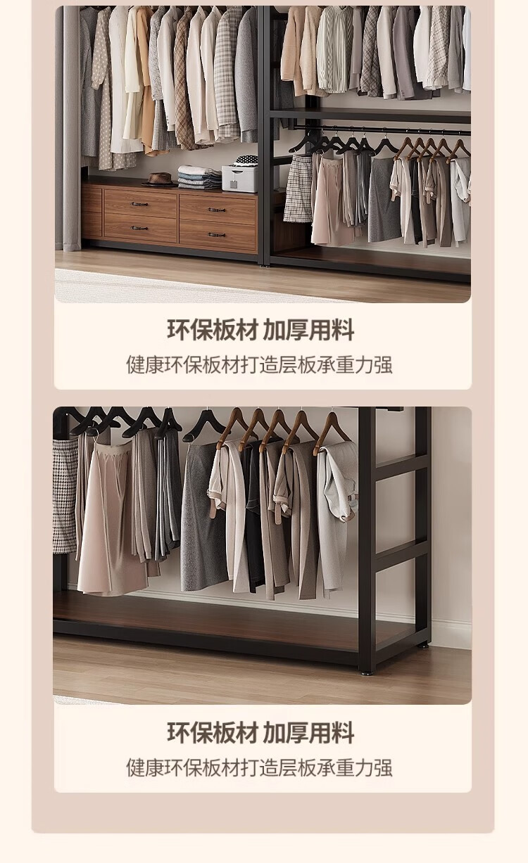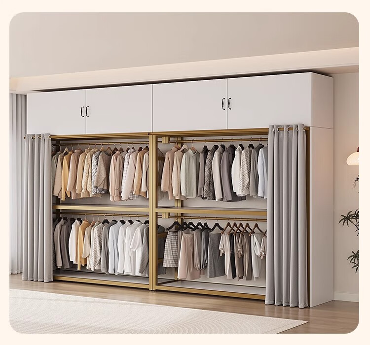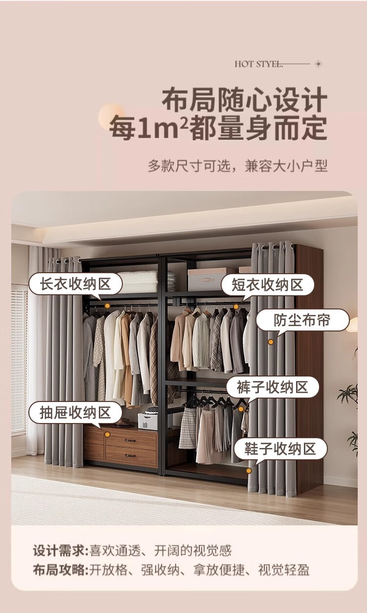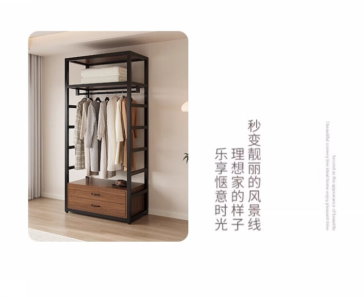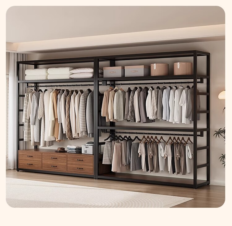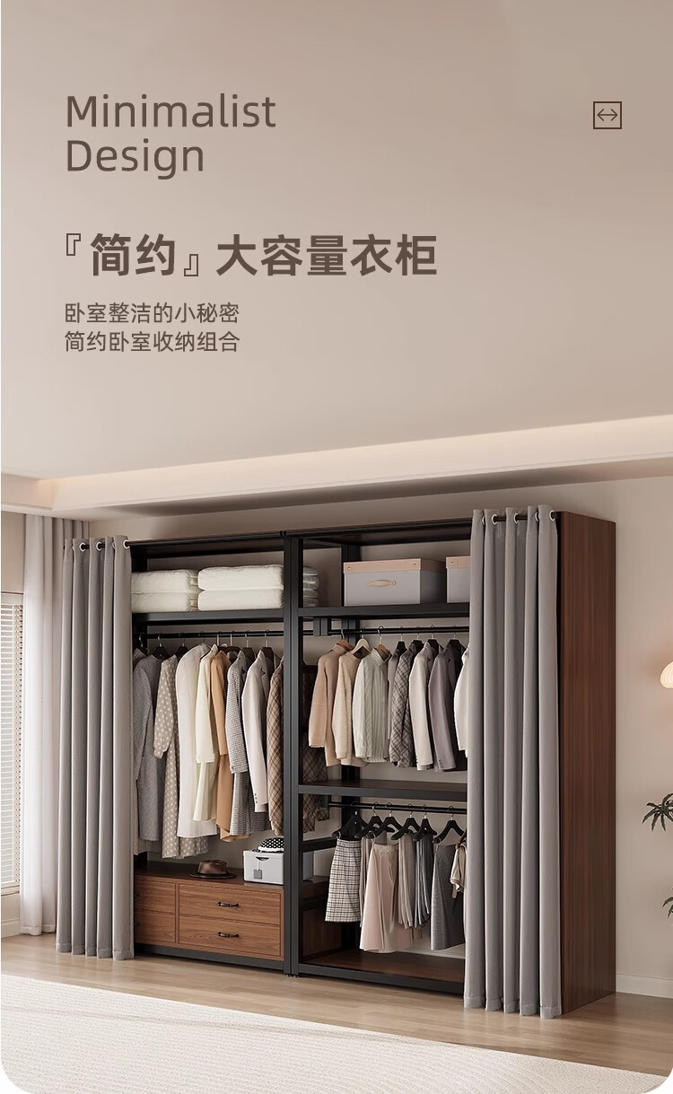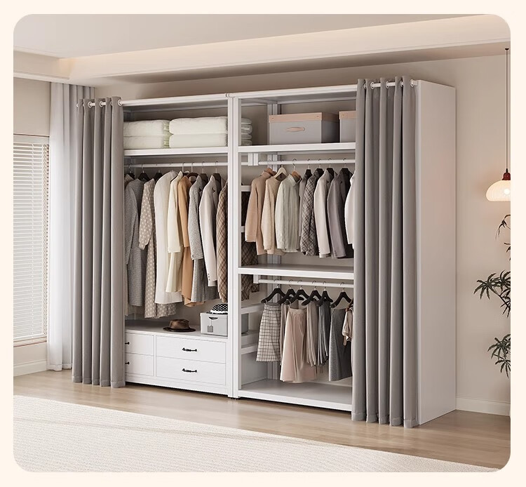 Dr. Fan walks into the cloakroom and makes his own combination coat rack, floor-standing bedroom clothes rack, metal frame open wardrobe with curtain, four-drawer combination 223*60*240 with side panels