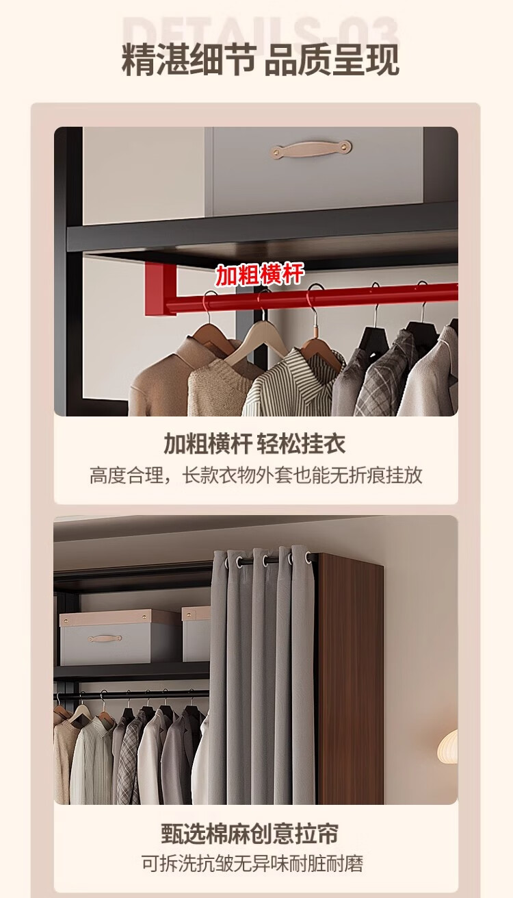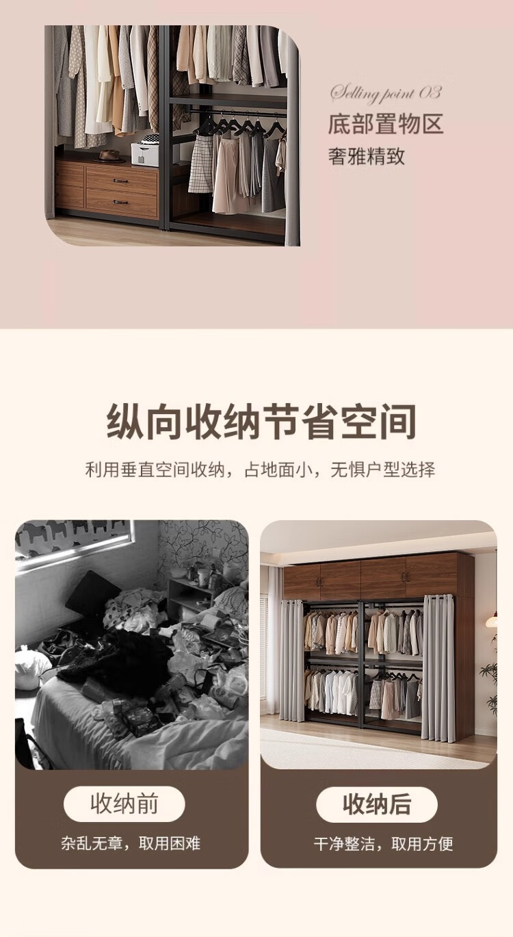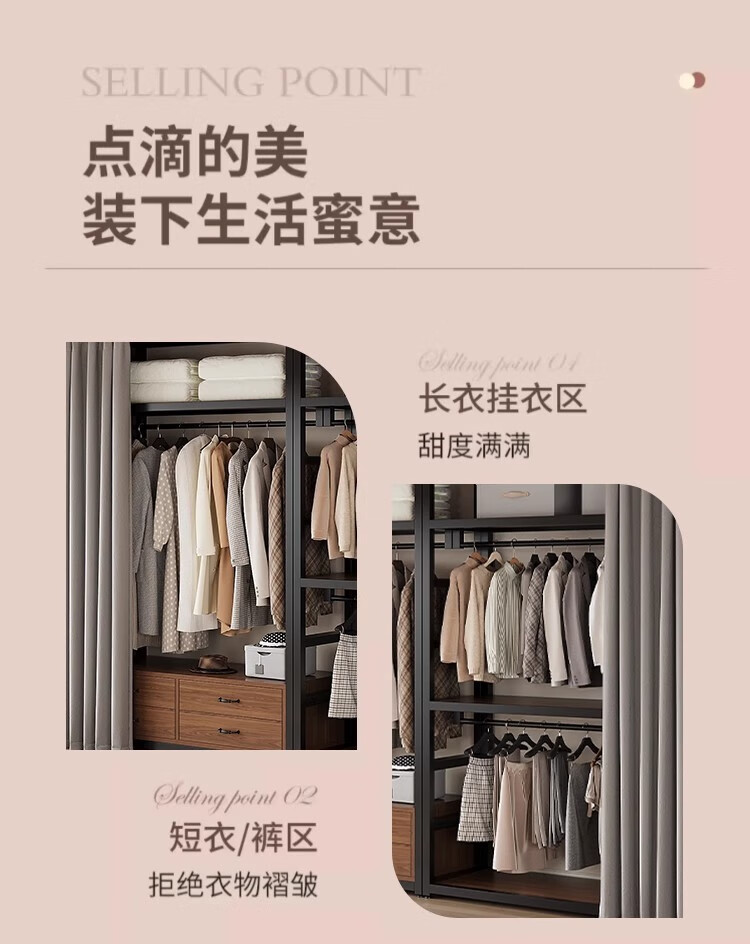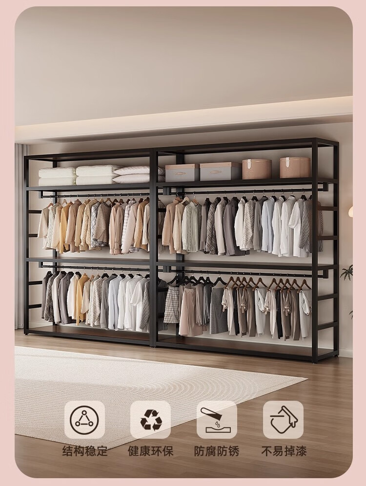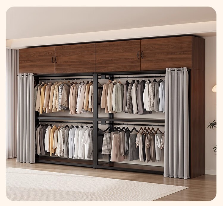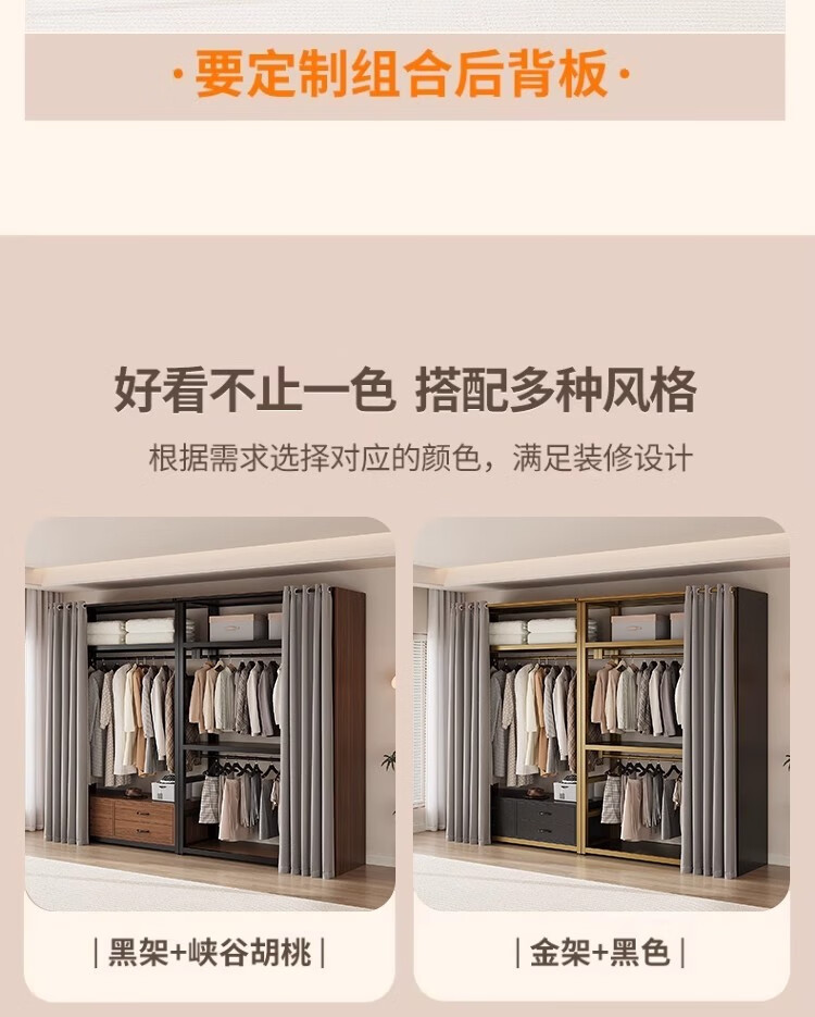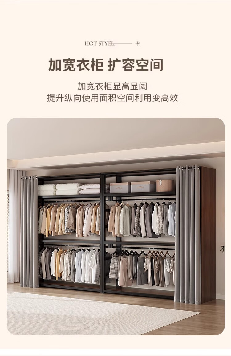 Dr. Fan walks into the cloakroom and makes his own combination coat rack, floor-standing bedroom clothes rack, metal frame open wardrobe with curtain, four-drawer combination 223*60*240 with side panels