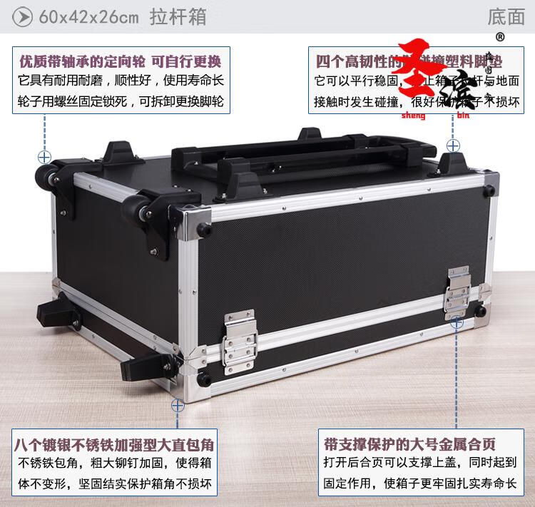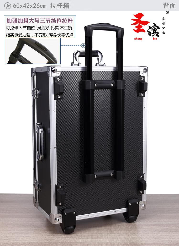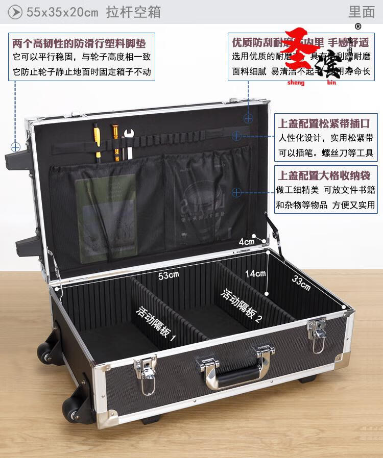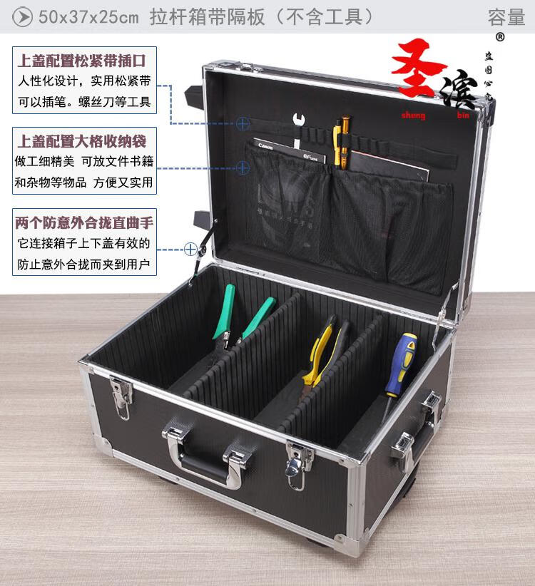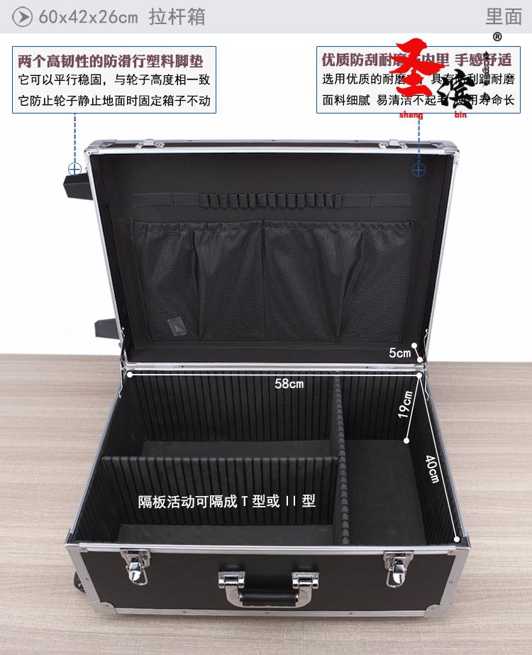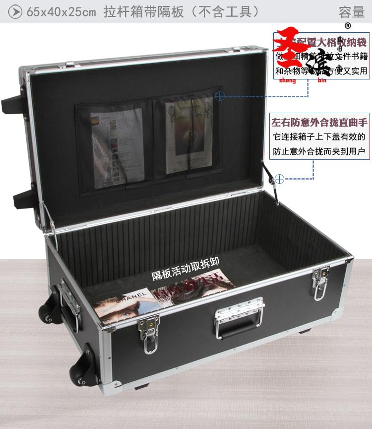 Aoyanlai wheeled aluminum alloy tool box flight case large multi-functional trolley case hardware equipment instrument transport aluminum box 65x40x25 black trolley case with partitions filled with cotton