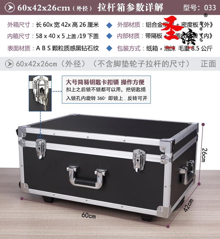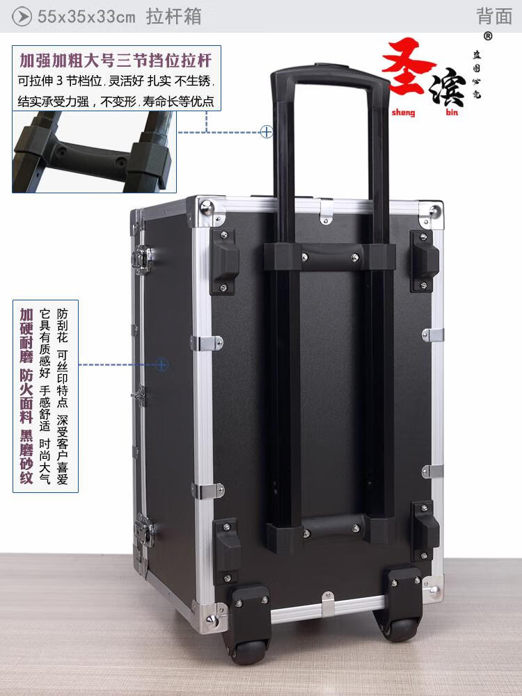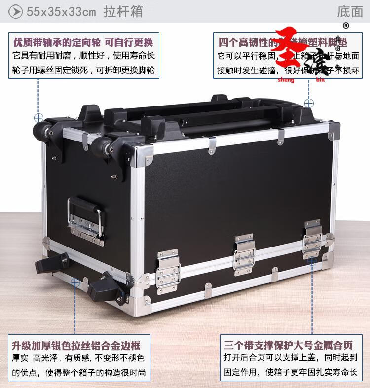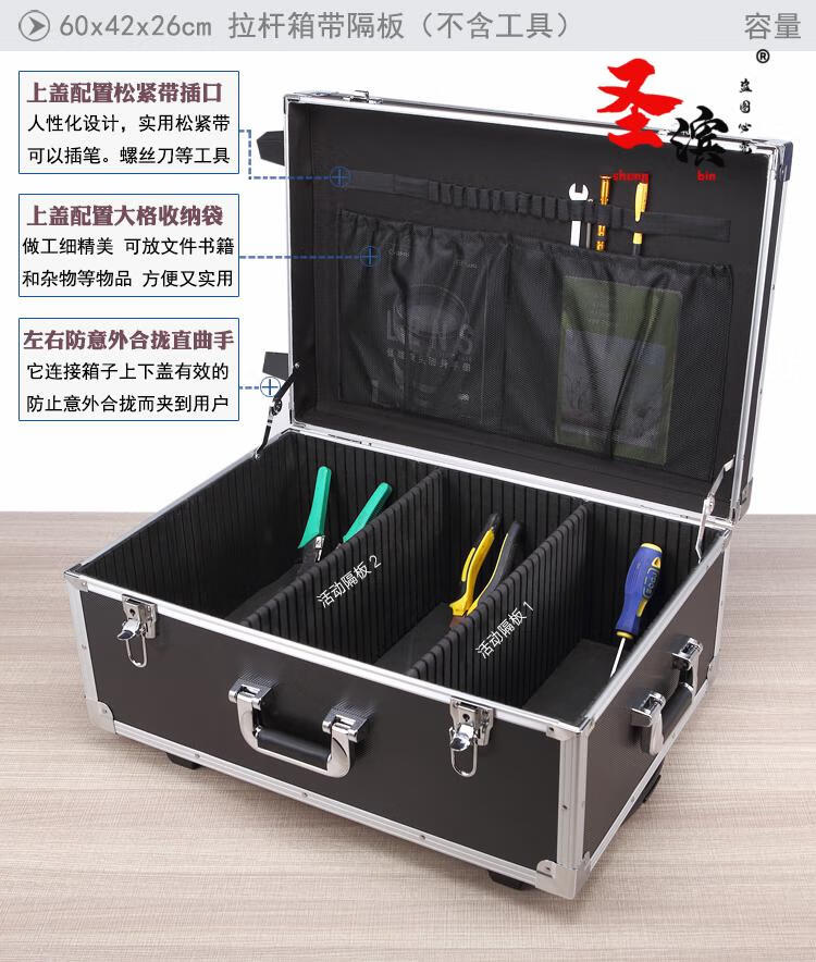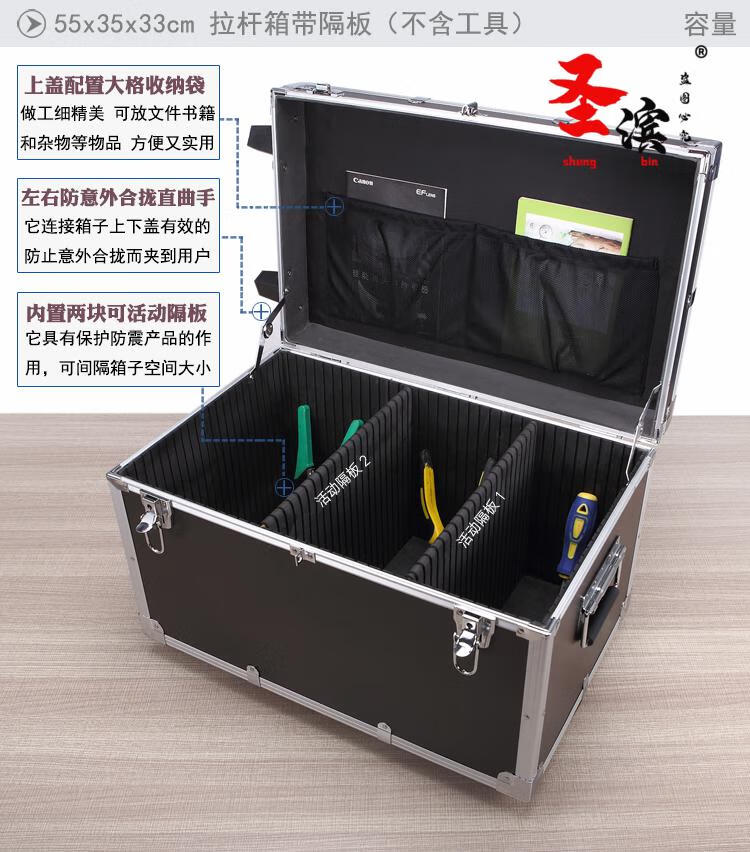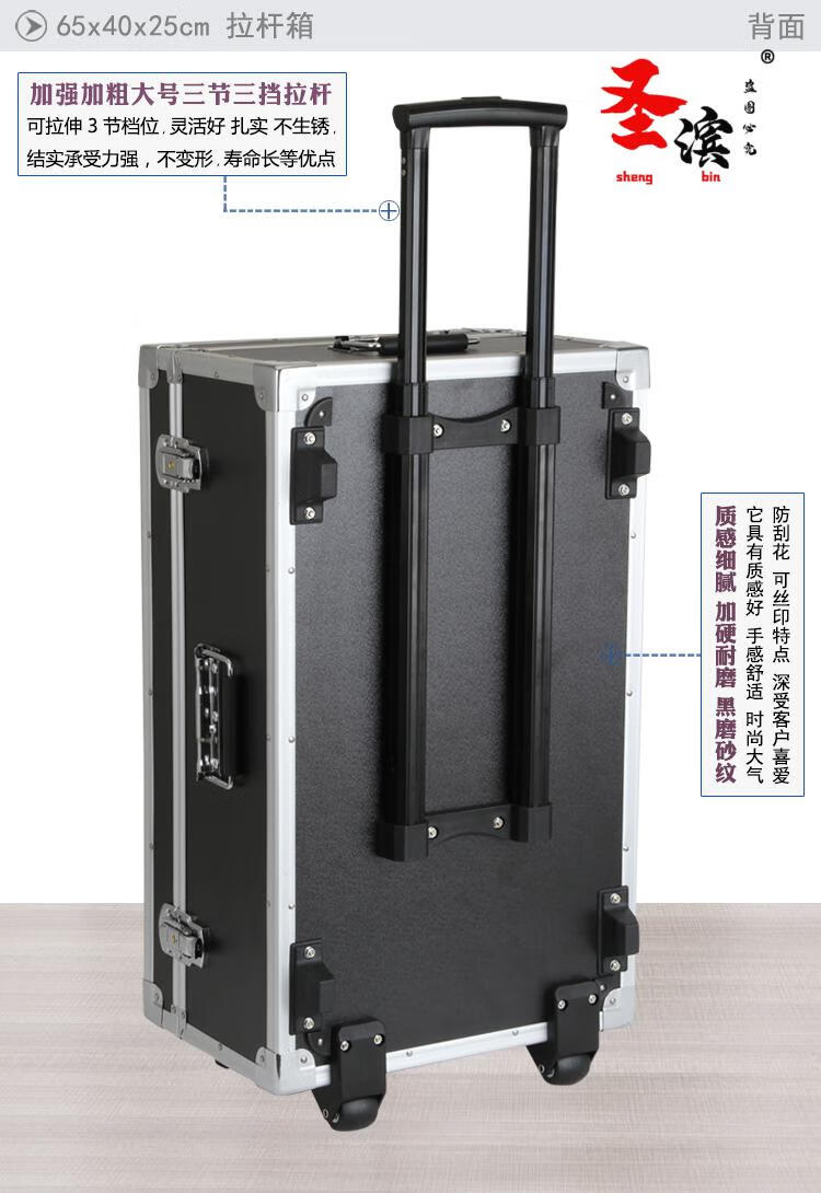 Aoyanlai wheeled aluminum alloy tool box flight case large multi-functional trolley case hardware equipment instrument transport aluminum box 65x40x25 black trolley case with partitions filled with cotton