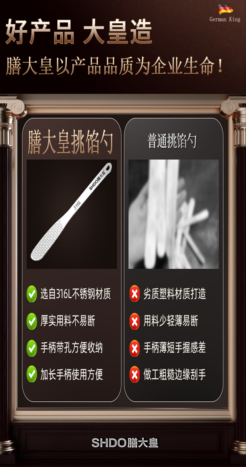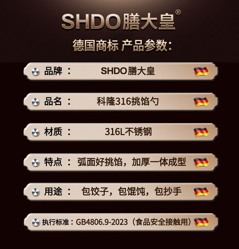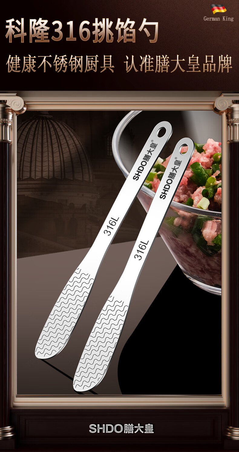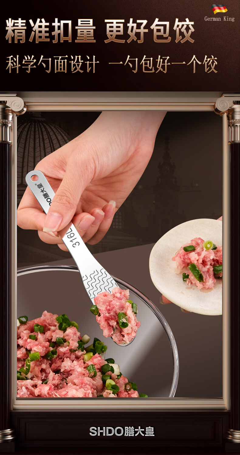 Shandahuang (SHDO) German Shandahuang 316 stainless steel dumpling filling spoon for making wontons, Cologne 316 filling spoon 2 pieces 16*2.3cm