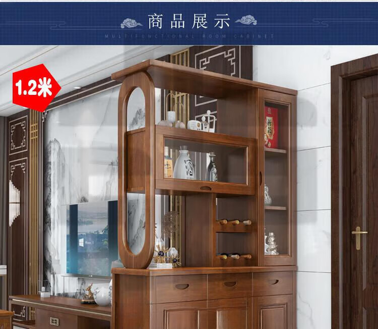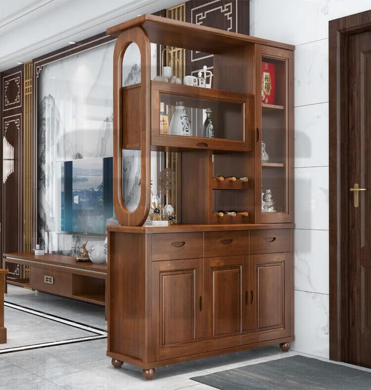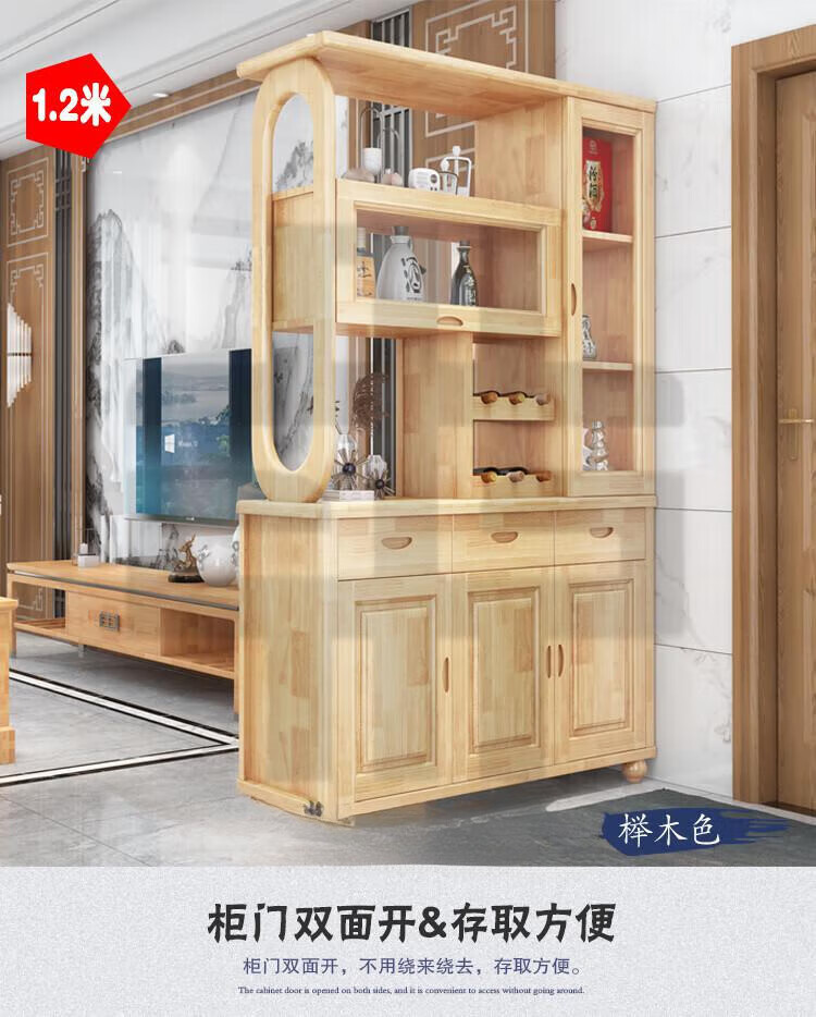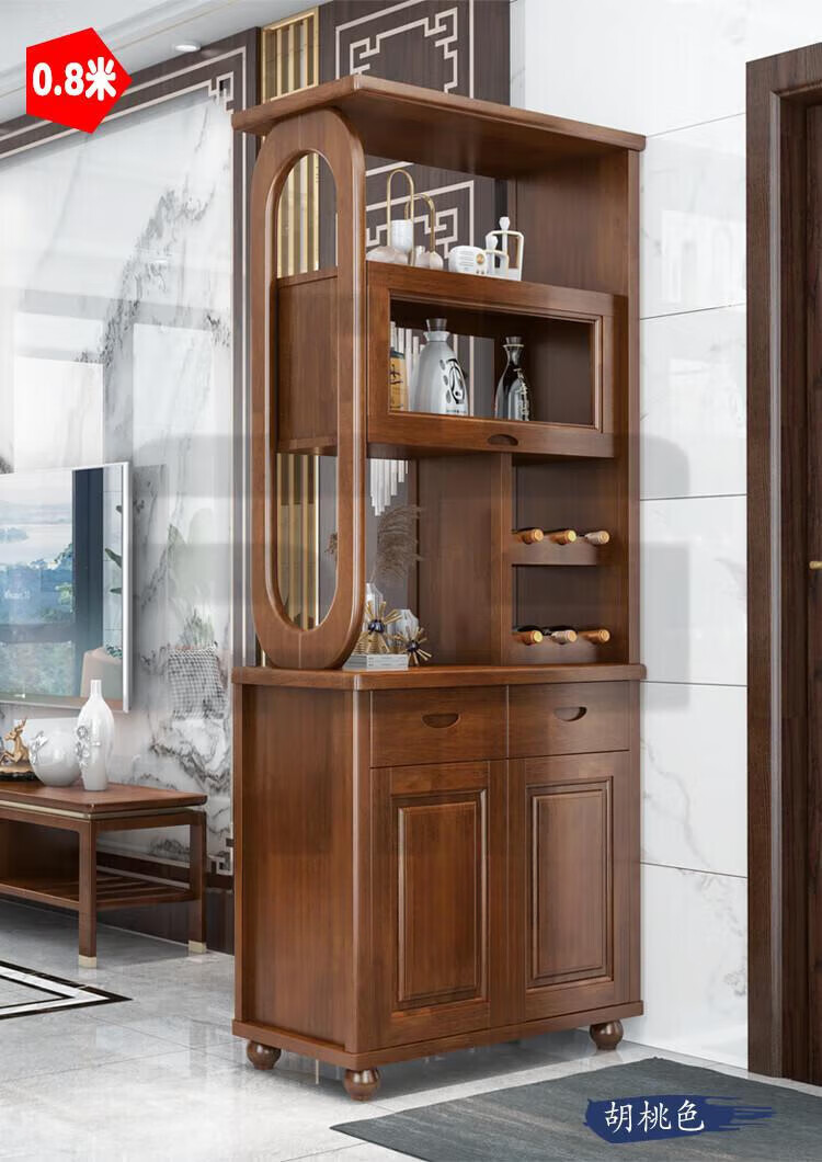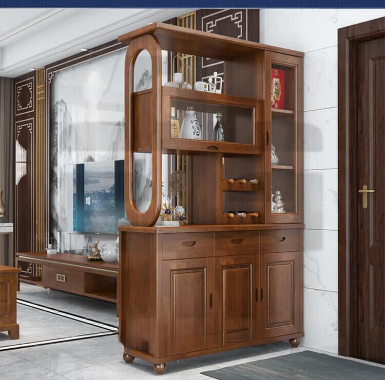 Mu Zhengmei new Chinese style shoe cabinet multi-functional living room partition cabinet entrance double-sided solid wood wine cabinet wall storage home wine rack 1.6 beech color