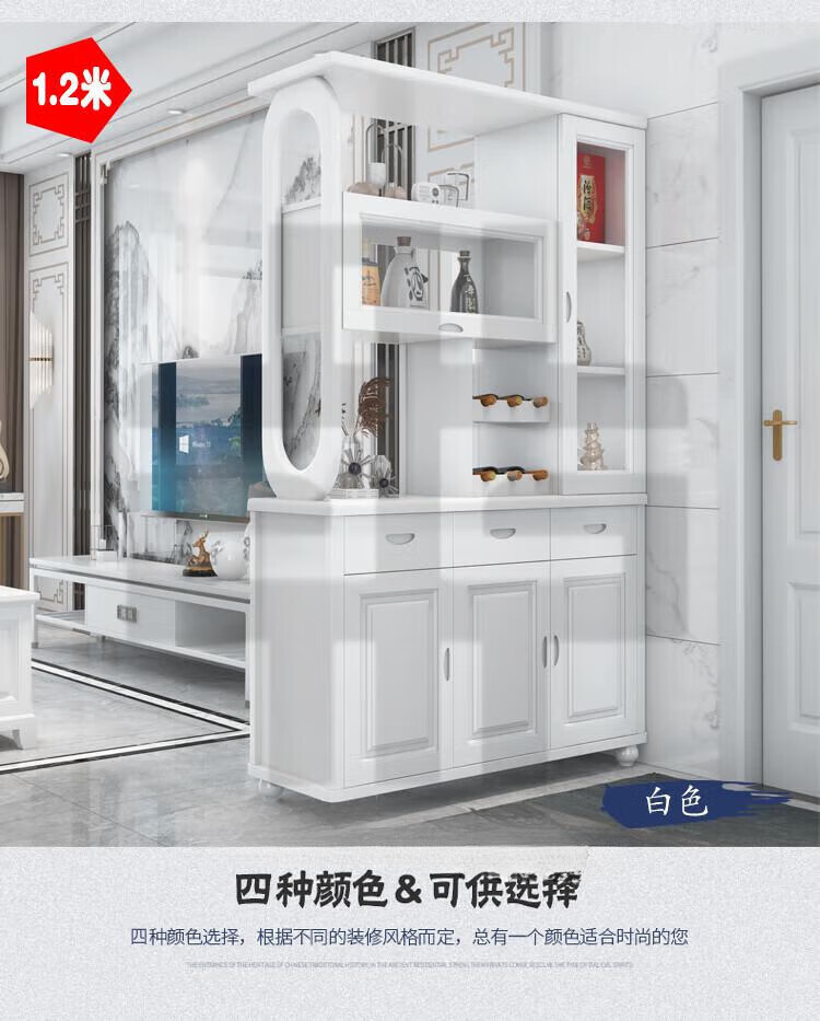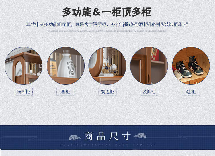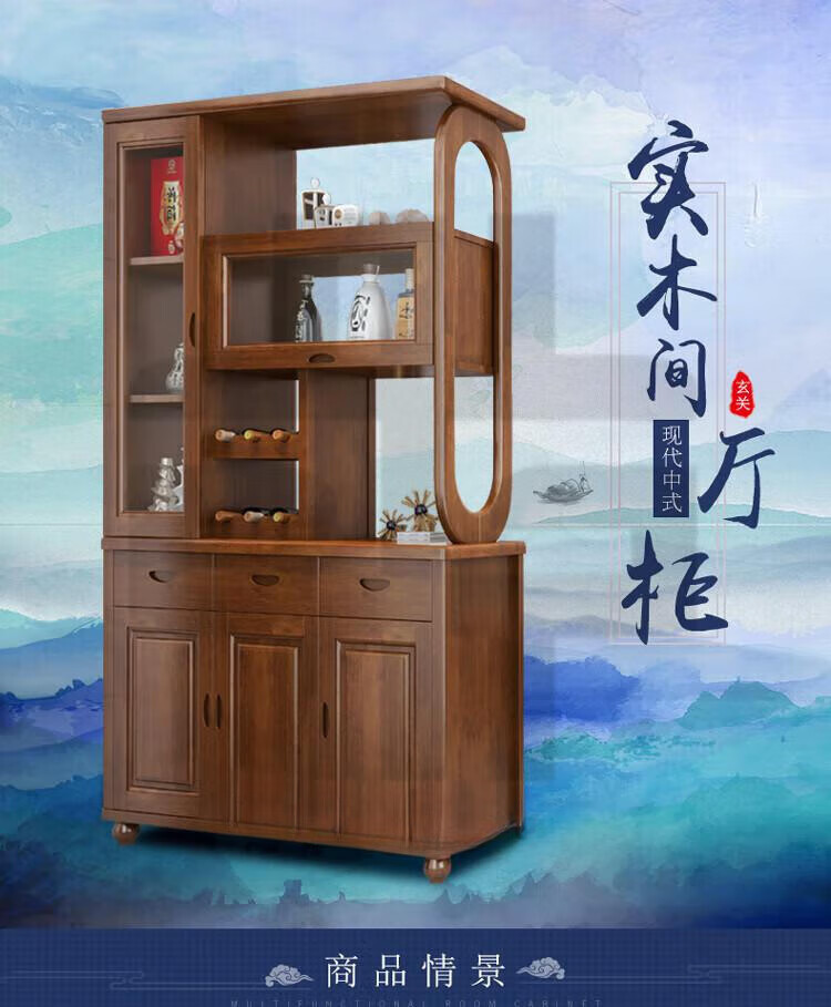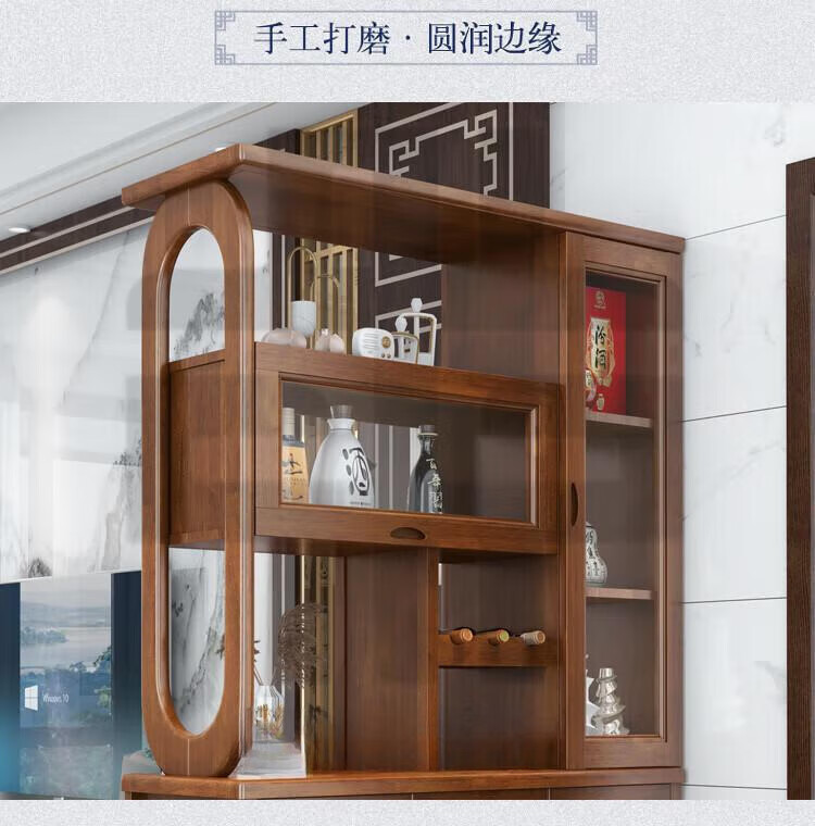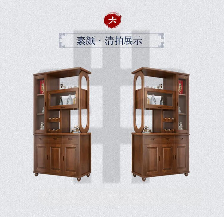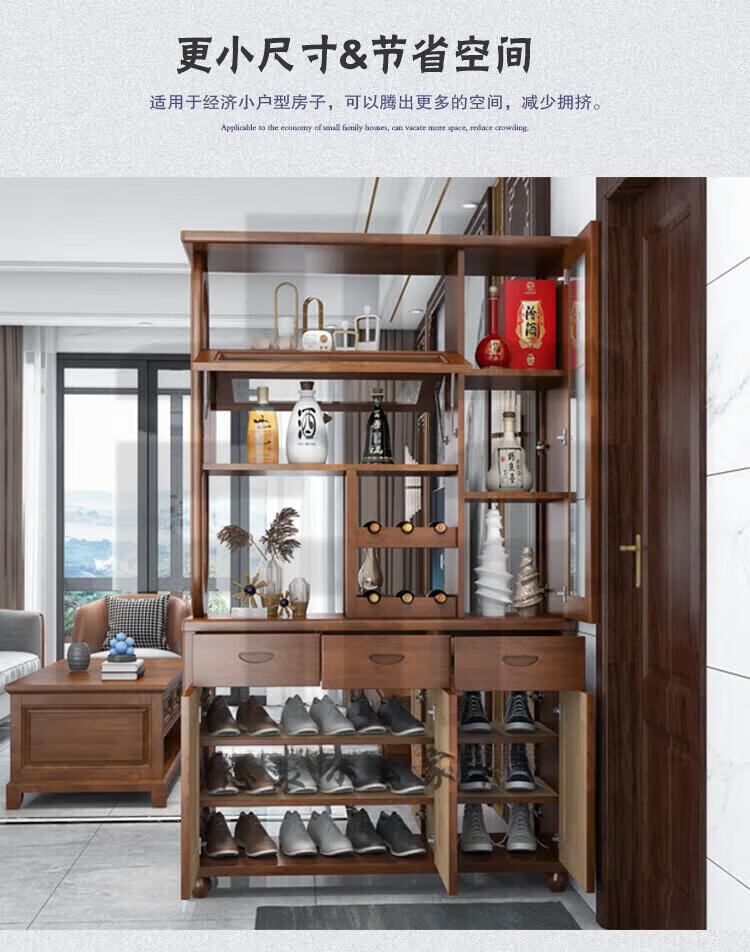 Mu Zhengmei new Chinese style shoe cabinet multi-functional living room partition cabinet entrance double-sided solid wood wine cabinet wall storage home wine rack 1.6 beech color