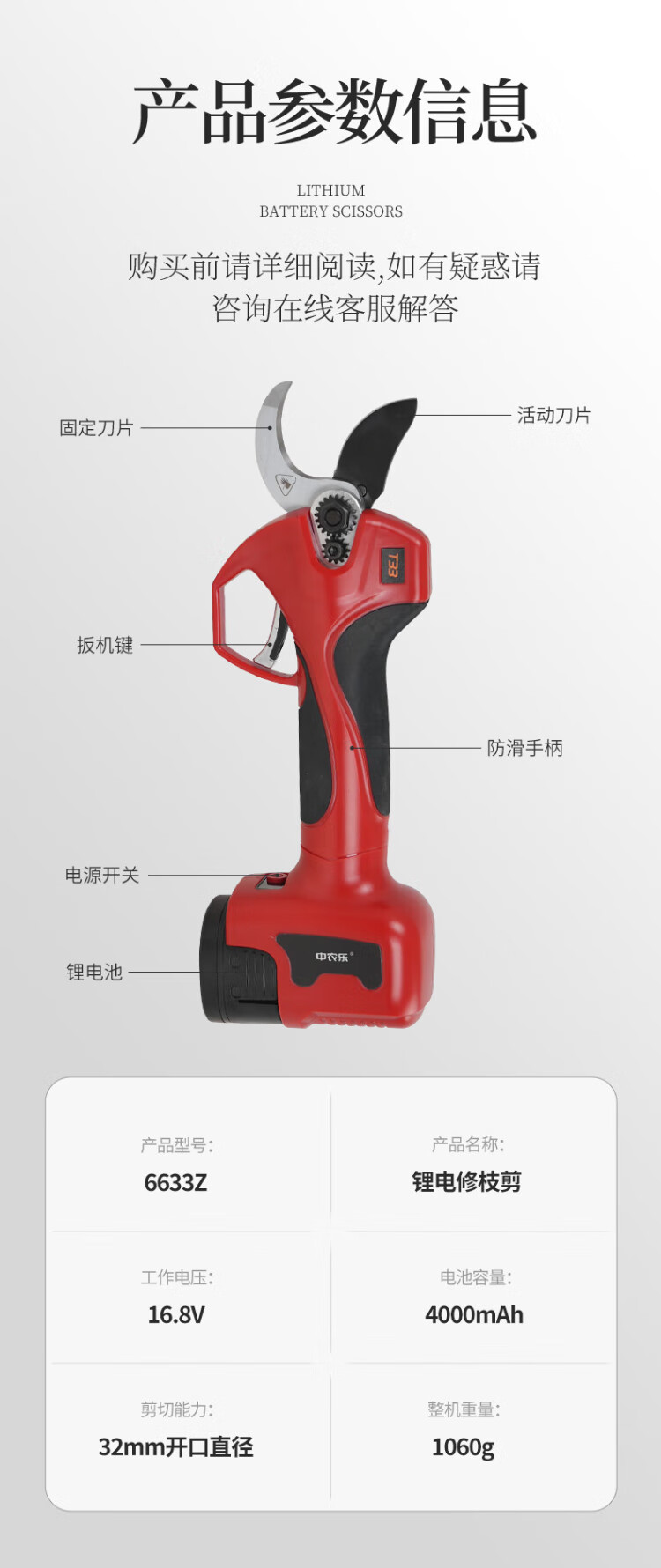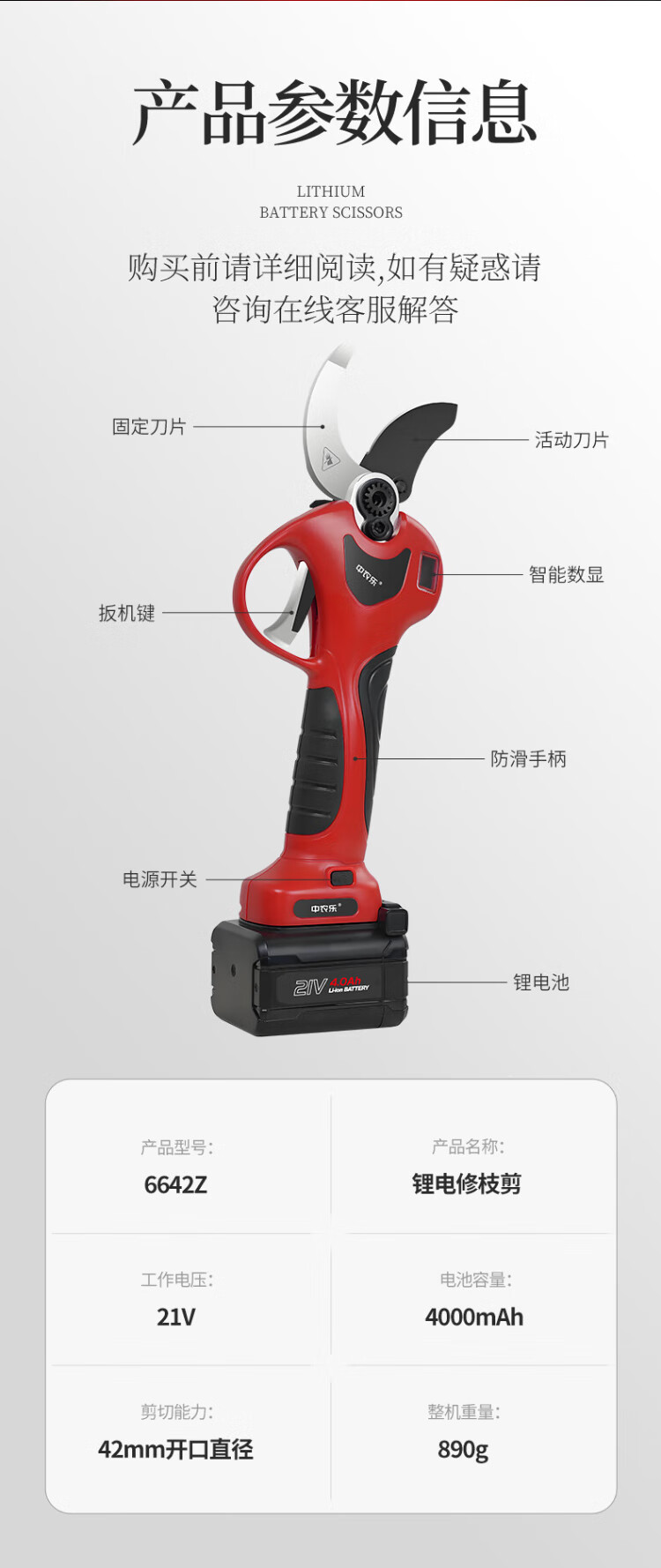 Zhongnongle electric scissors for branch pruning, high-power pruning shears, electric fruit tree pruning shears, Nakamura Ichiro quality electric scissors, Zhongnongle 6642Z-two electric 4000 mAh