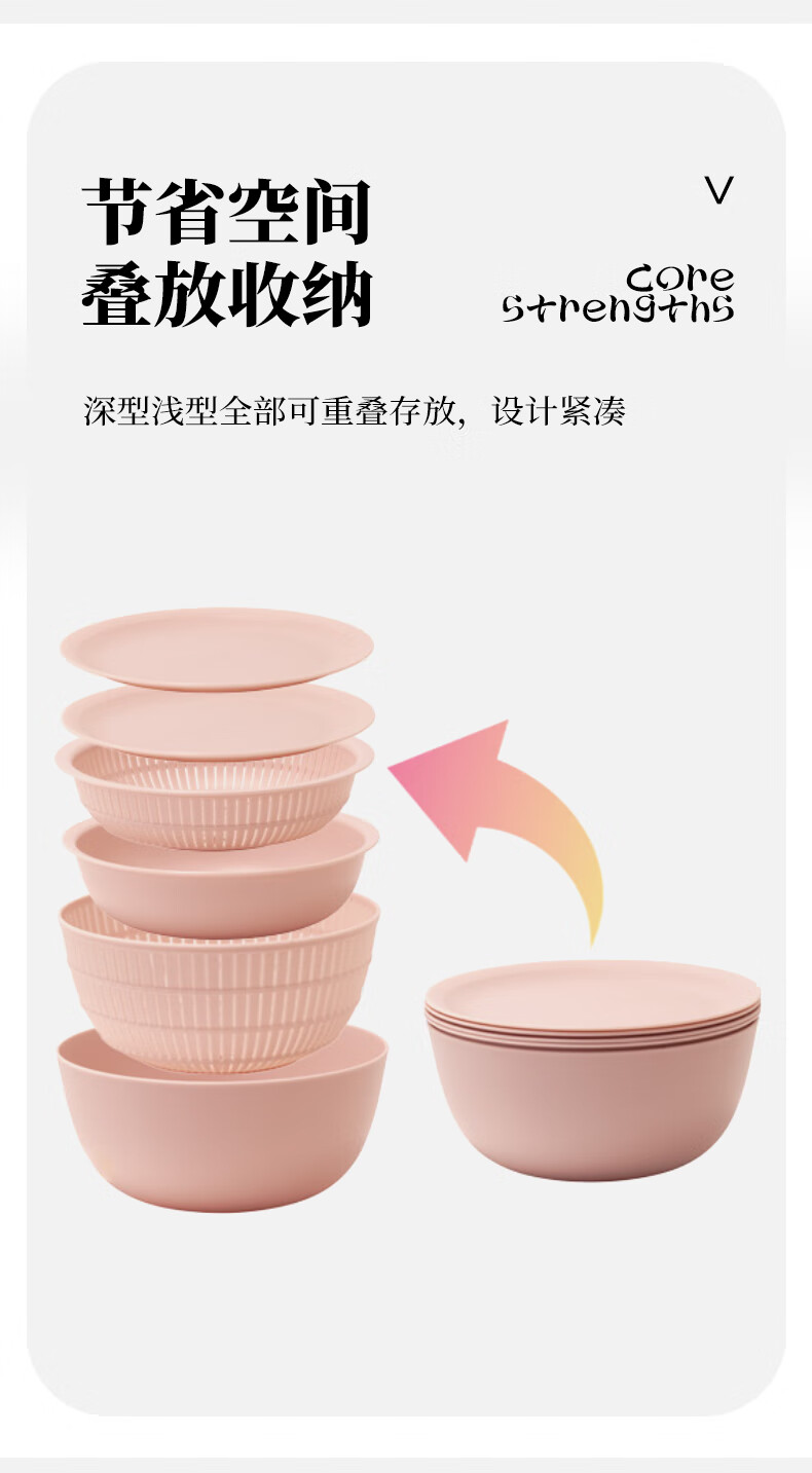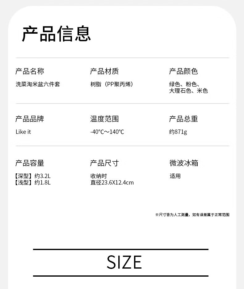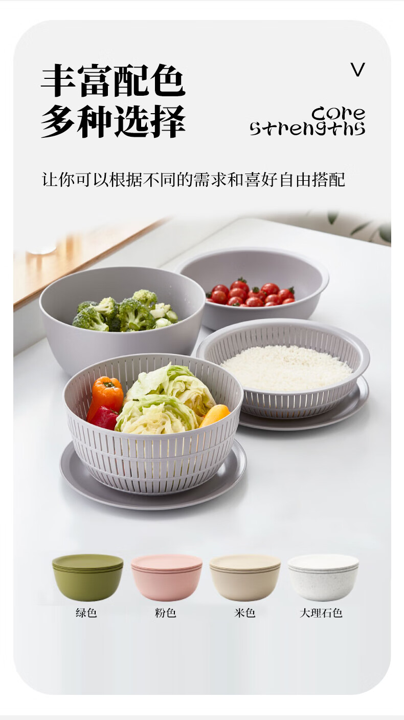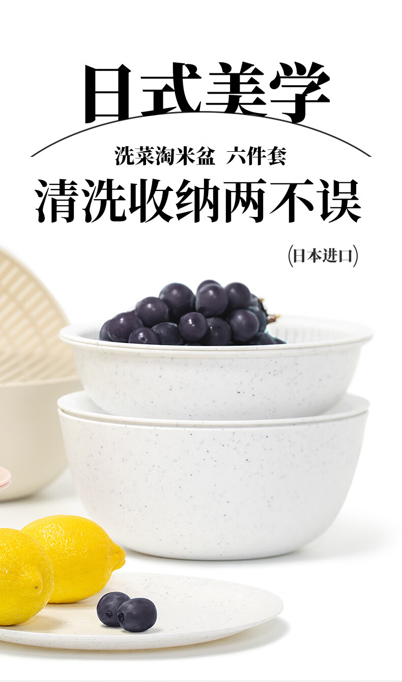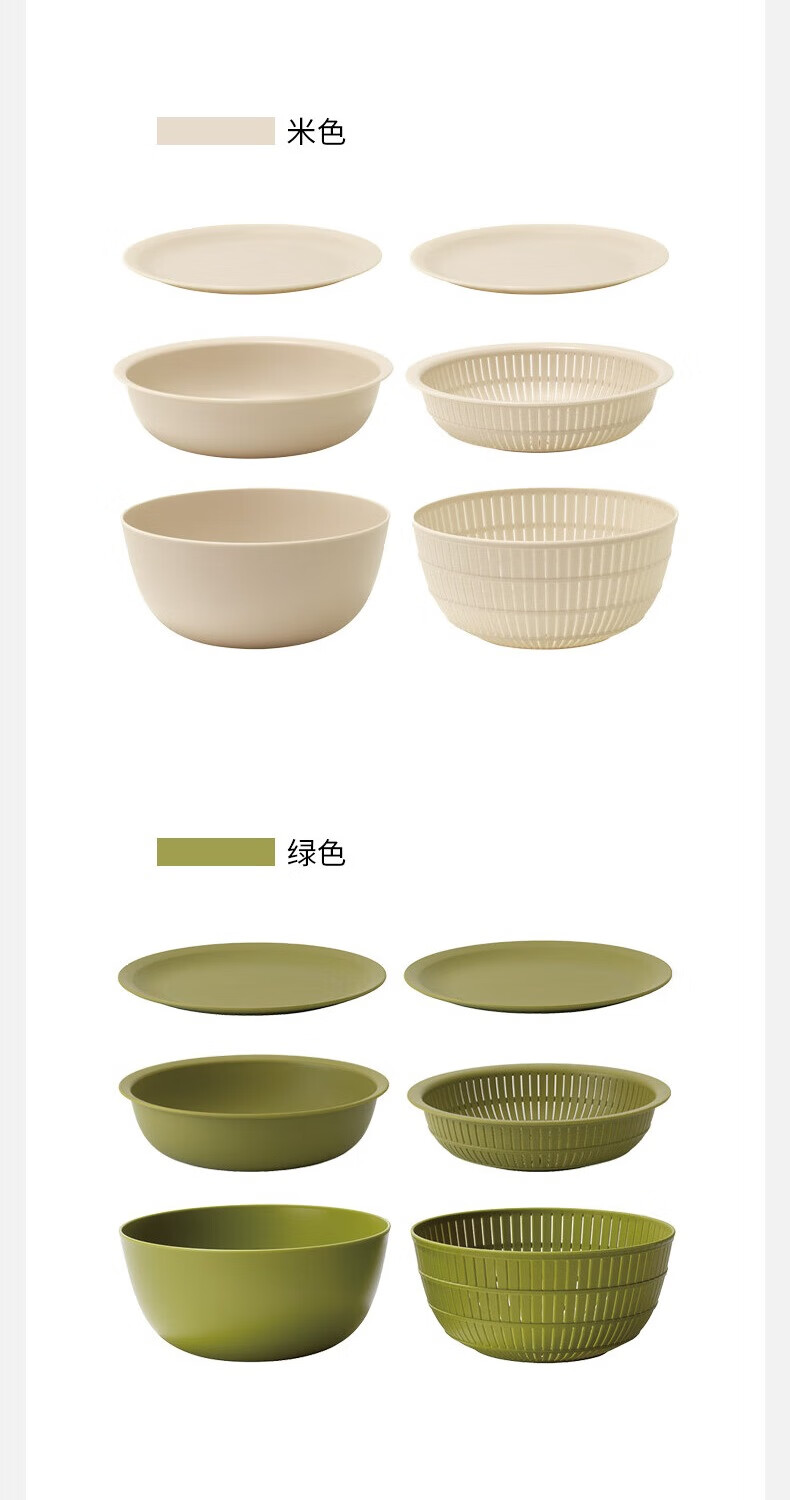 LIKE IT Japan imported rice drain basket kitchen sink multi-functional double-layer fruit basin 6-piece set green 6-piece set