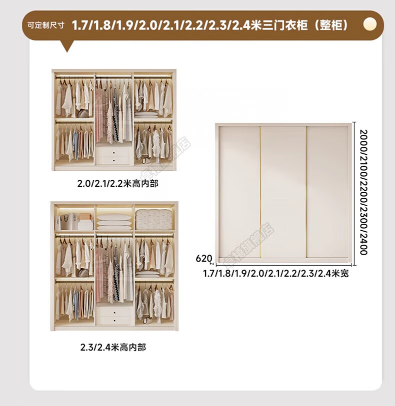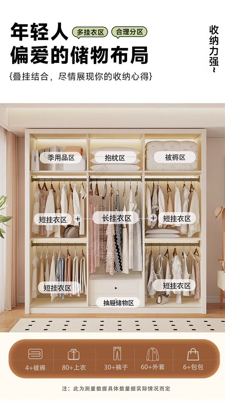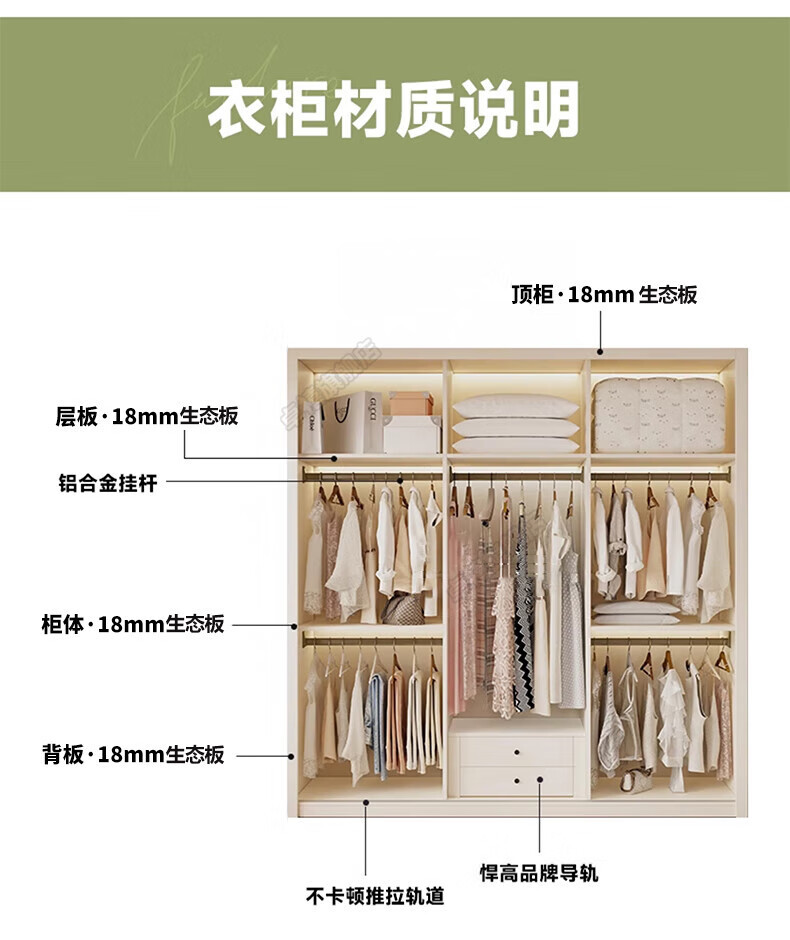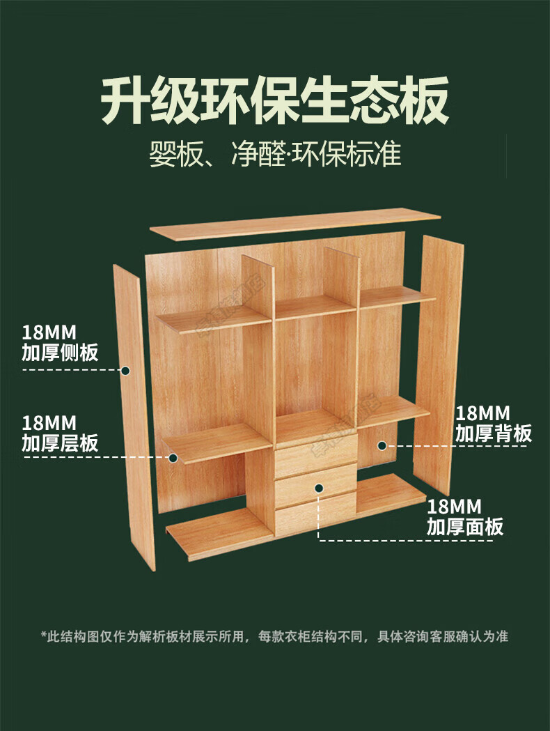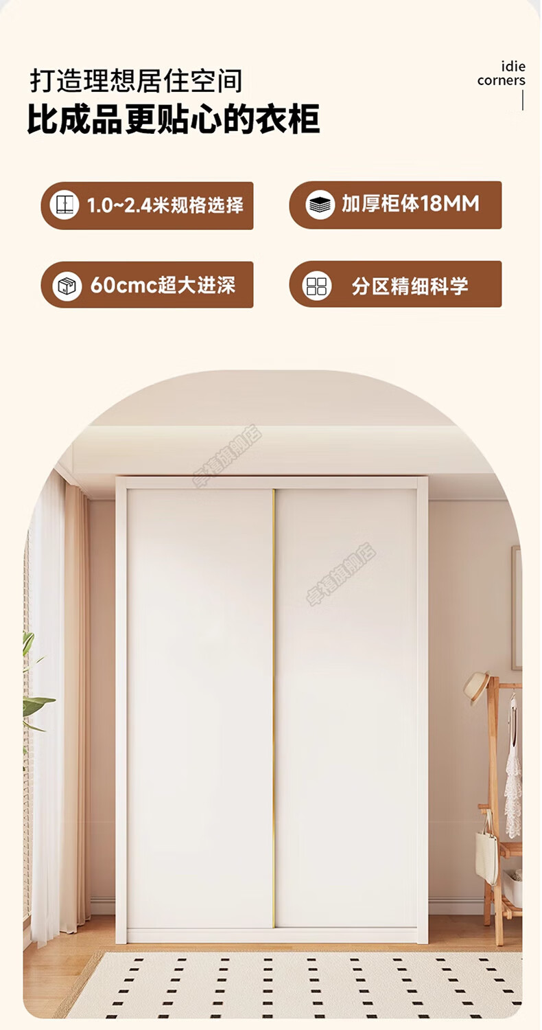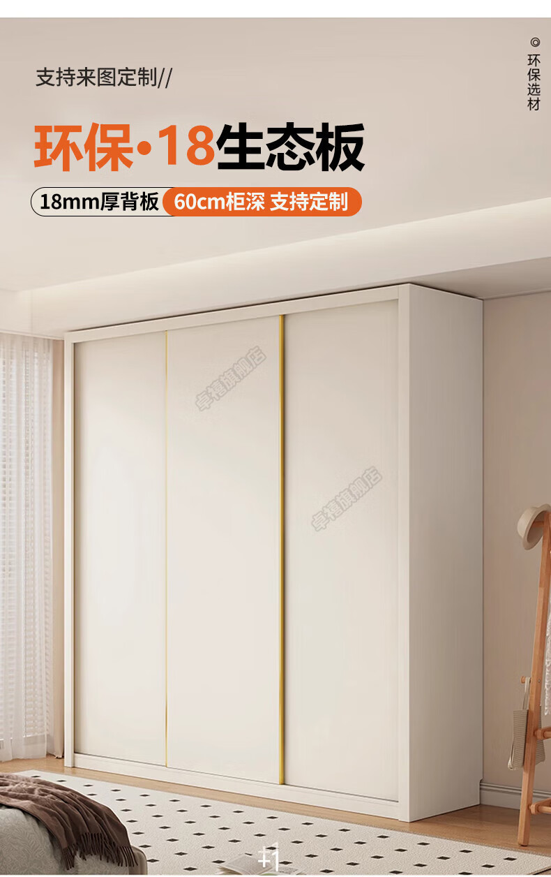 Zhuoxi ENF grade custom solid wood wardrobe bedroom household sliding door small apartment thickened storage cabinet 1.8 meters * 2.4 meters high ENF grade - whole cabinet 18MM