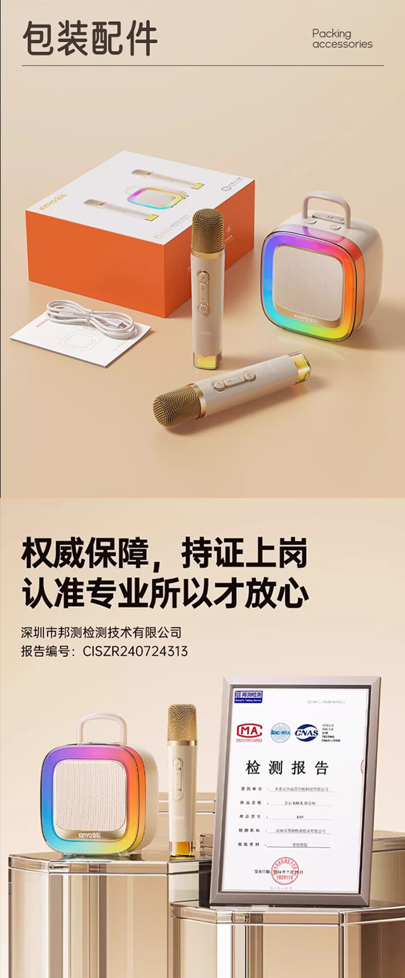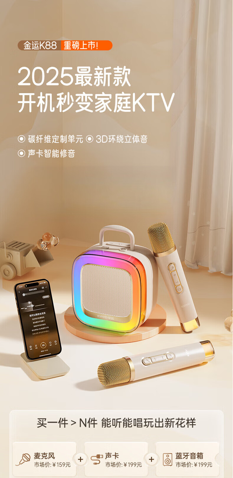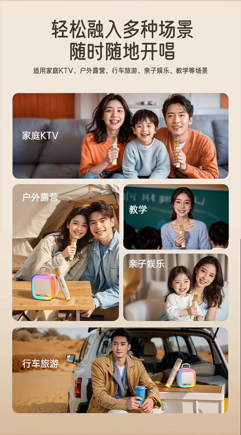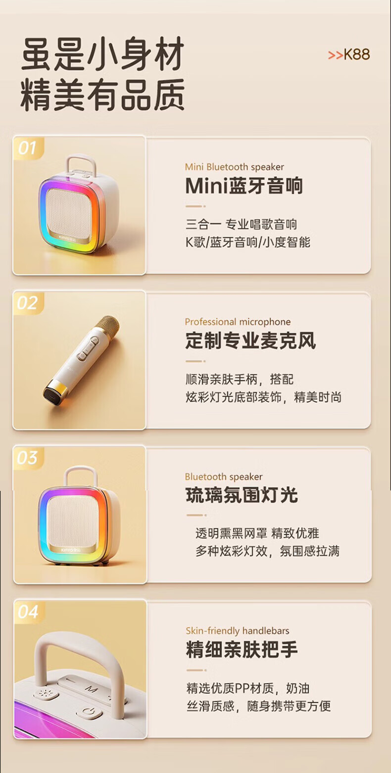 Xiaomi Buyi's new karaoke microphone audio integrated Bluetooth wireless microphone singing artifact home ktv set portable outdoor mini smart speaker off-white with ambient light dual wheat version