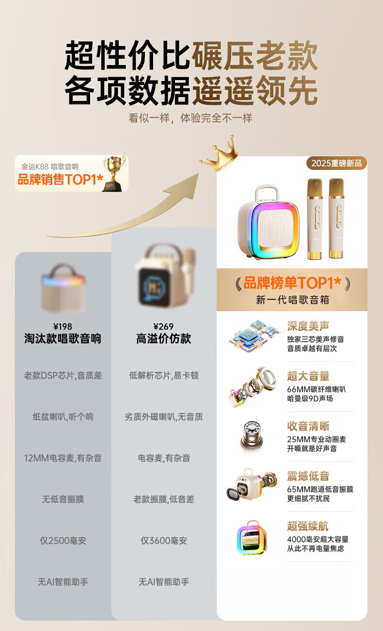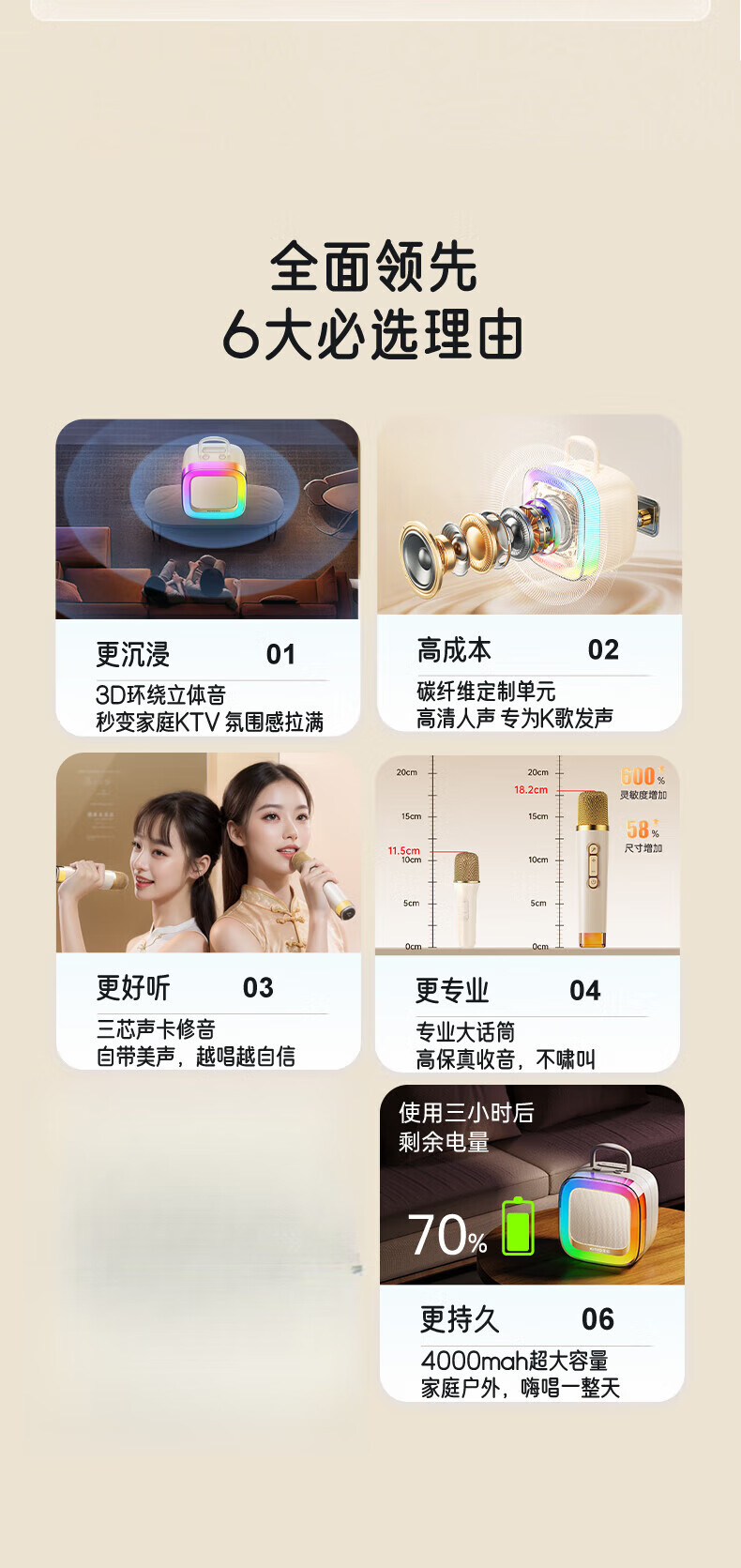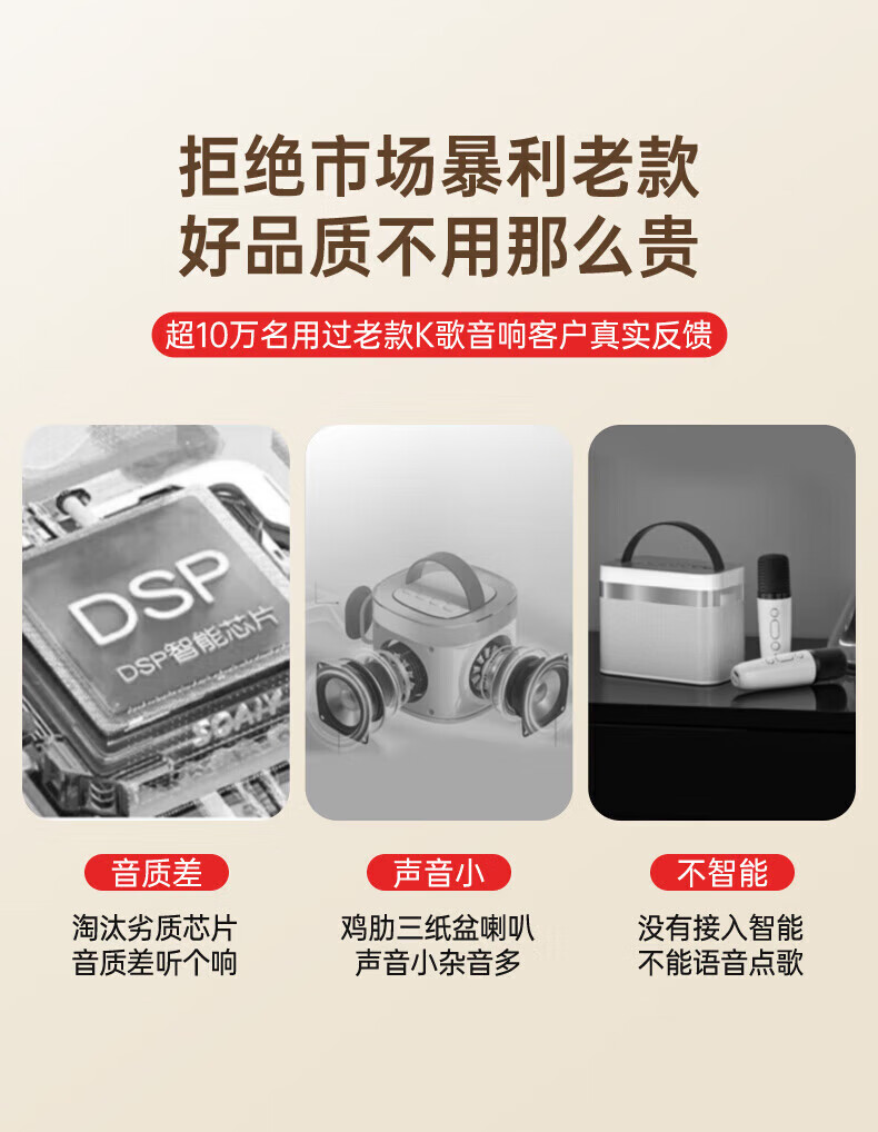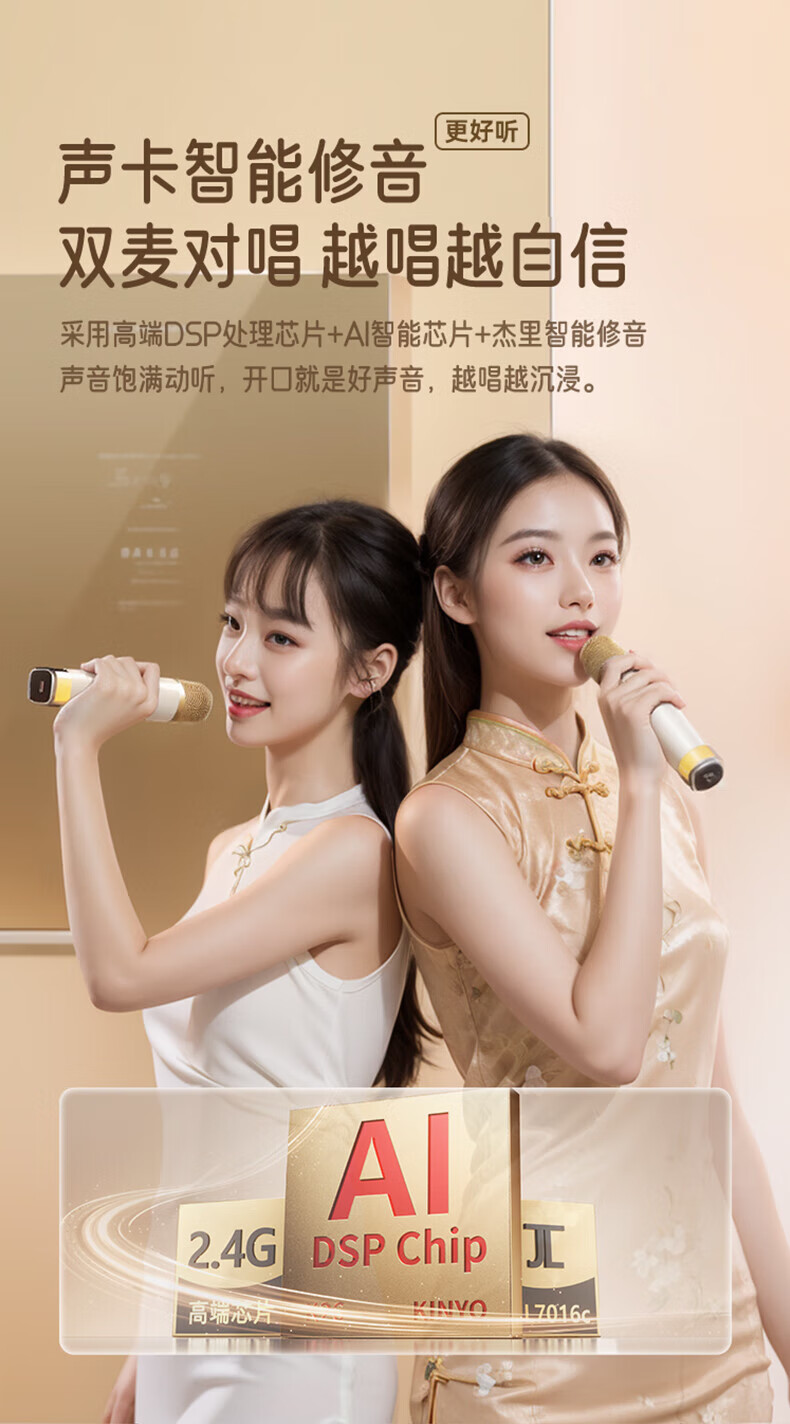 Xiaomi Buyi's new karaoke microphone audio integrated Bluetooth wireless microphone singing artifact home ktv set portable outdoor mini smart speaker off-white with ambient light dual wheat version