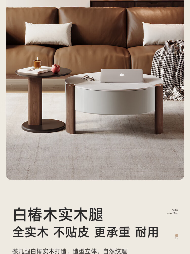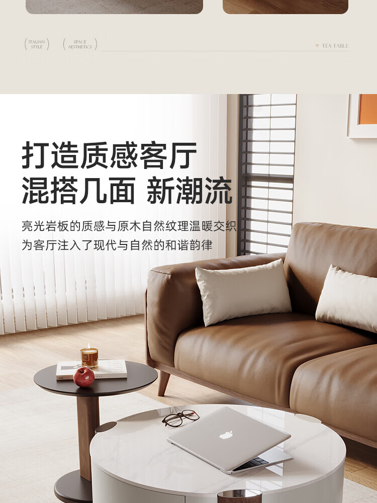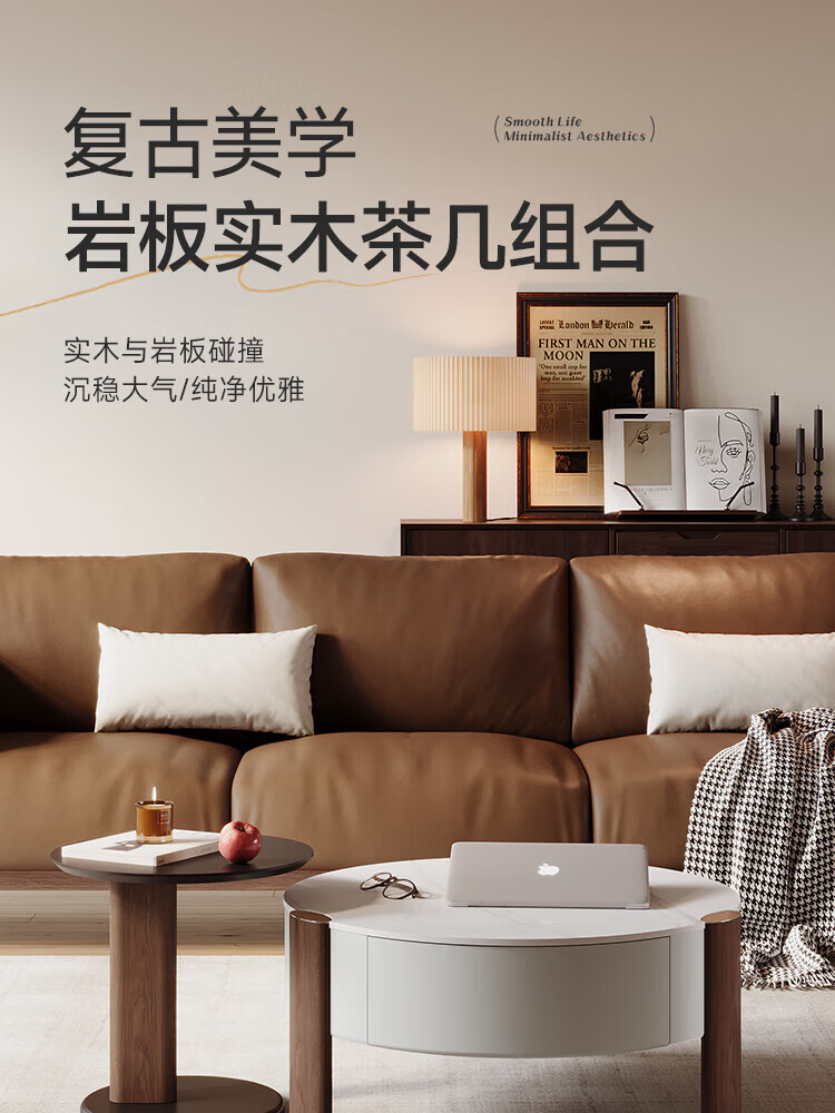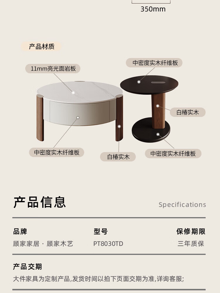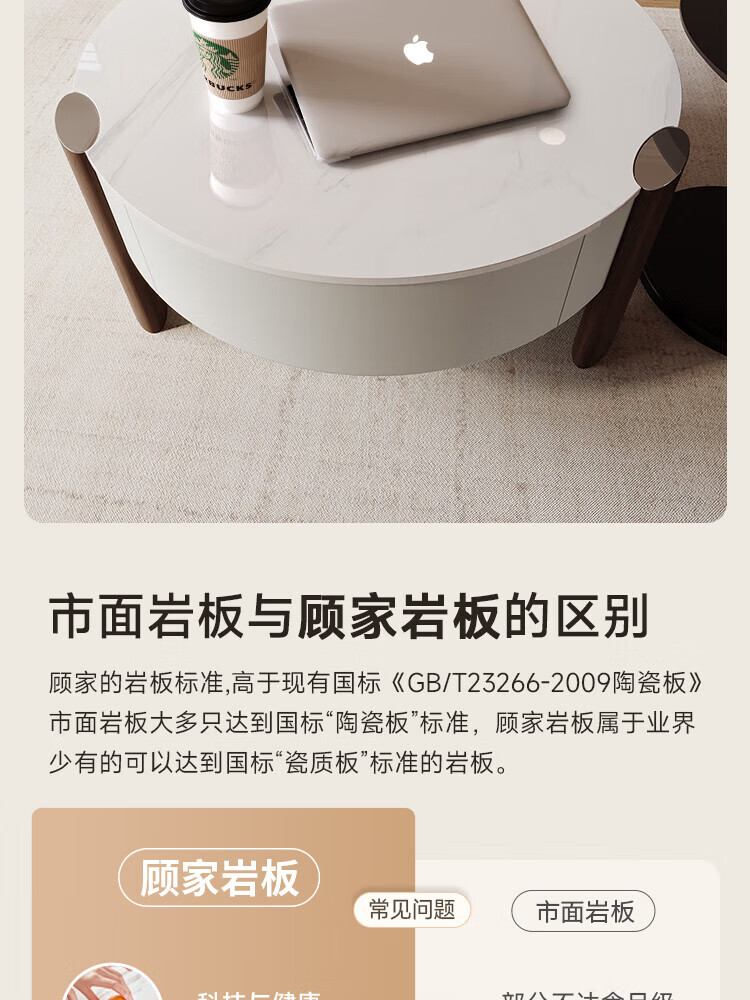 Gujia Wood Art Gujia Home Furnishing KUKA store same style Gujia Wood Art Nordic glossy slate combination round coffee table PT8030TD/PT8030TB combination coffee table round