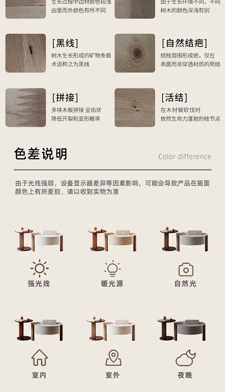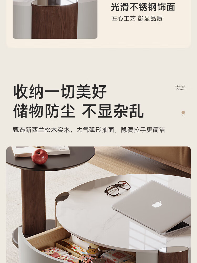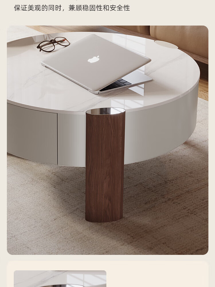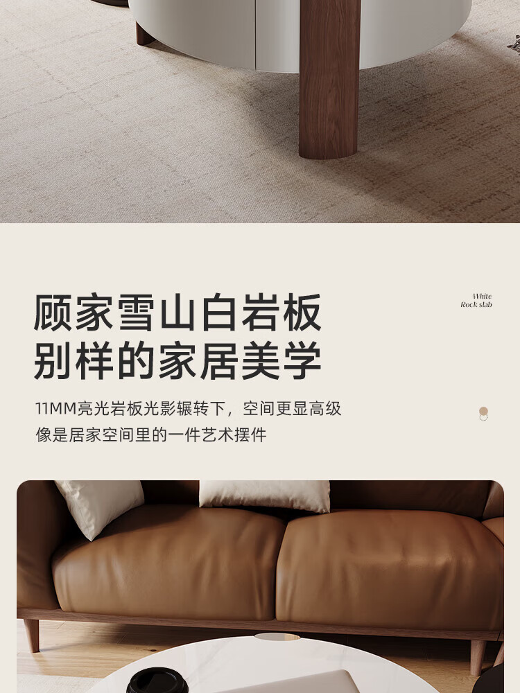 Gujia Wood Art Gujia Home Furnishing KUKA store same style Gujia Wood Art Nordic glossy slate combination round coffee table PT8030TD/PT8030TB combination coffee table round