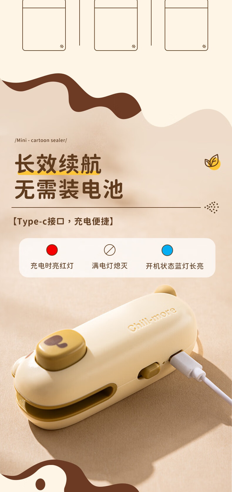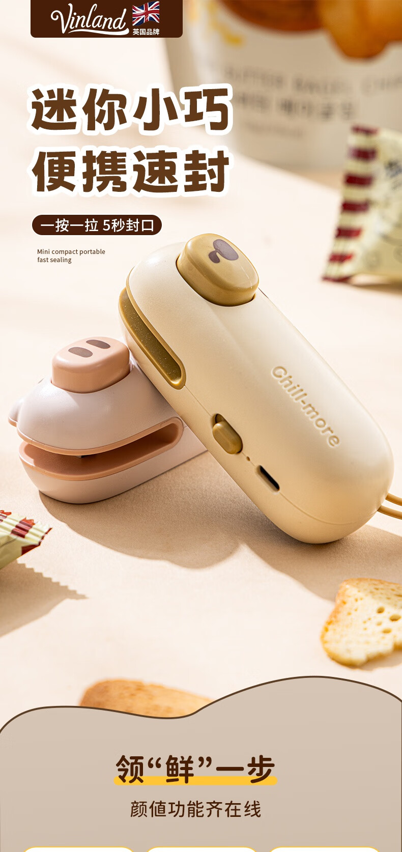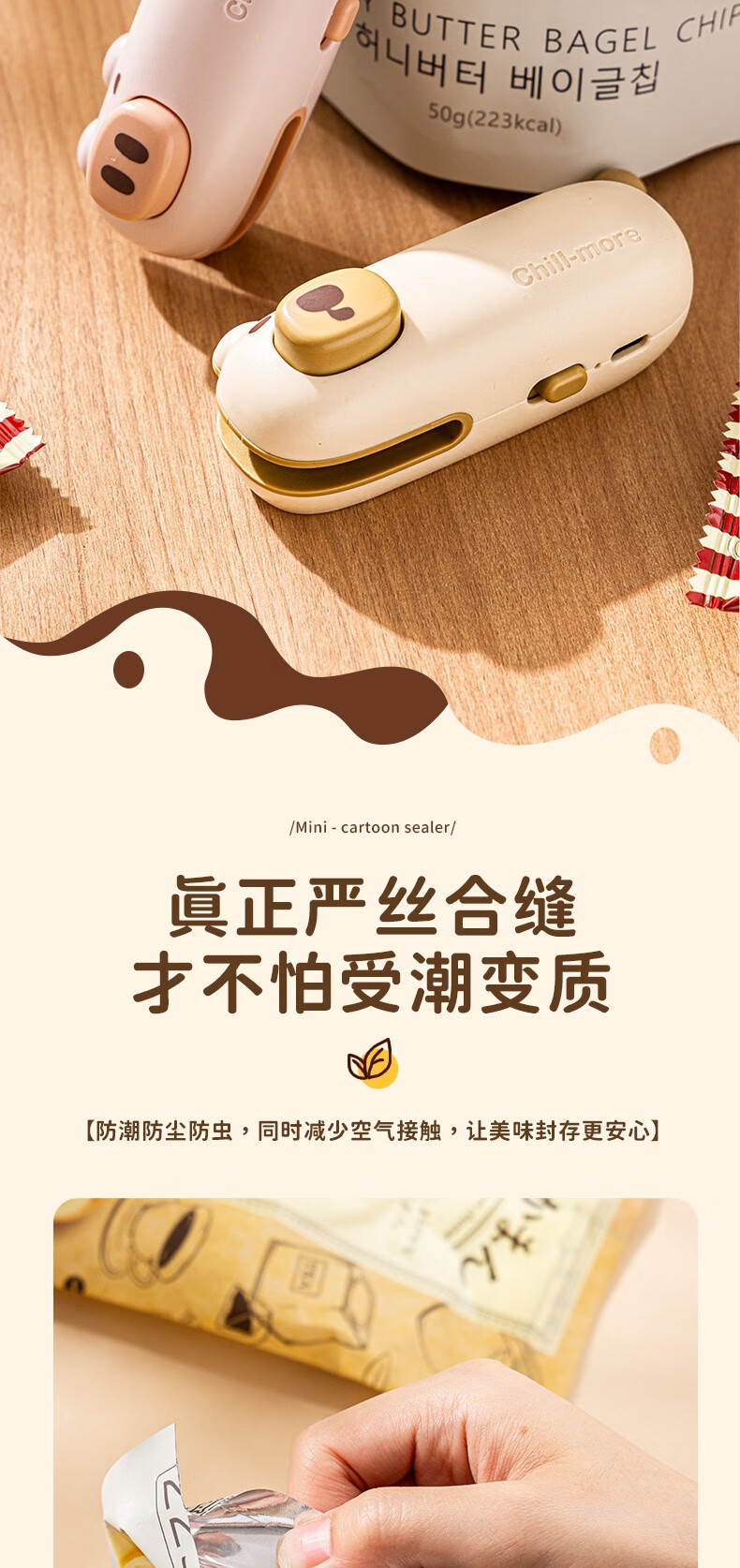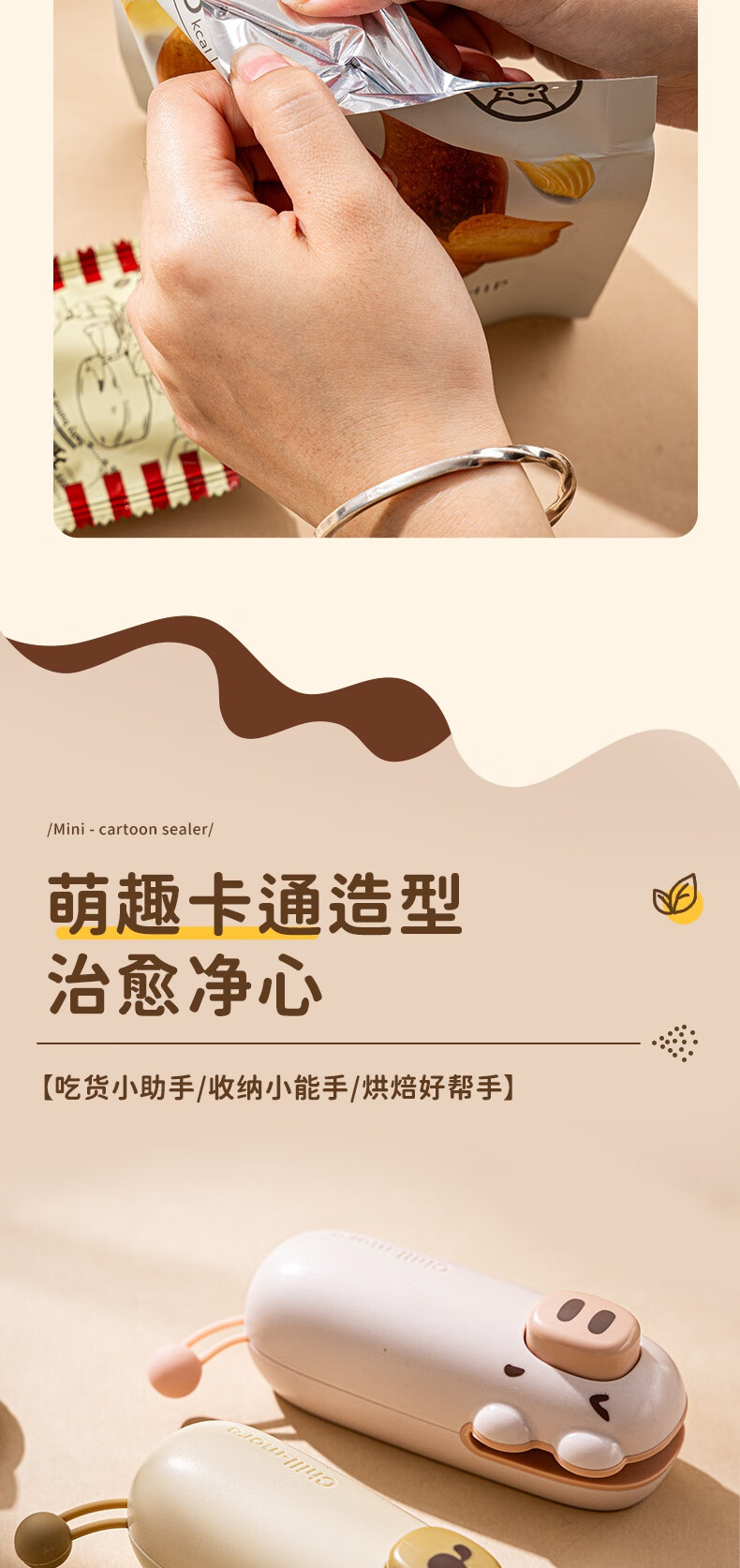 Jingxing vacuum sealing machine household sealing machine small mini household snack plastic bag rechargeable plastic sealer food vacuum heat sealing 1 pack-Kakaxiong long battery life, free charging cable