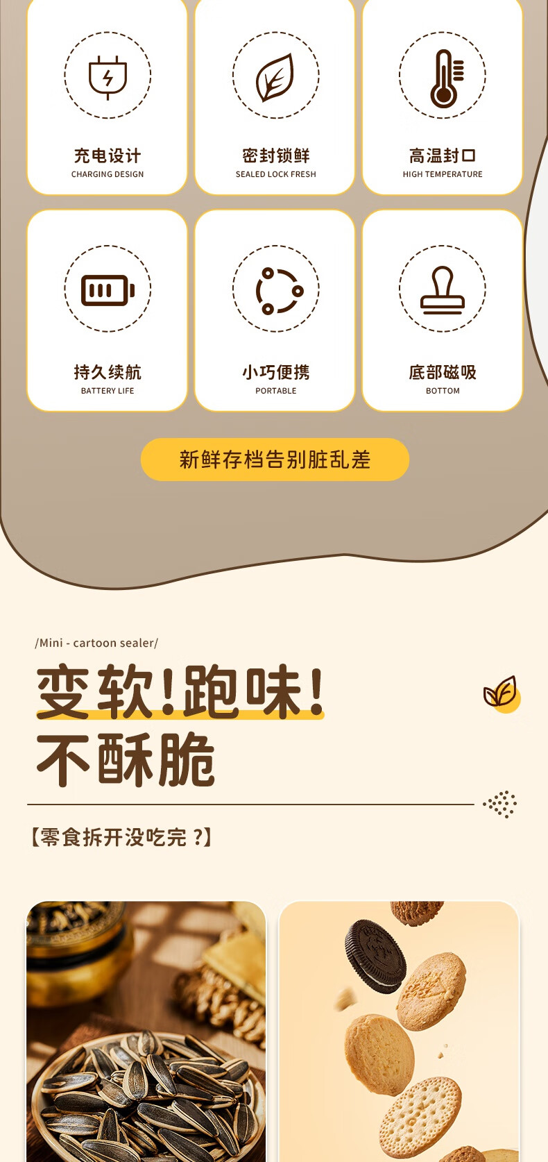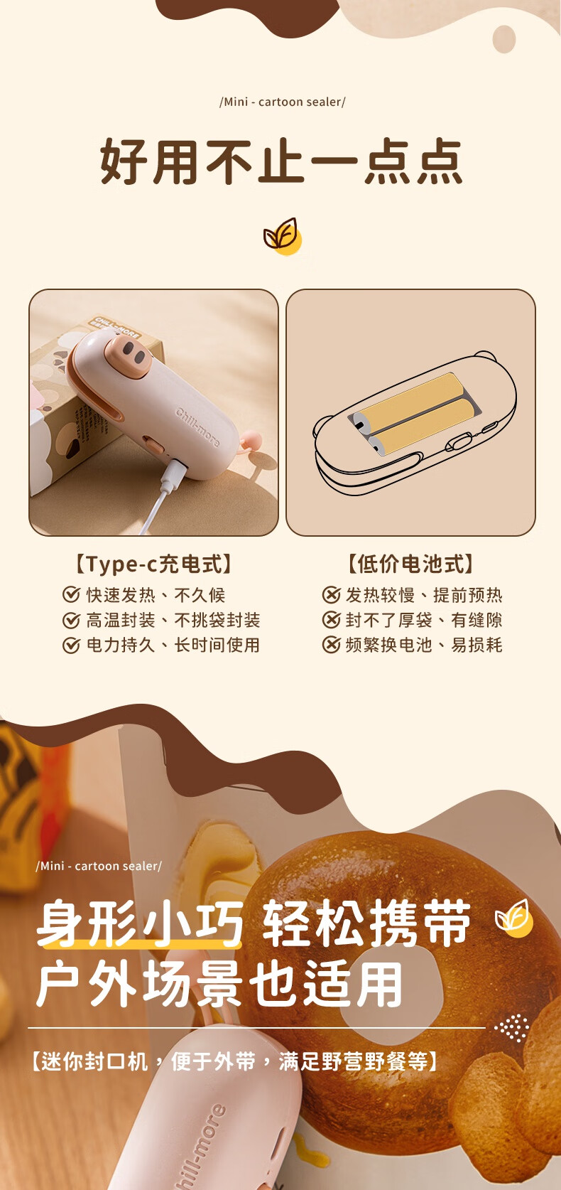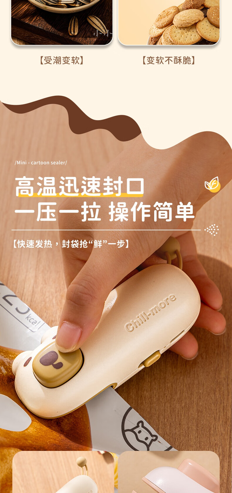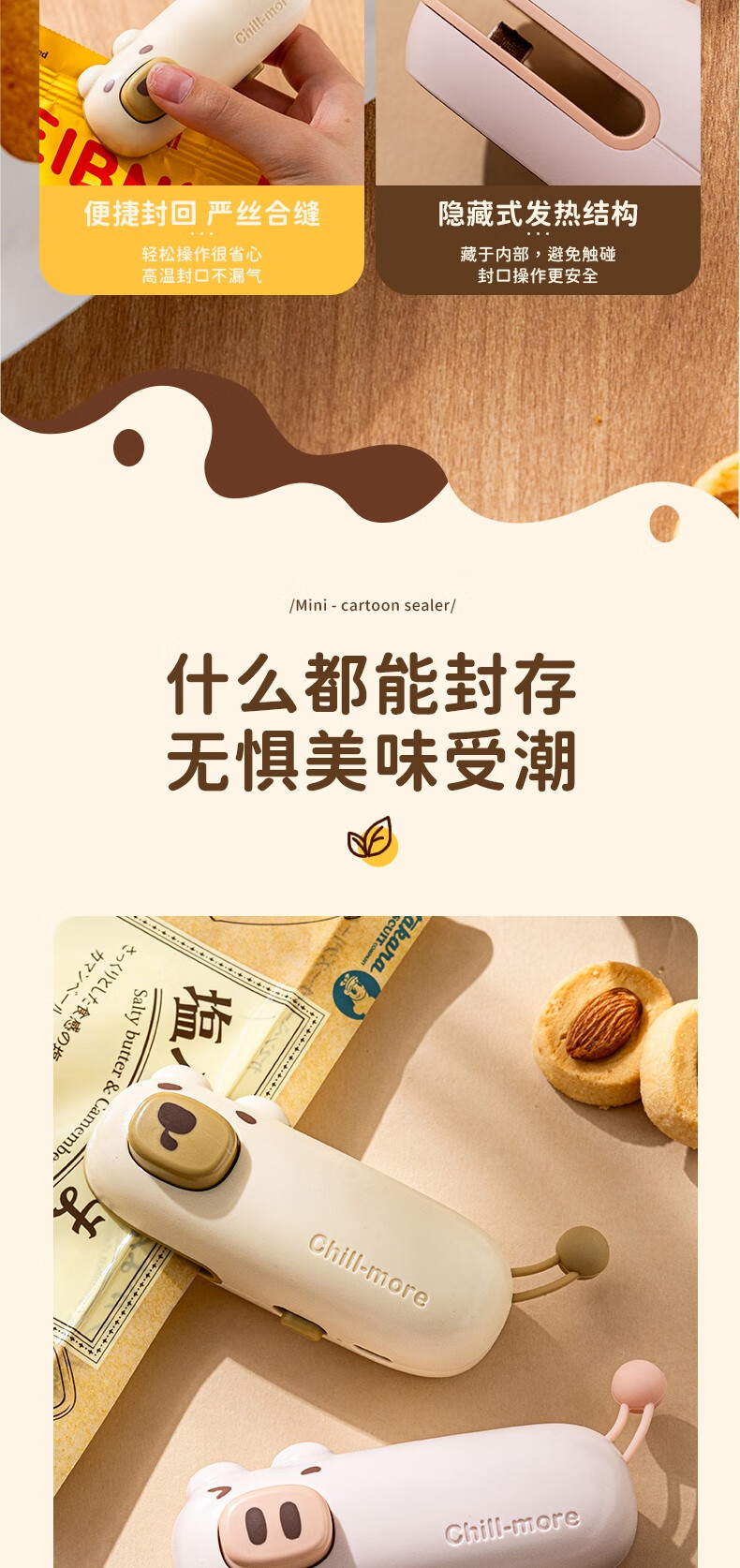 Jingxing vacuum sealing machine household sealing machine small mini household snack plastic bag rechargeable plastic sealer food vacuum heat sealing 1 pack-Kakaxiong long battery life, free charging cable