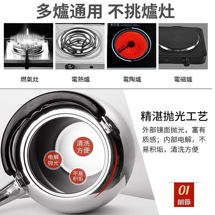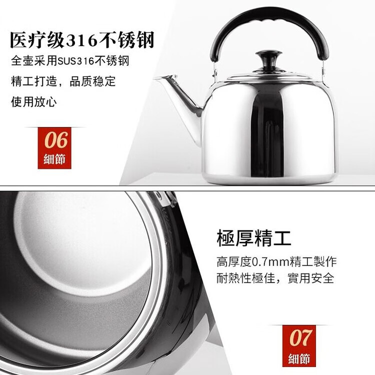 Oupinyuan 304/316 stainless steel thickened whistle large capacity kettle gas stove household kettle gas stove induction cooker 304 extra thick 3L 1ml 3L-7L