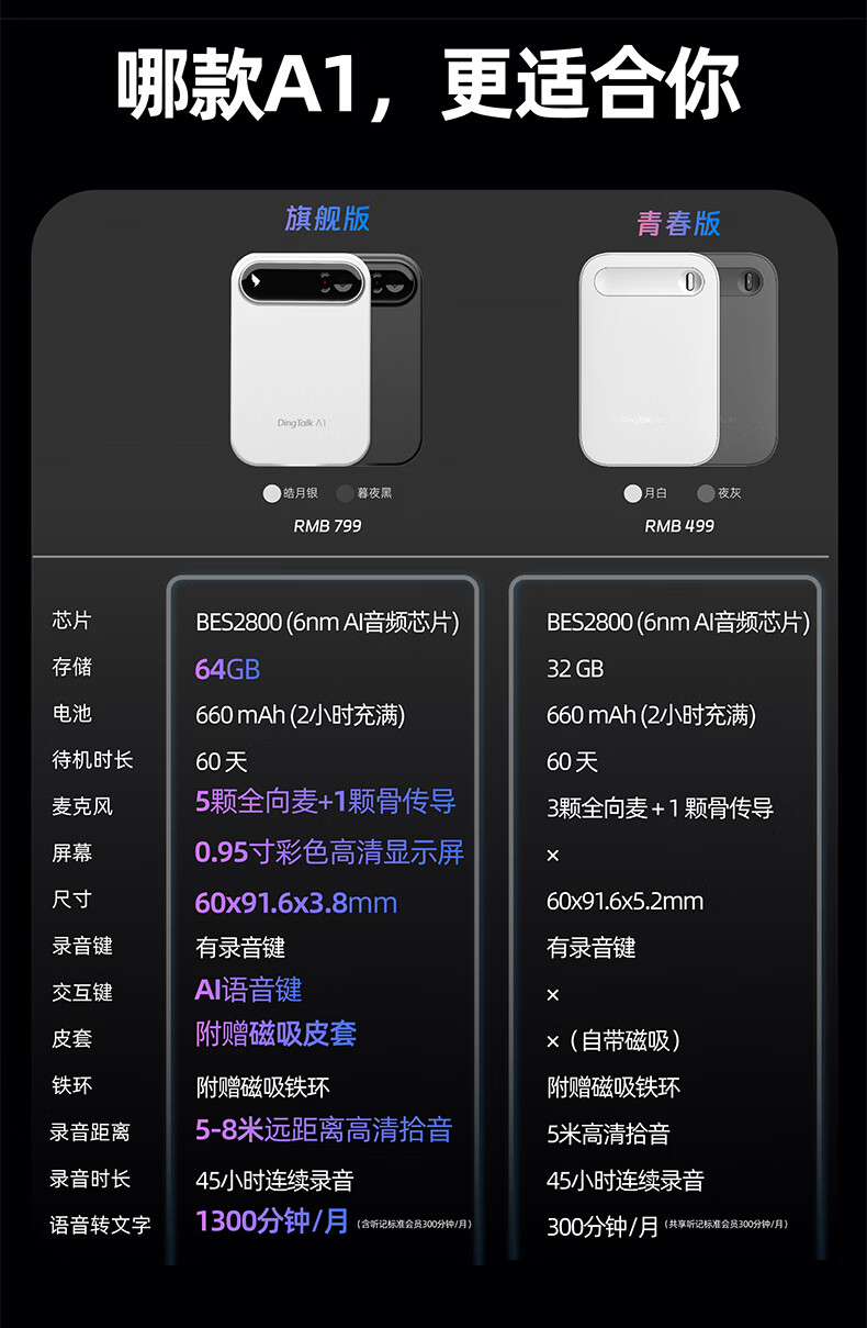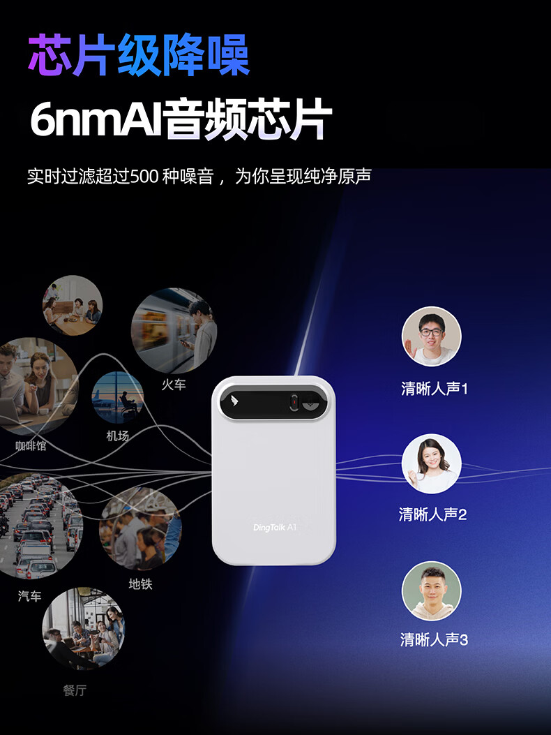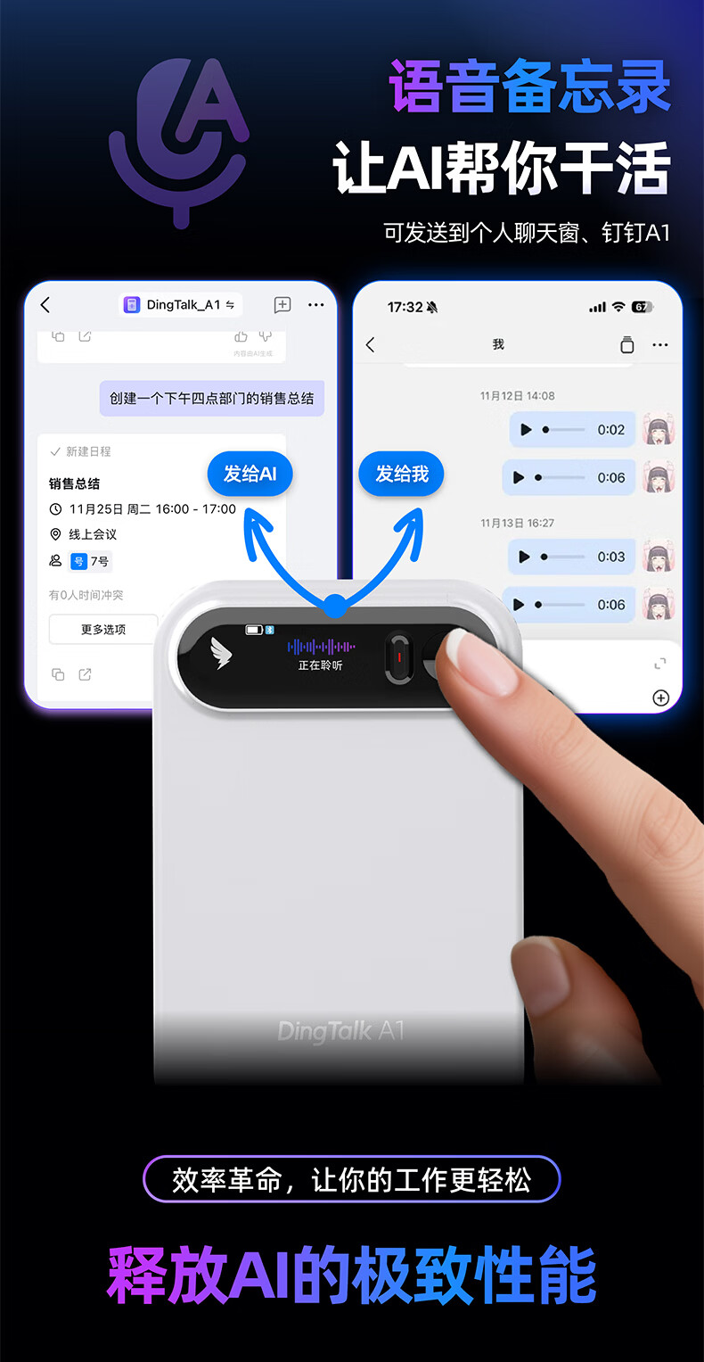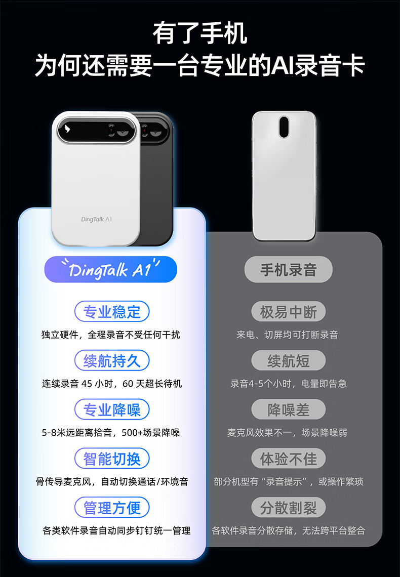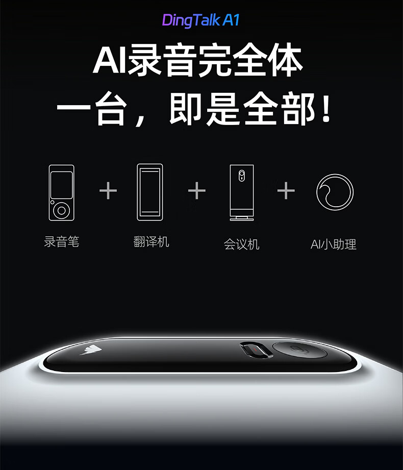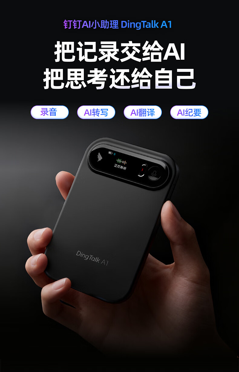 DingTalk Jingcang Sufa DingTalk a1 recorder smart A1 meeting minutes recording card AI analysis summary translation portable large-capacity recorder flagship personal version (Muyehei) includes 1300 minutes of voice rights per month