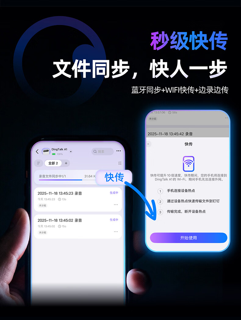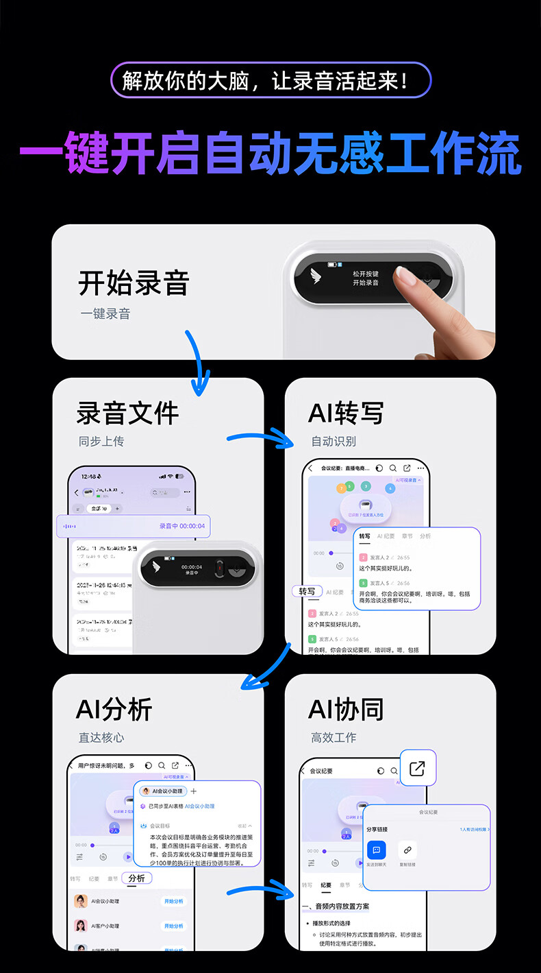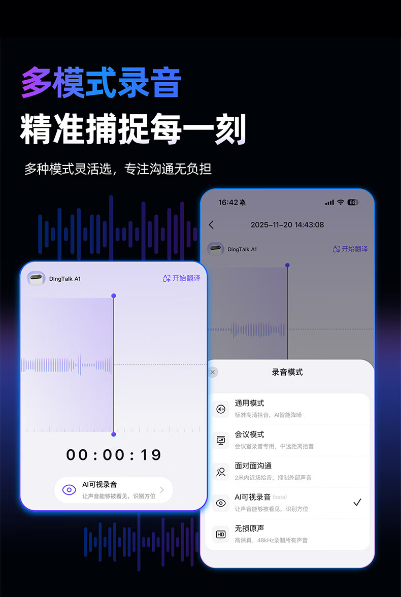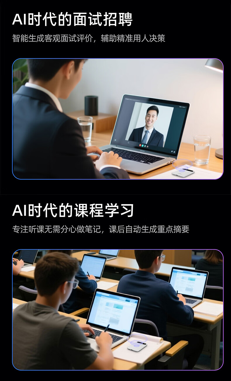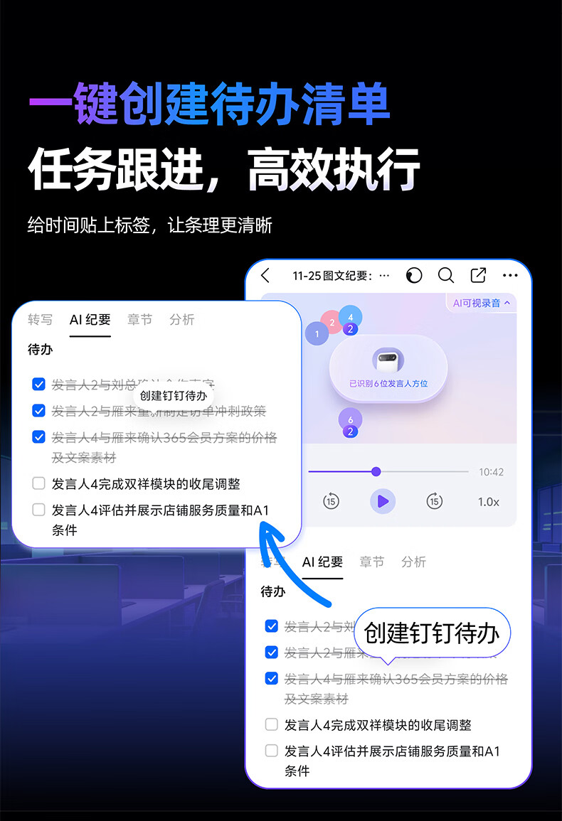 DingTalk Jingcang Sufa DingTalk a1 recorder smart A1 meeting minutes recording card AI analysis summary translation portable large-capacity recorder flagship personal version (Muyehei) includes 1300 minutes of voice rights per month