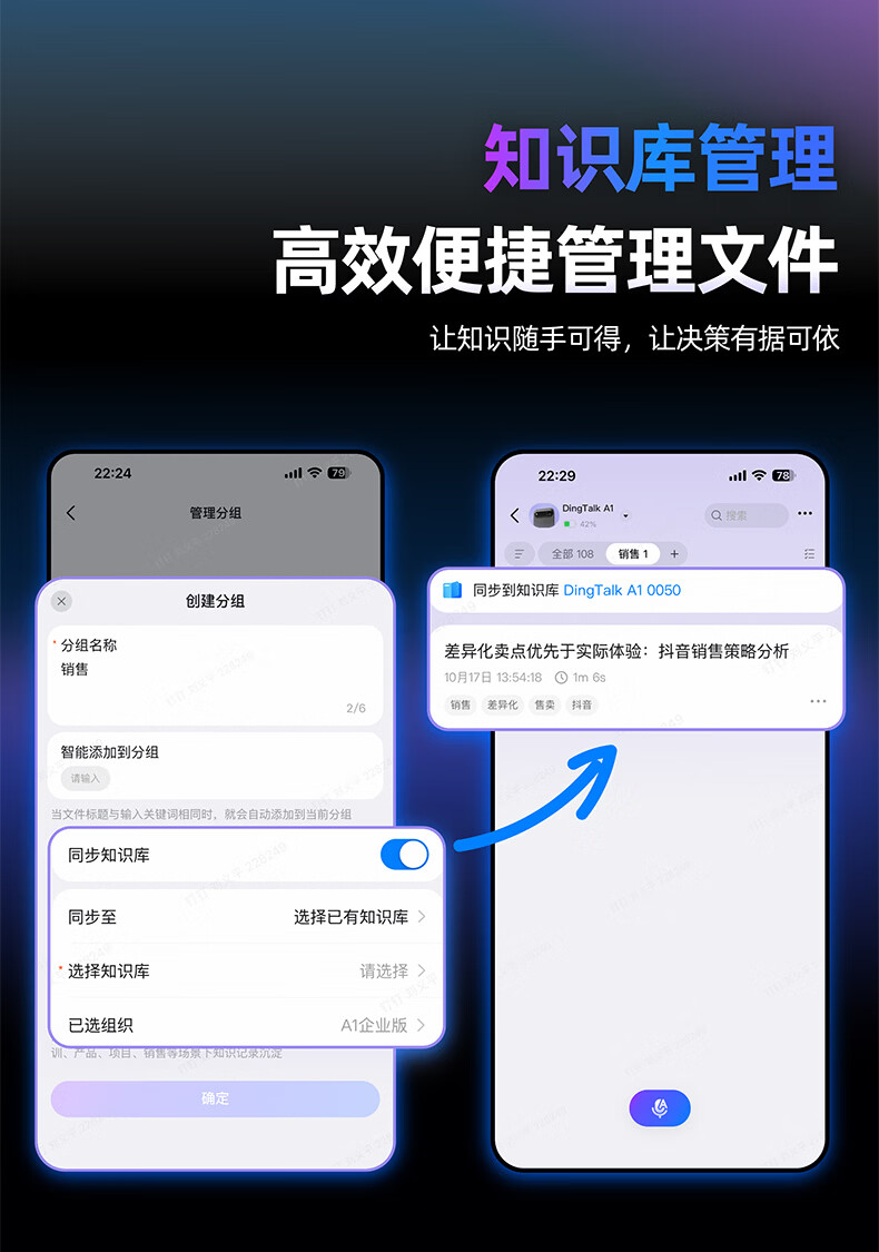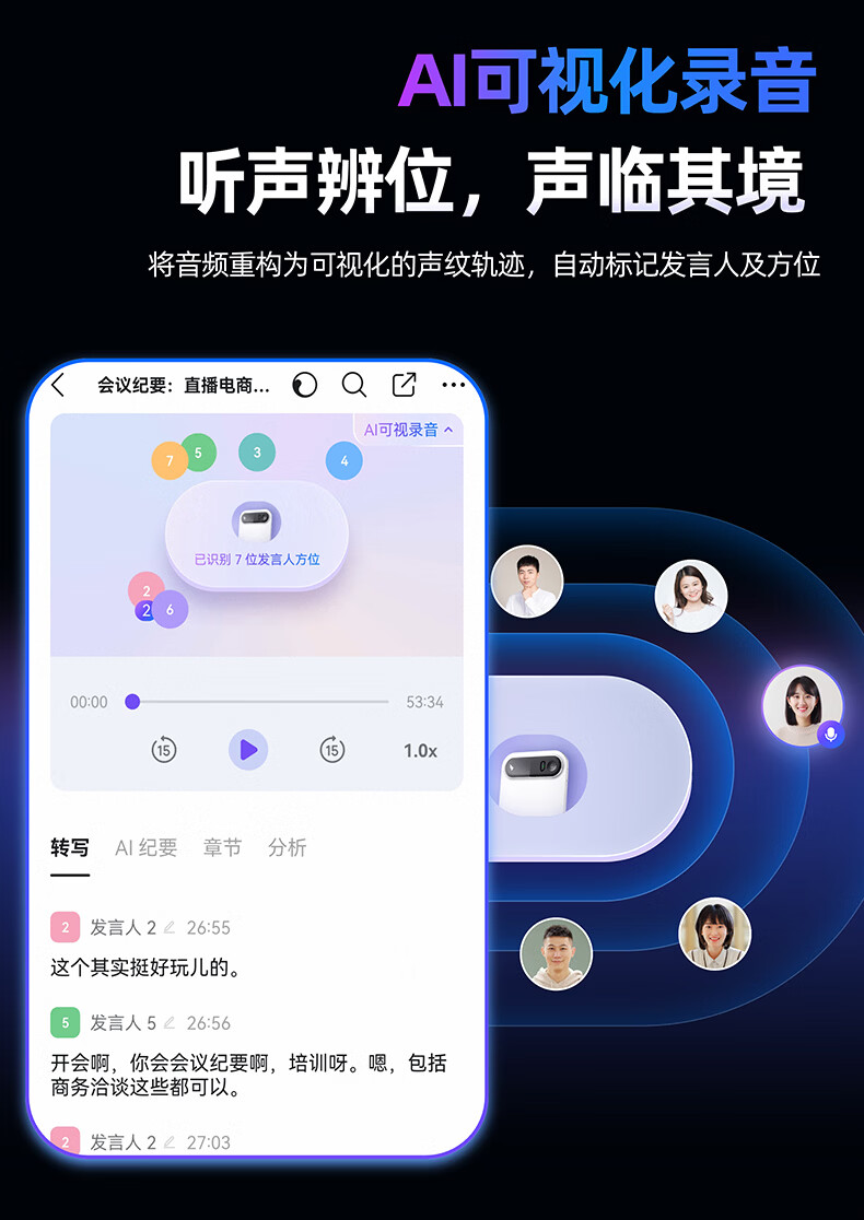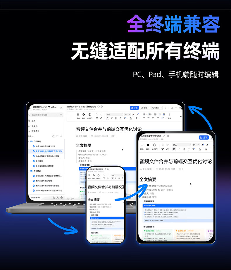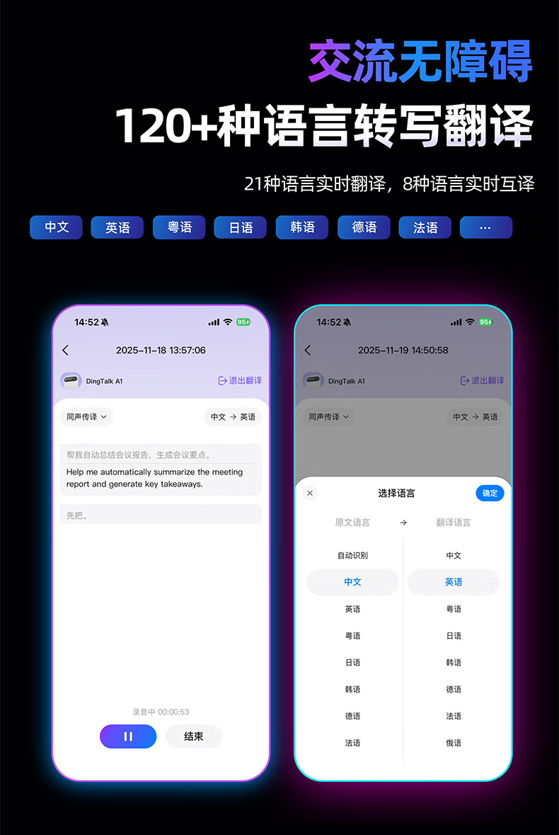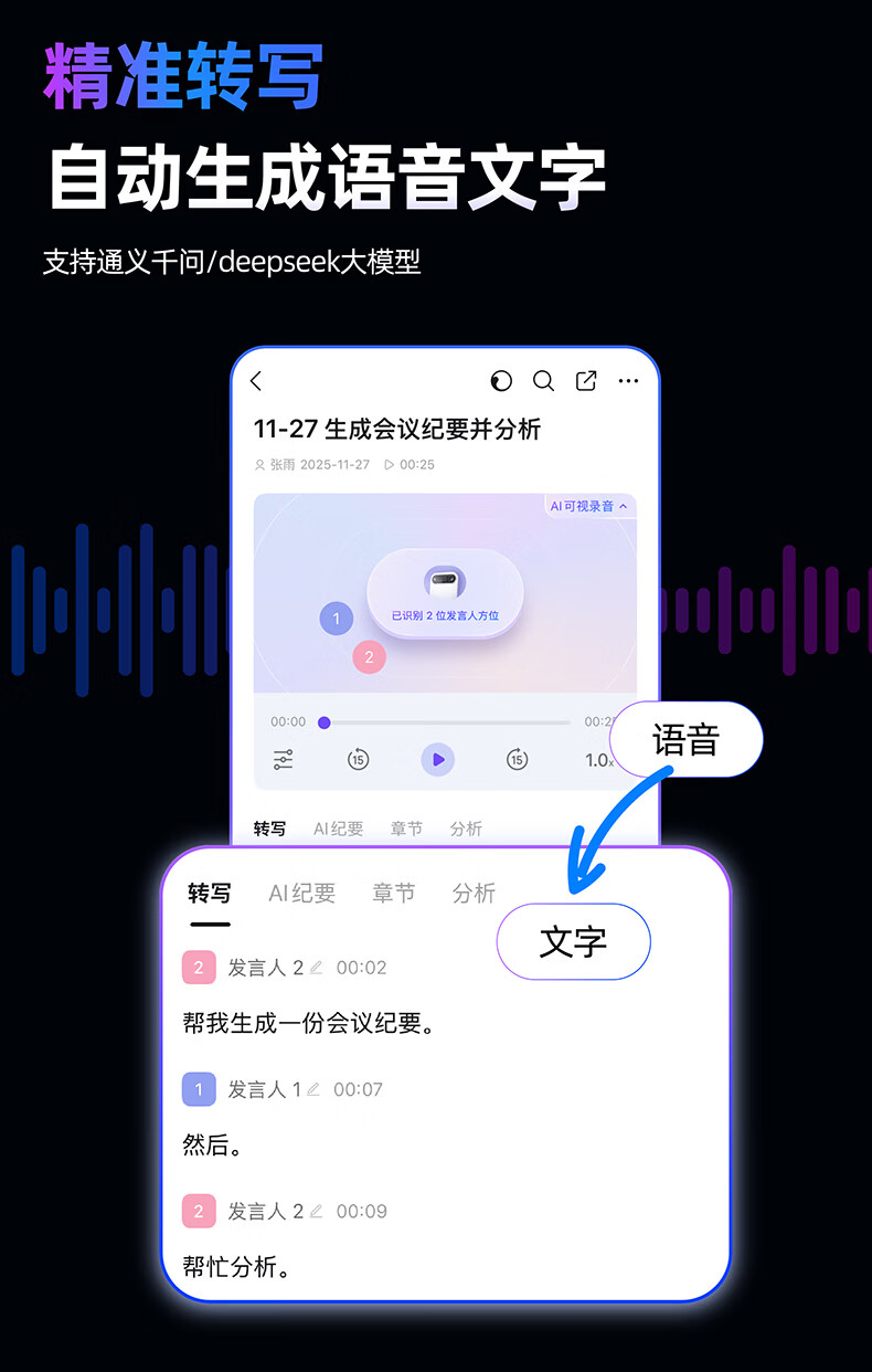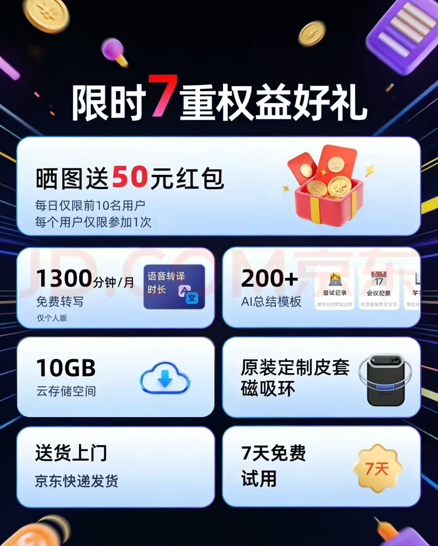 DingTalk Jingcang Sufa DingTalk a1 recorder smart A1 meeting minutes recording card AI analysis summary translation portable large-capacity recorder flagship personal version (Muyehei) includes 1300 minutes of voice rights per month