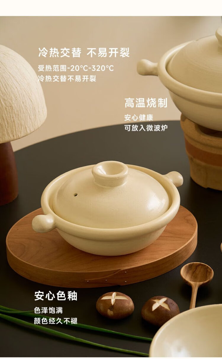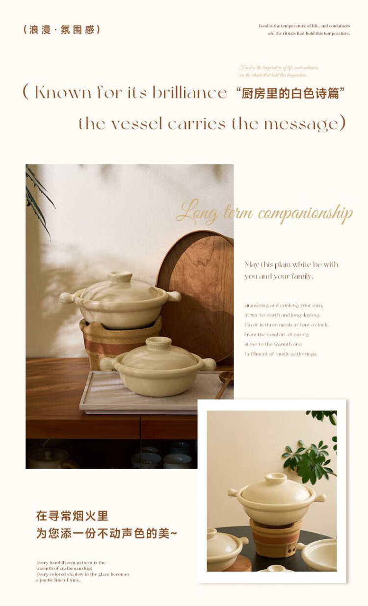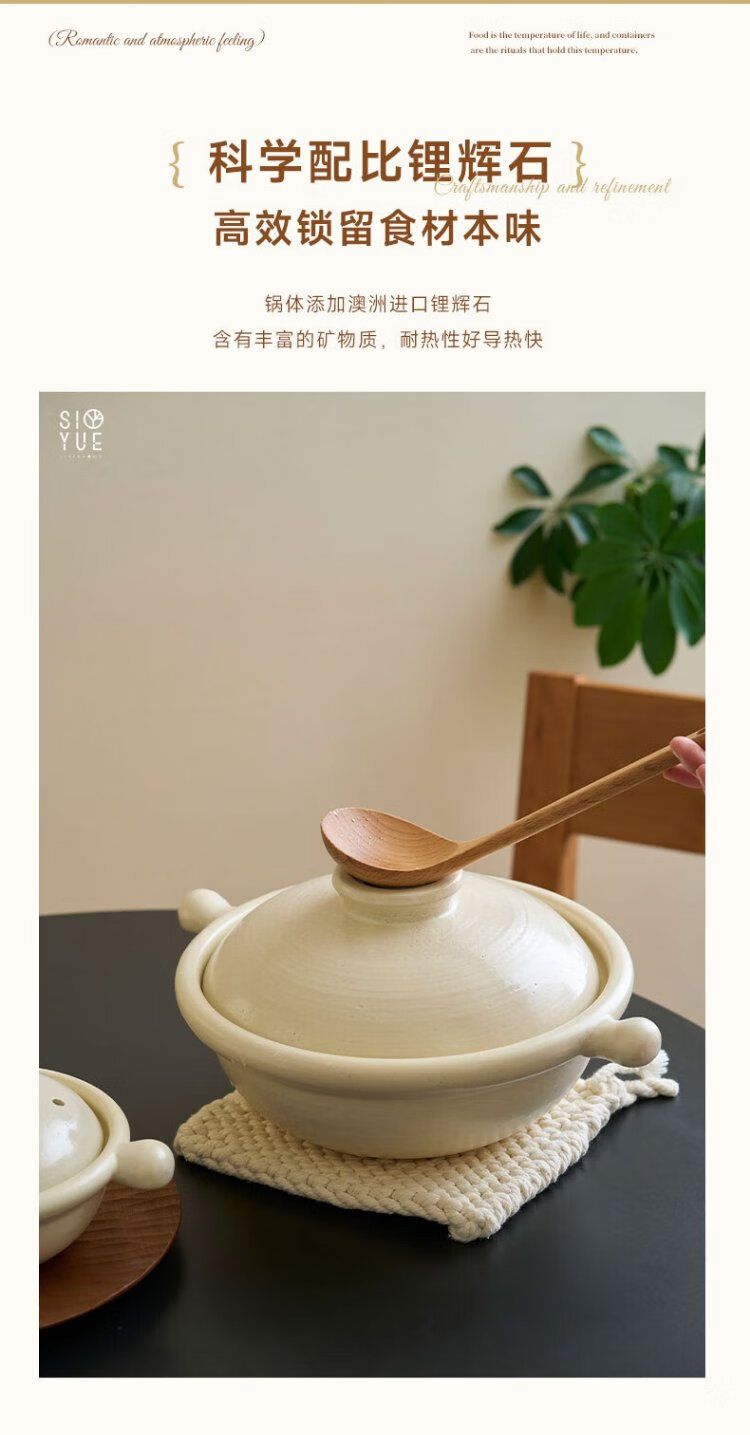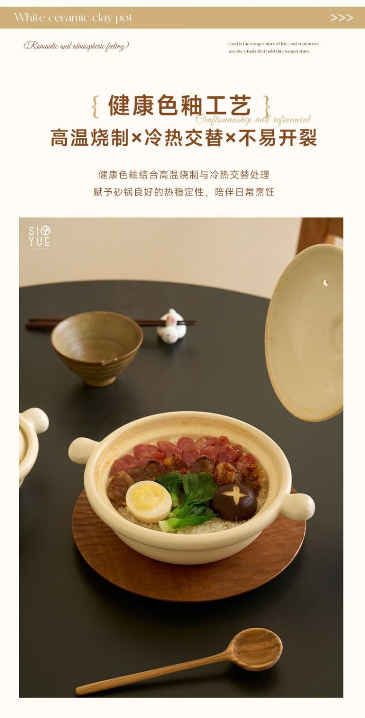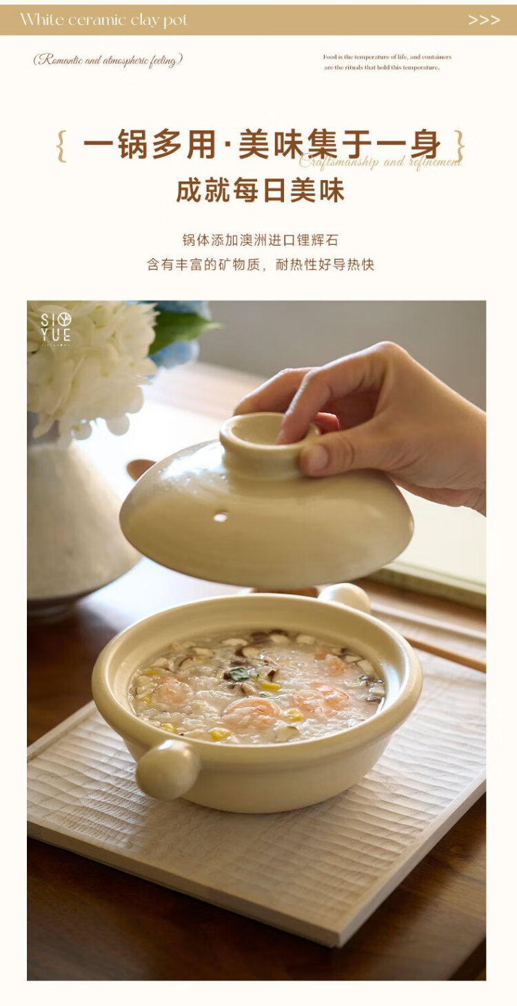 Four Moon Casserole, soup pot, stew pot, ceramic claypot rice casserole, high temperature resistant white gelatin clay pot, suitable for 1-3 people, 1.4L if damaged and replaced after 1 year