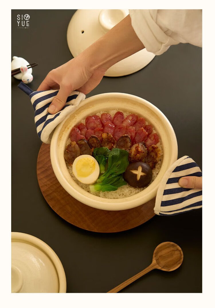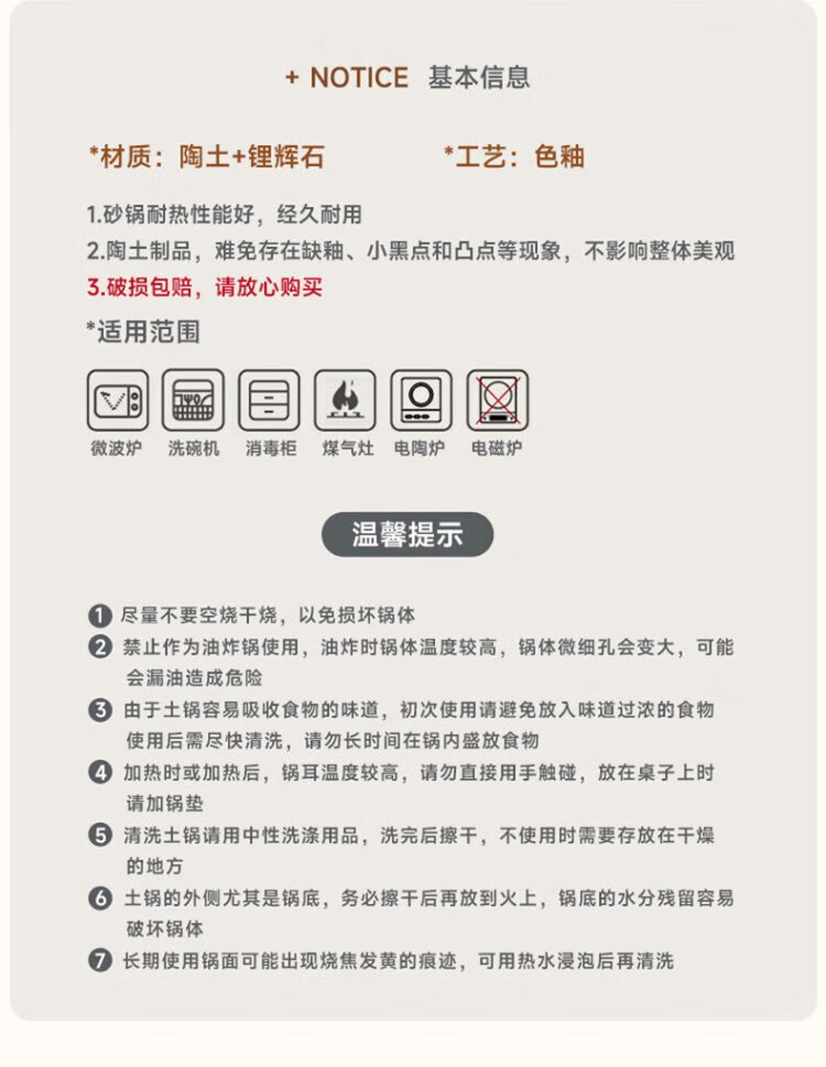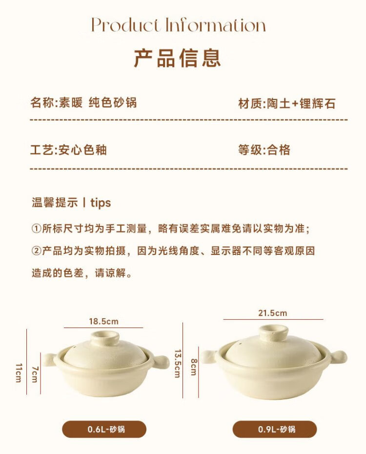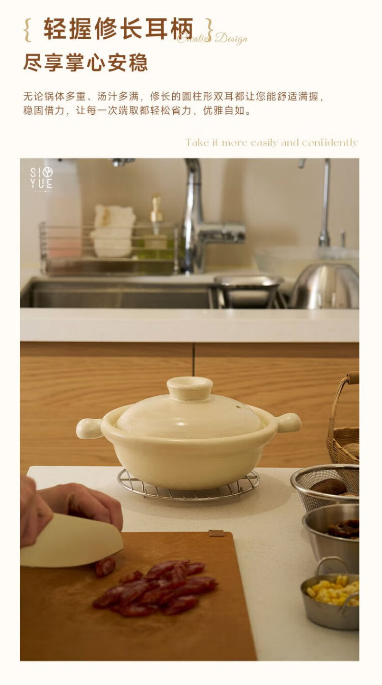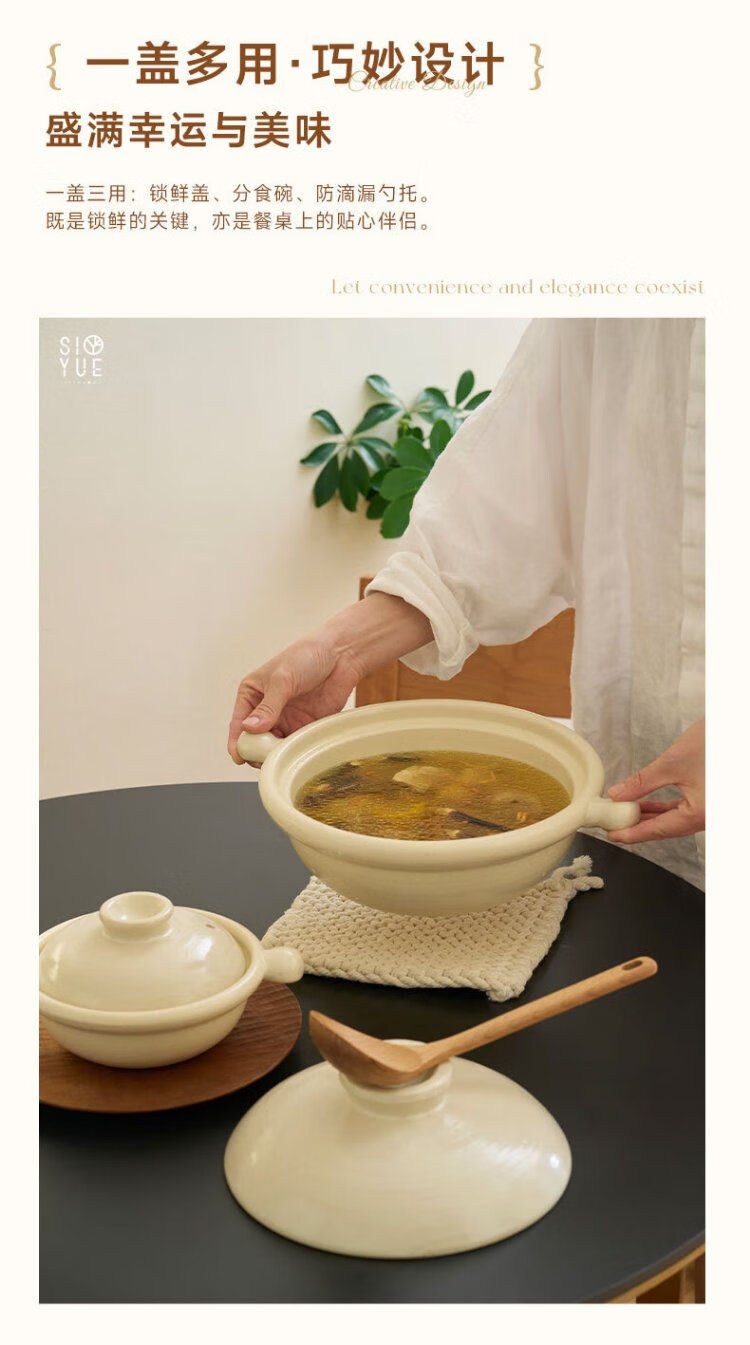 Four Moon Casserole, soup pot, stew pot, ceramic claypot rice casserole, high temperature resistant white gelatin clay pot, suitable for 1-3 people, 1.4L if damaged and replaced after 1 year