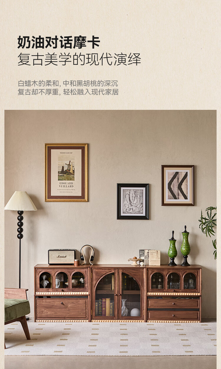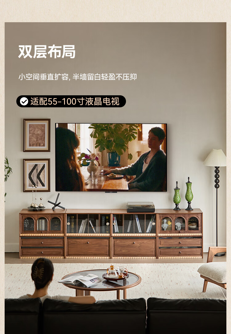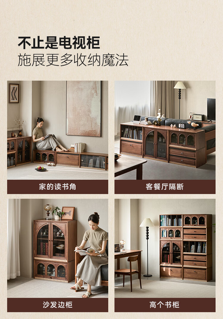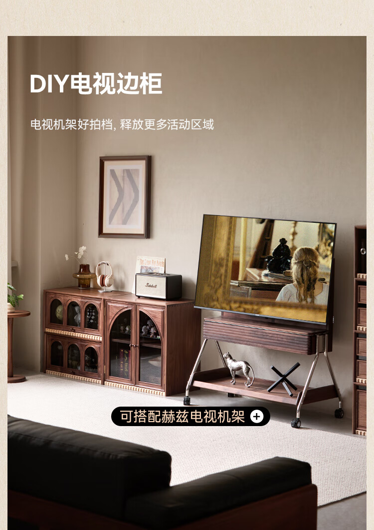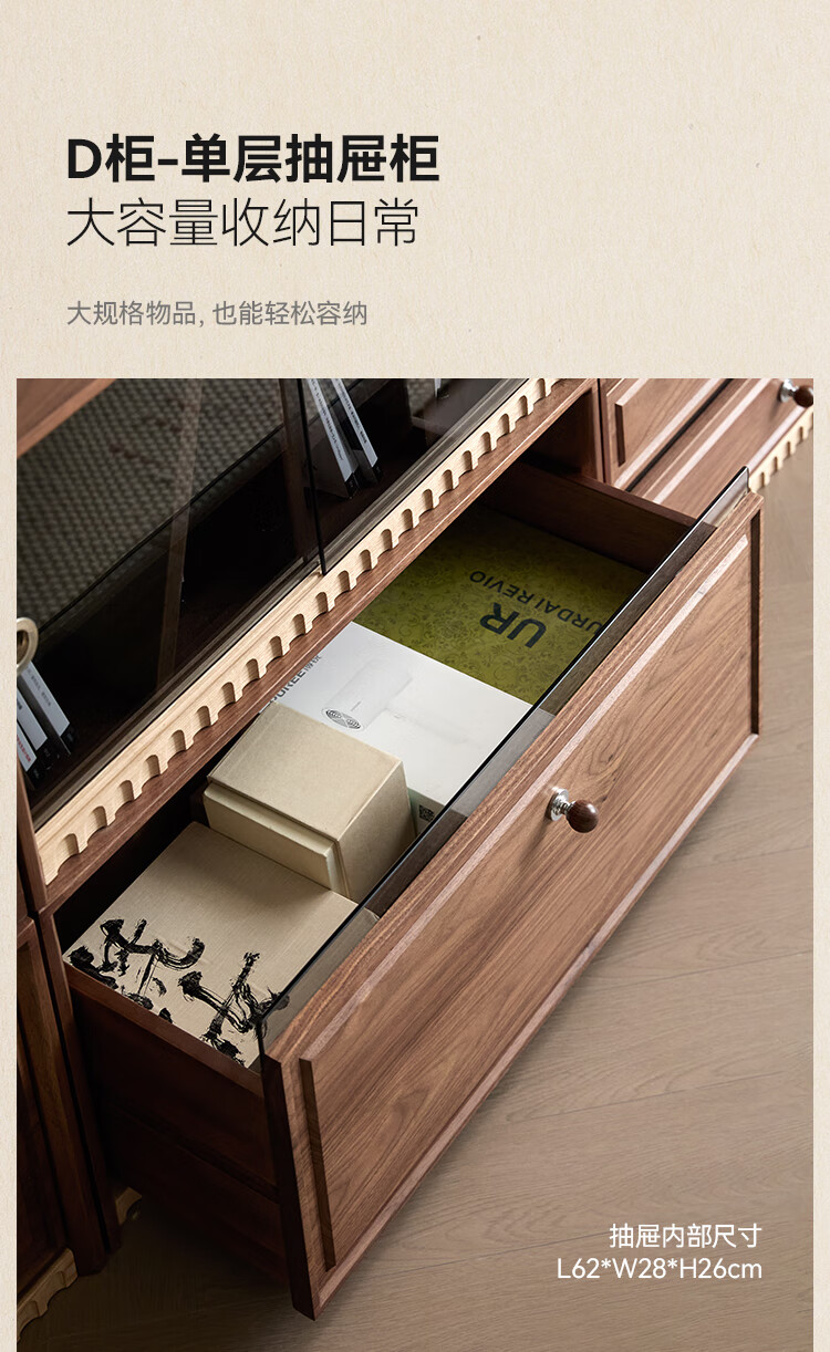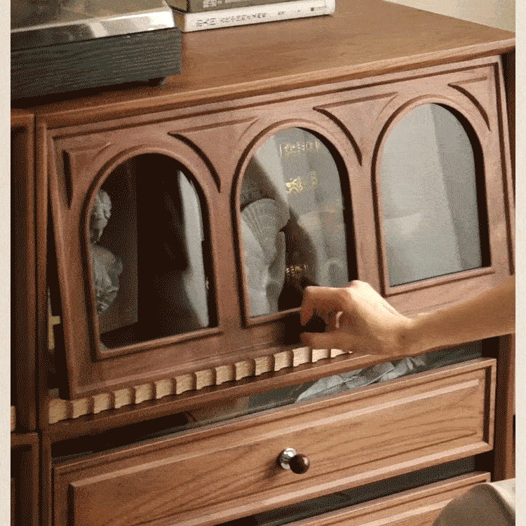 Solid wood TV cabinet made of Pusu wood, floor-standing French retro combination cabinet, antique black walnut wood living room storage integrated E cabinet - closed double drawer cabinet丨Ready stock