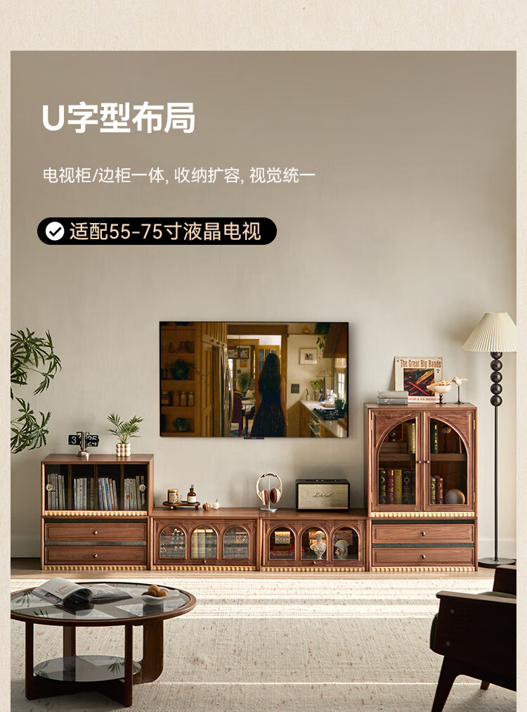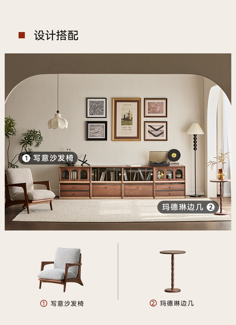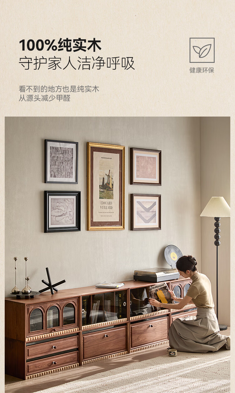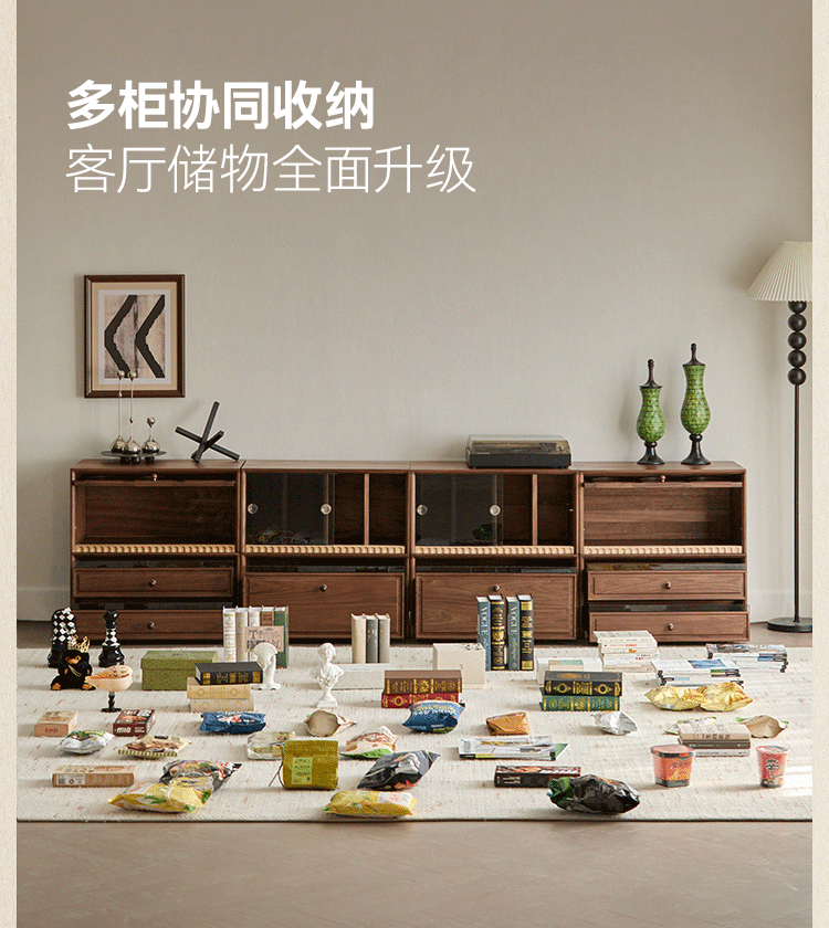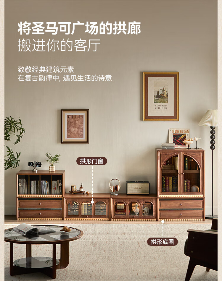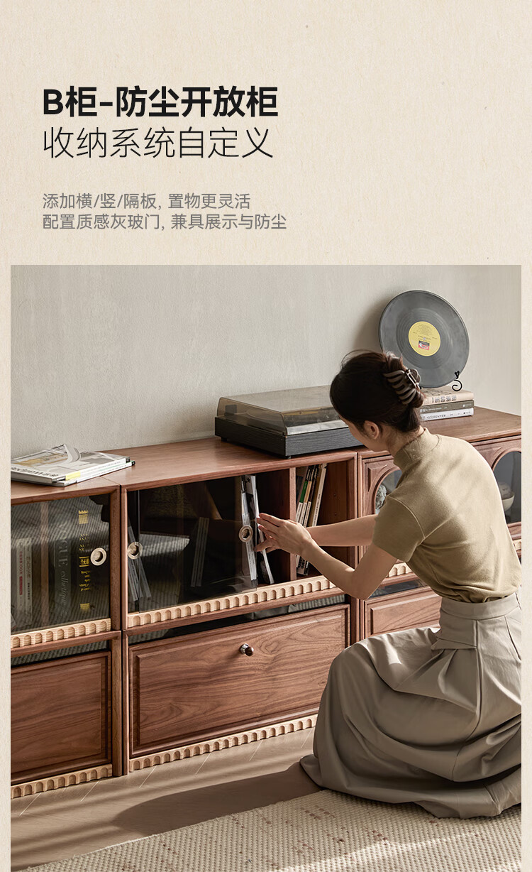 Solid wood TV cabinet made of Pusu wood, floor-standing French retro combination cabinet, antique black walnut wood living room storage integrated E cabinet - closed double drawer cabinet丨Ready stock
