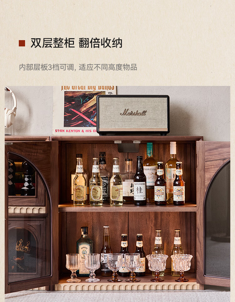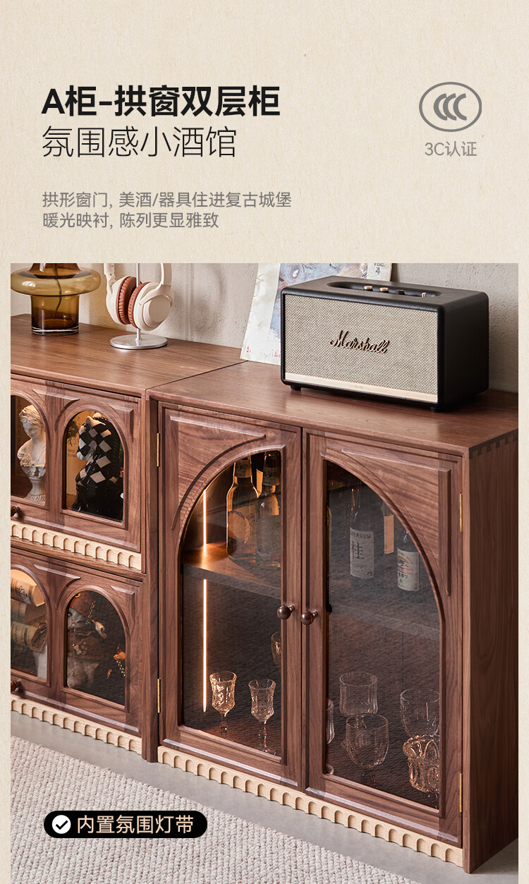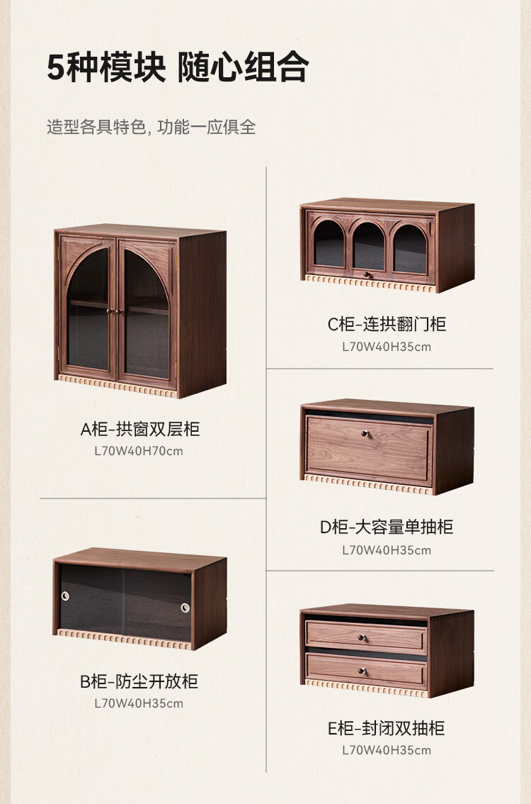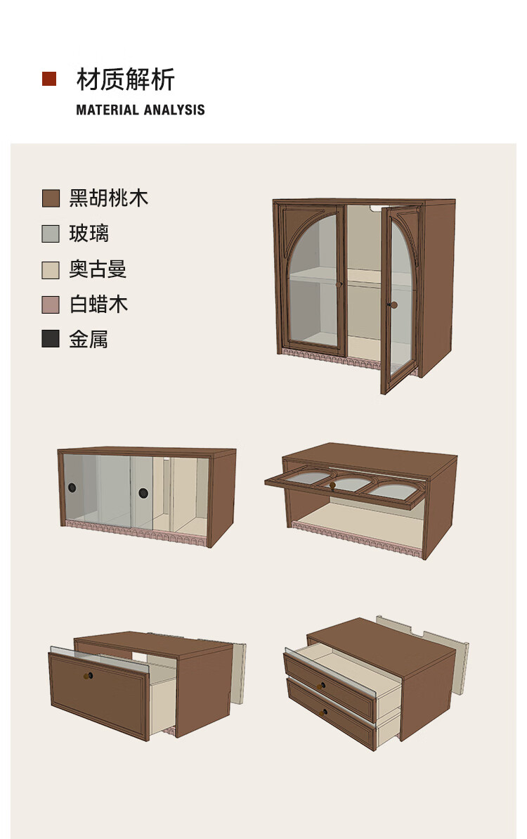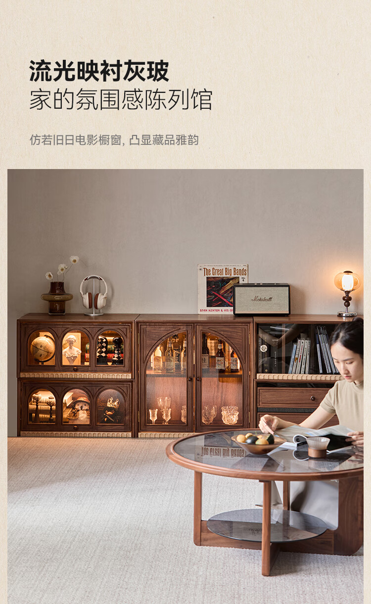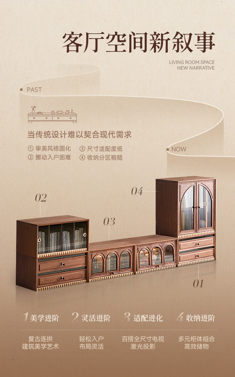 Solid wood TV cabinet made of Pusu wood, floor-standing French retro combination cabinet, antique black walnut wood living room storage integrated E cabinet - closed double drawer cabinet丨Ready stock