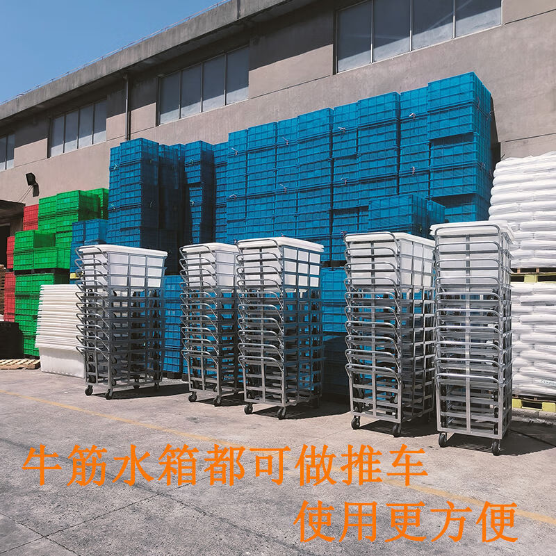 Thickened wheeled beef tendon water tank cart turnover cart cloth drop cart dyeing factory push cart linen cart water cart bucket 90 liter square box (67*46*36) + cart